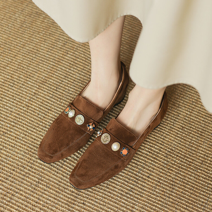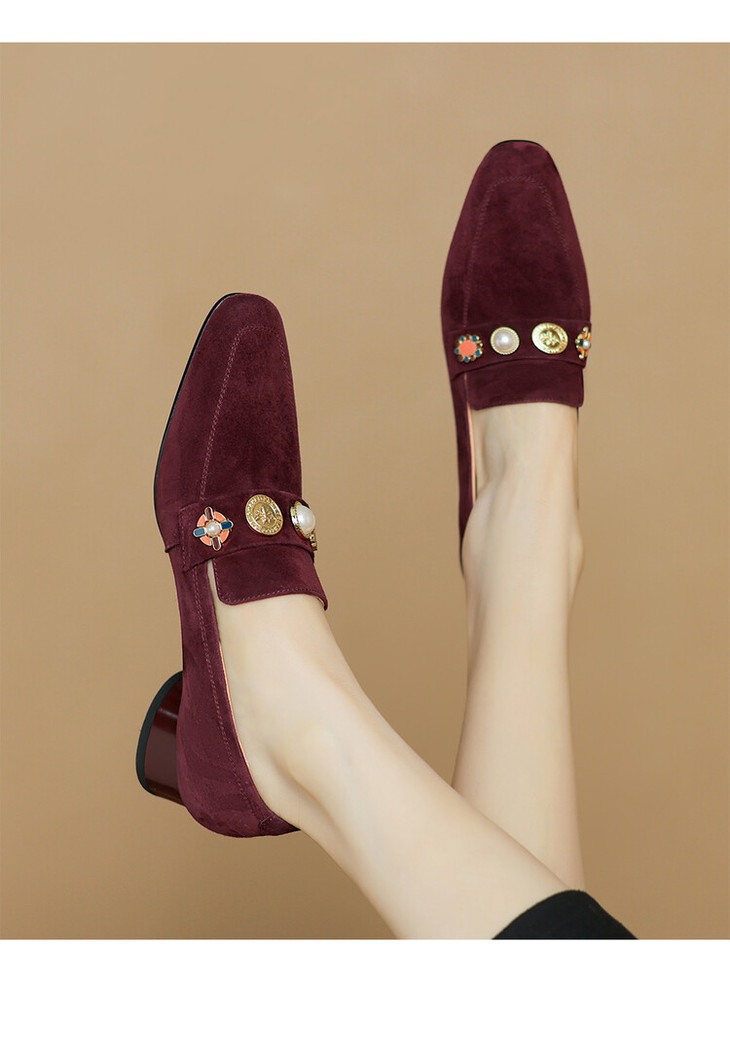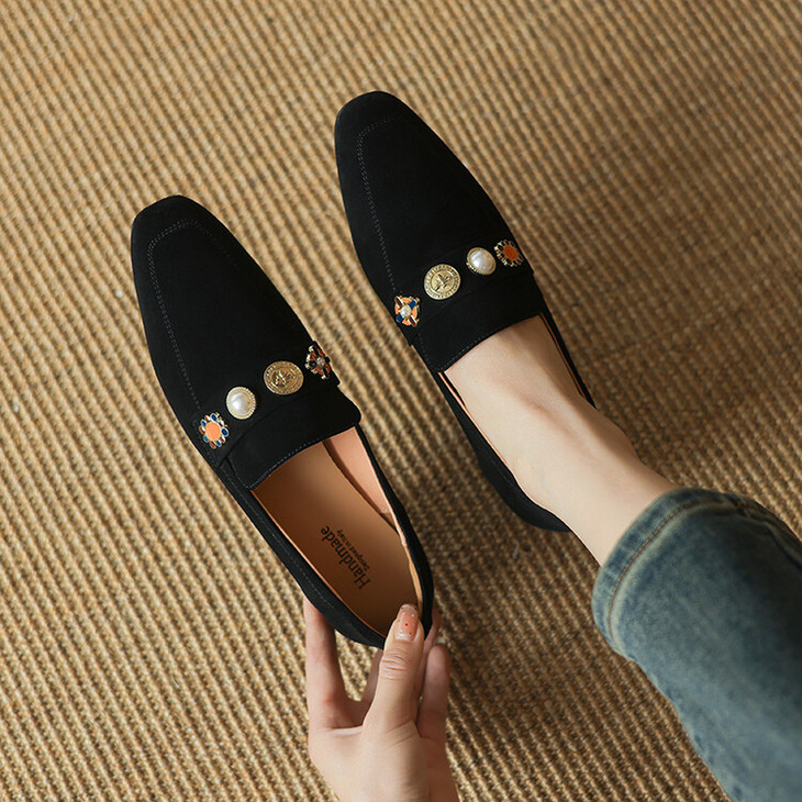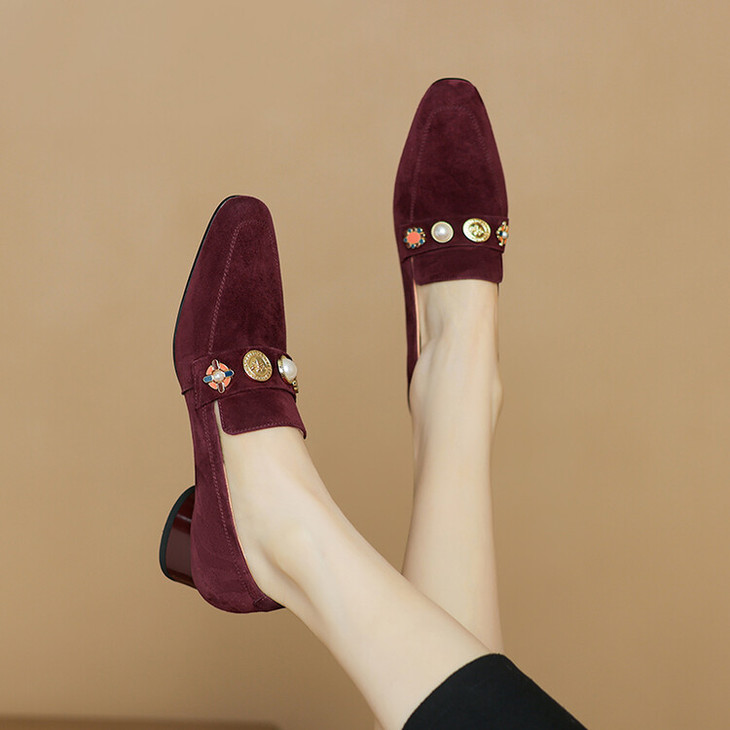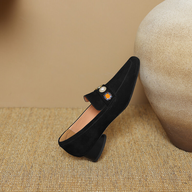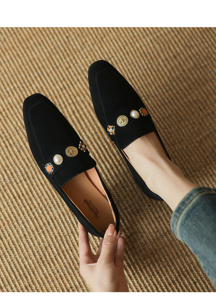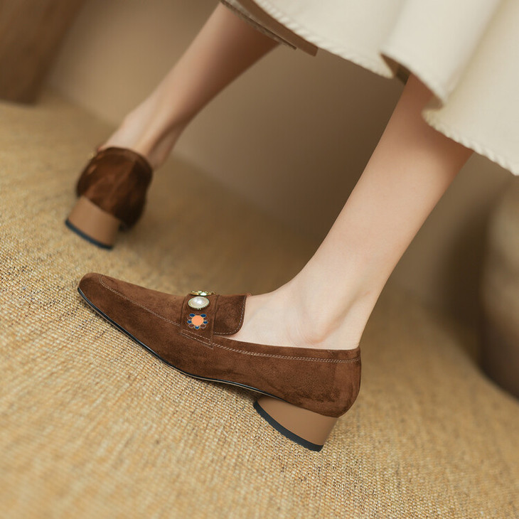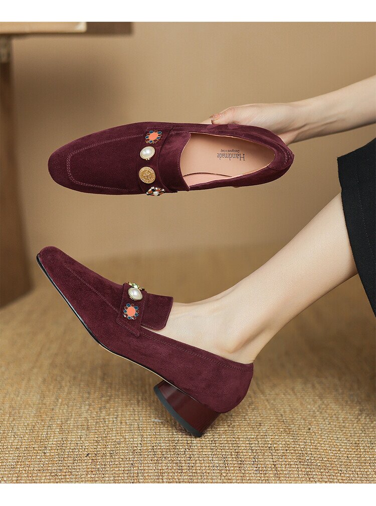 【预售5天】复古乐福鞋秋季新款女鞋粗跟低跟方头低帮深口单鞋LD&6956