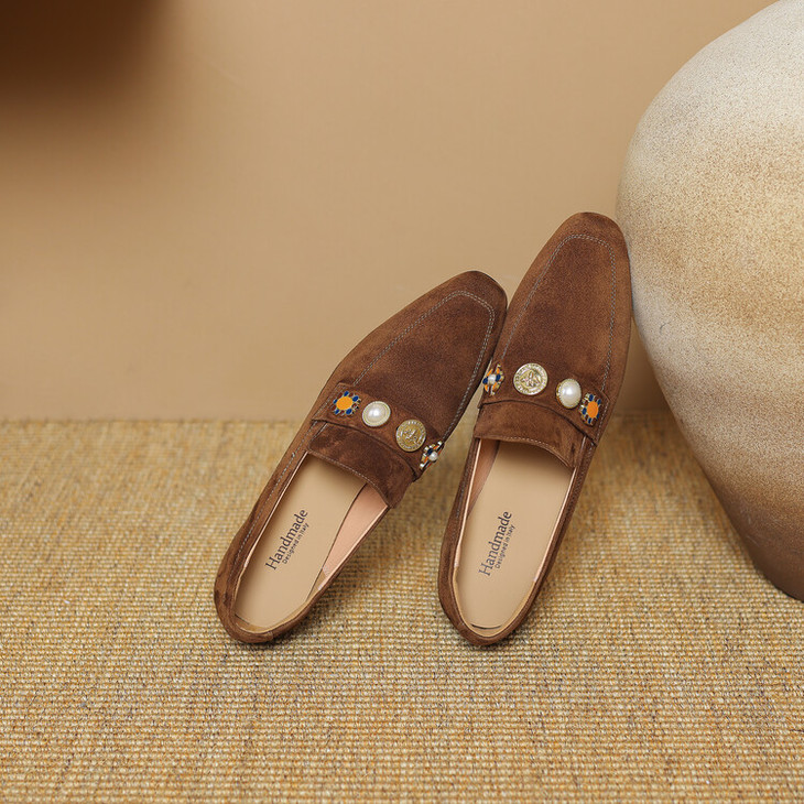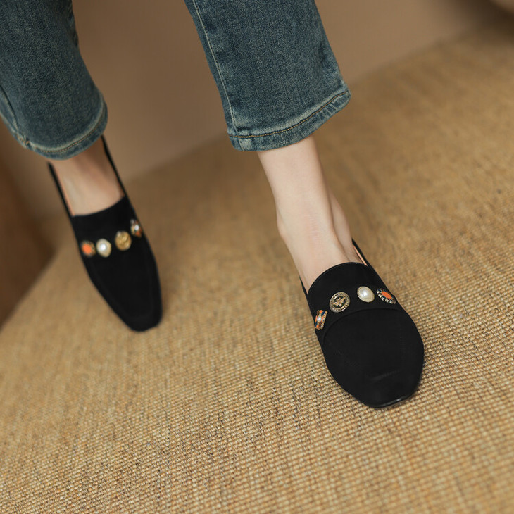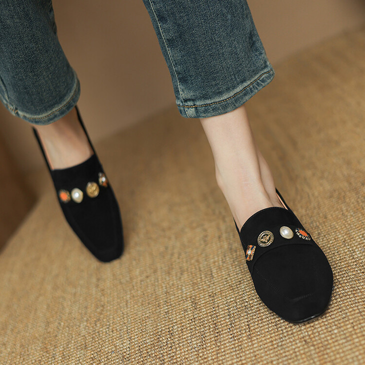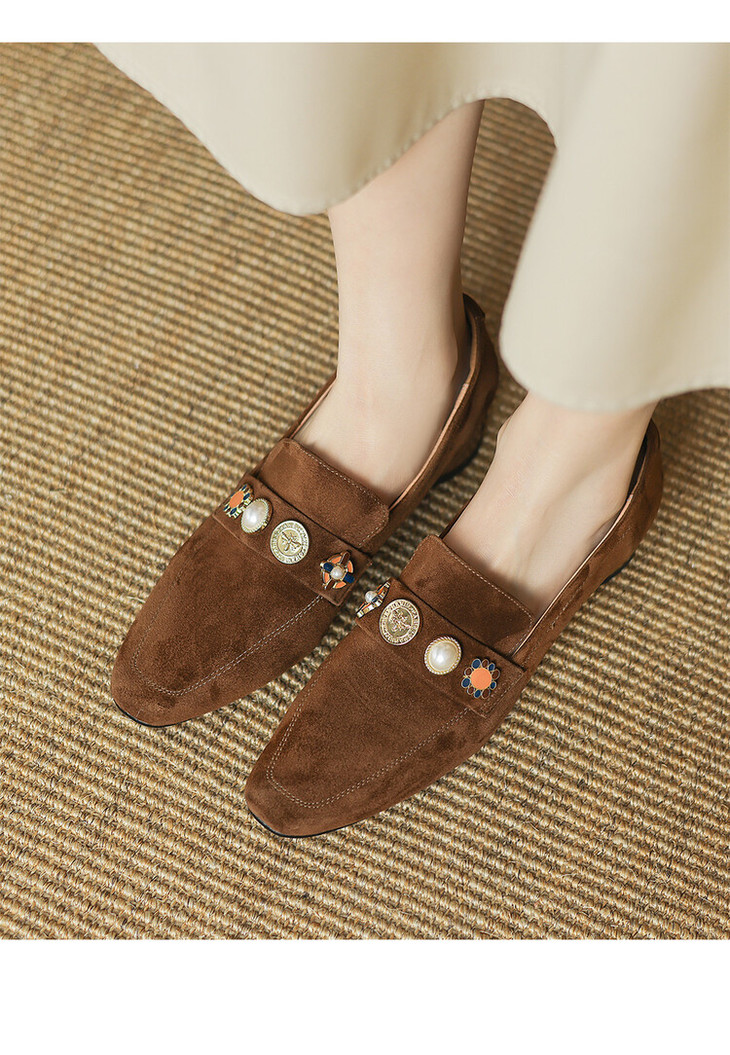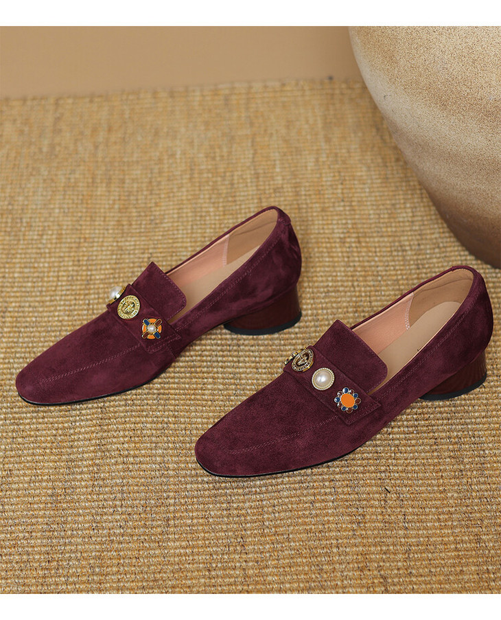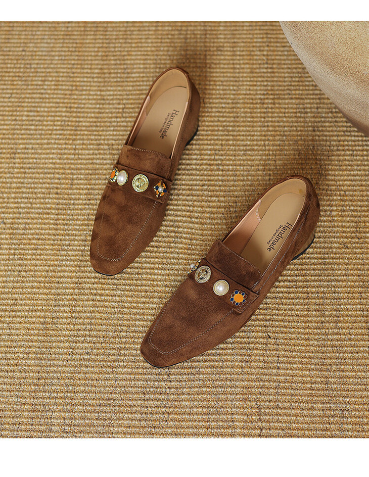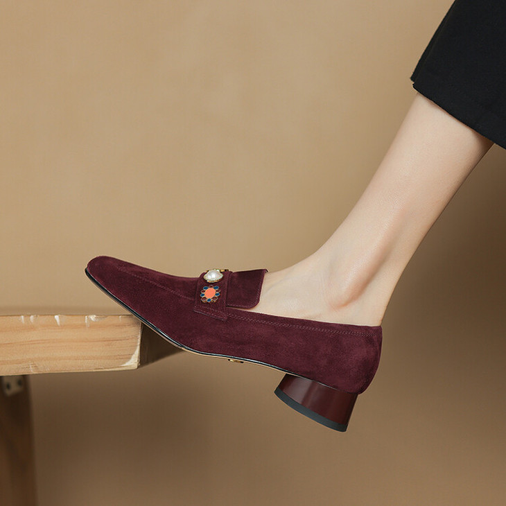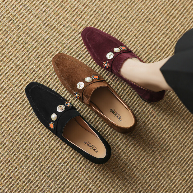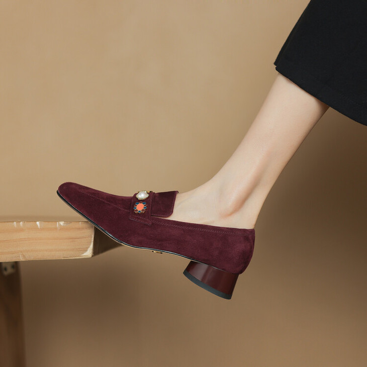 【预售5天】复古乐福鞋秋季新款女鞋粗跟低跟方头低帮深口单鞋LD&6956