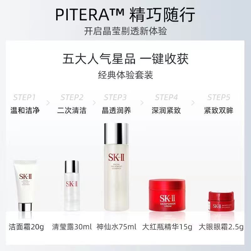 【品牌授权】新版SK-II全明星晶透随行装(五件套)精华露75ml+清莹嫩肤露30ml+洁面20g+焕采精华霜15g+焕采眼霜2.5g