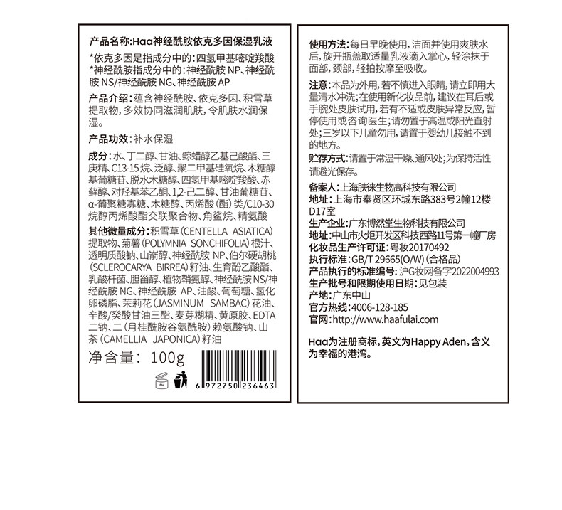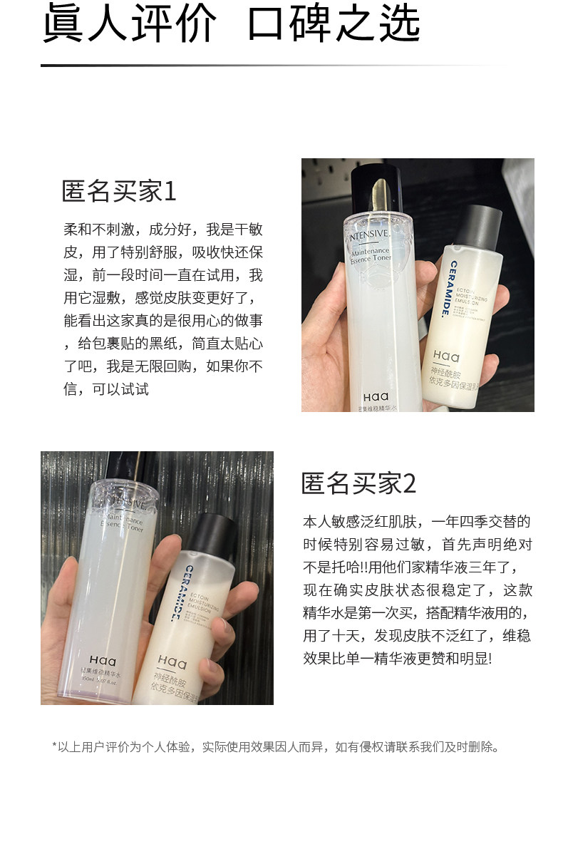 haa神经酰胺水乳 依克多因补水保湿敏感肌维稳精华水乳修红修护150ml/100g
