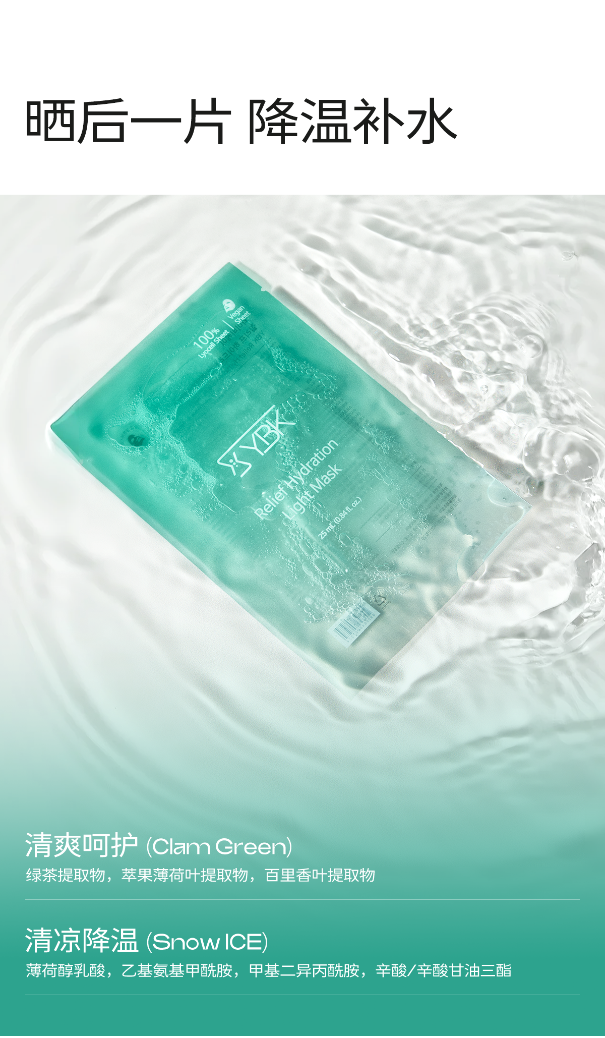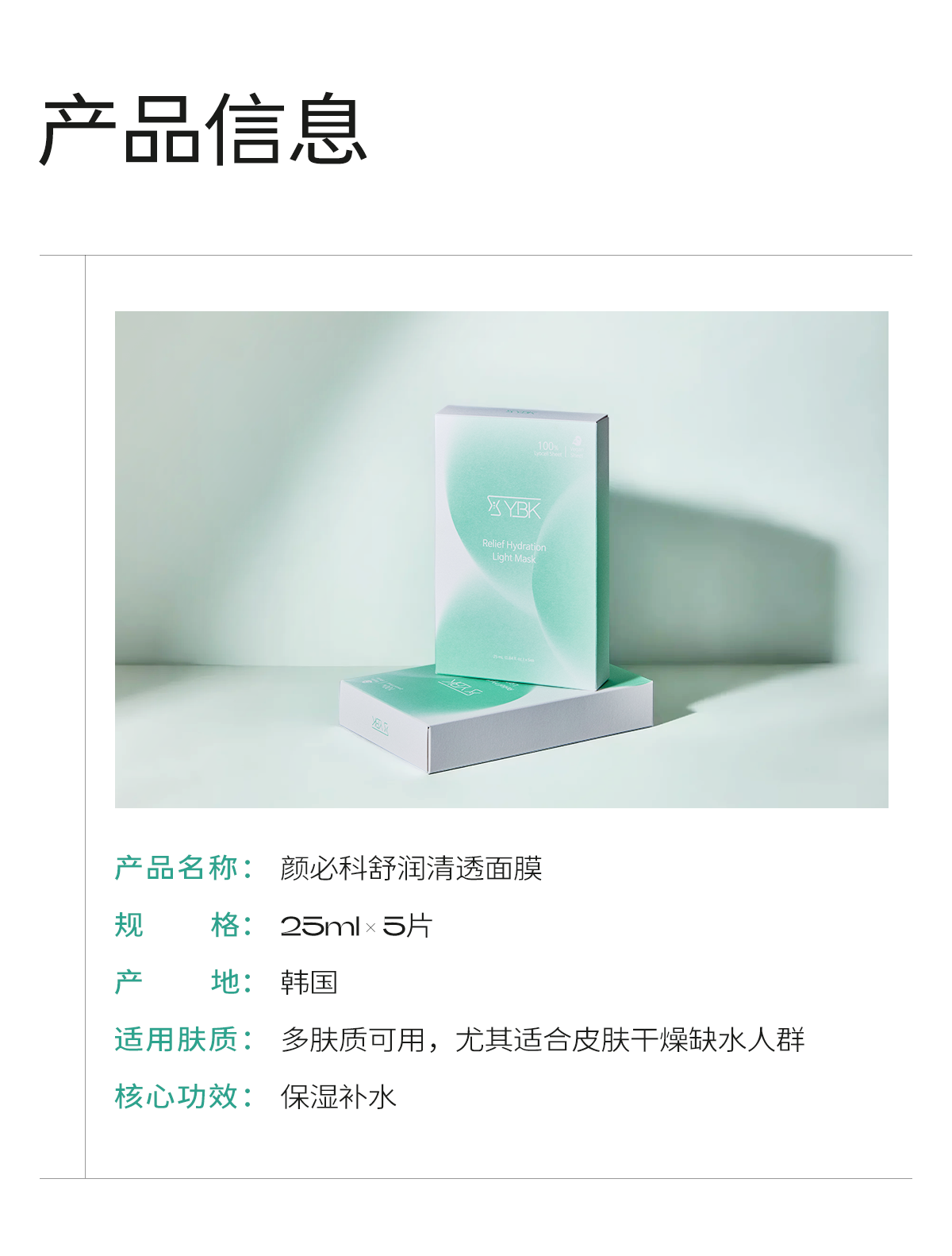 YBK颜必科面膜 保湿补水高榕小糕舒润清透积雪草熬夜脆弱肌面膜
