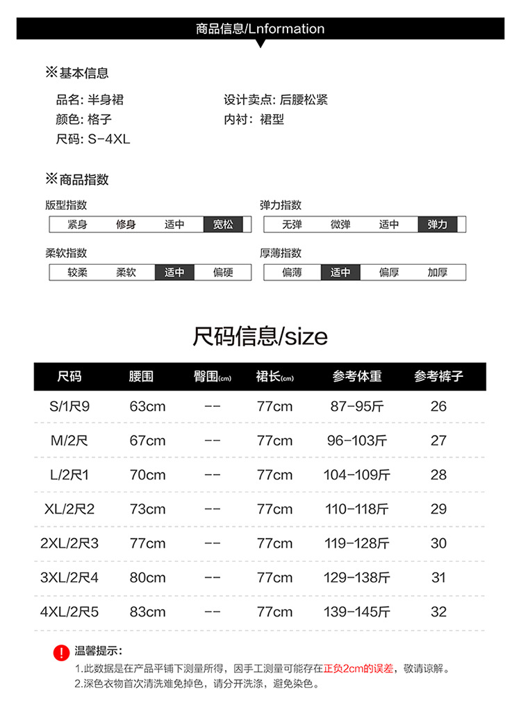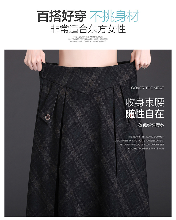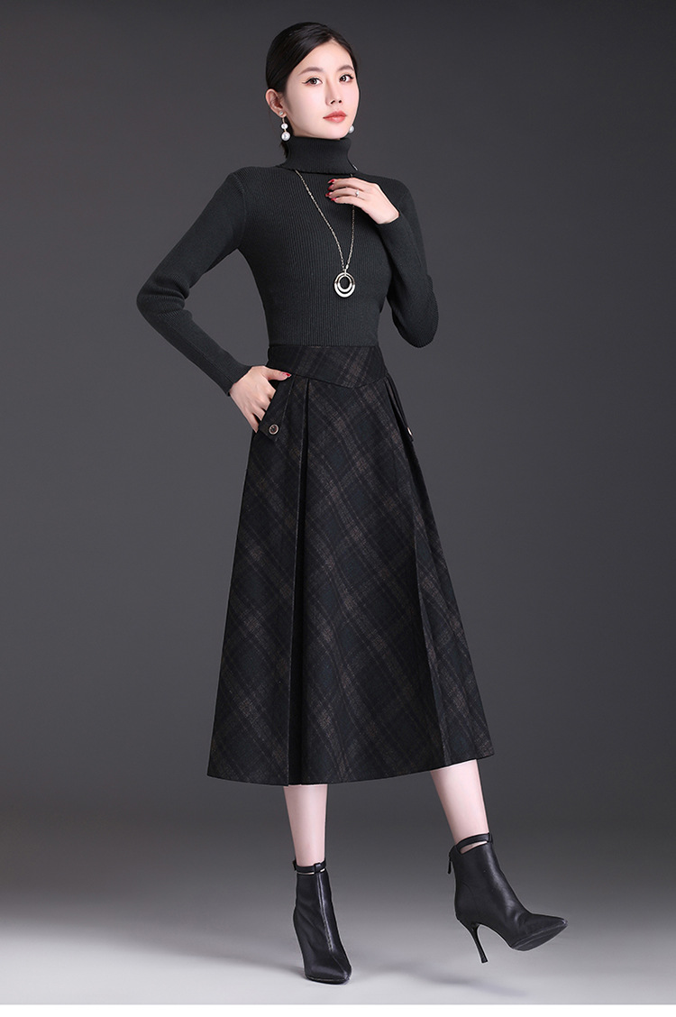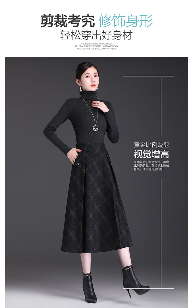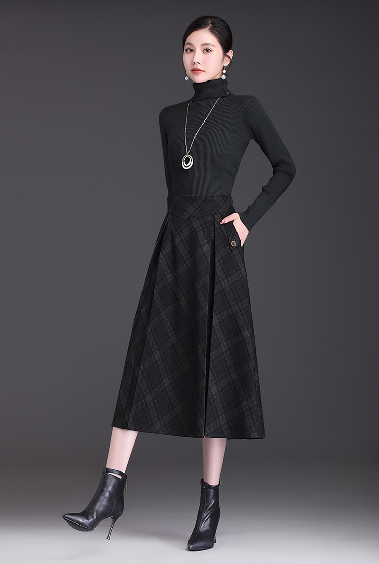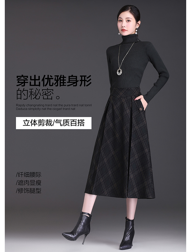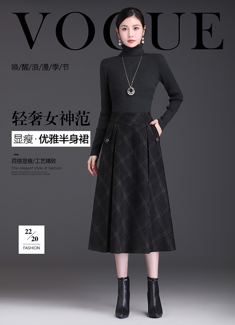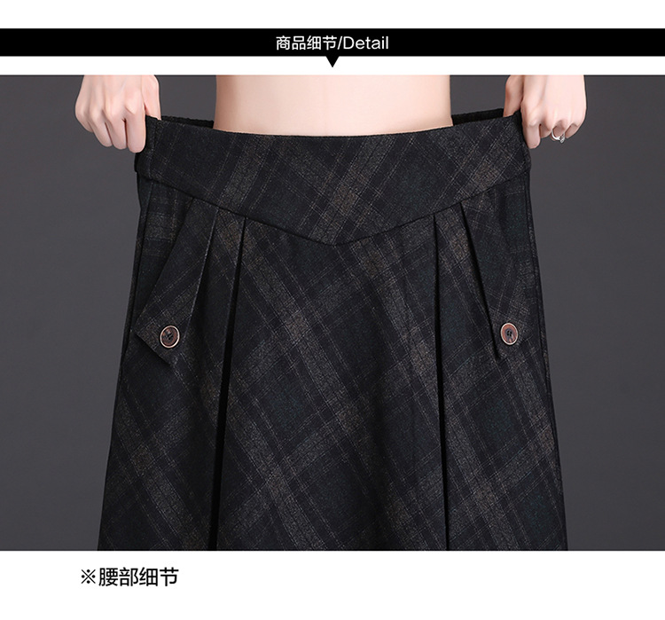 格子简约修身时尚大摆A字裙松紧腰气质毛呢半身裙MYX-JYM-55323-L