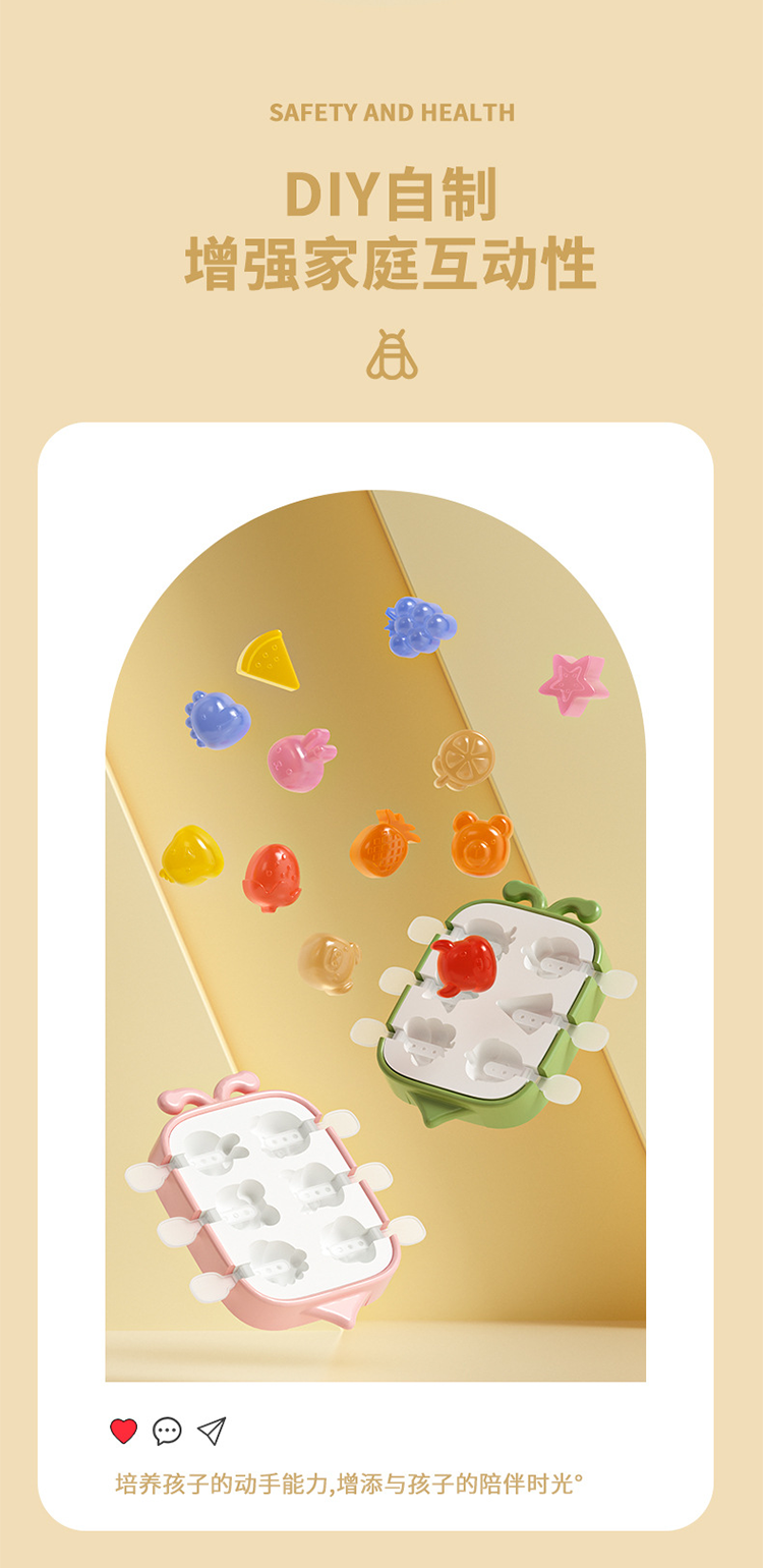 【卡通雪糕6宫格模具】食品级家用冰棍冰淇淋模具 环保硅胶DIY棒盒冰模具 儿童可爱冰激凌 食品级铂金硅胶 雪糕棒反复循环使用