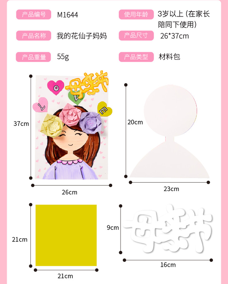美可母亲节礼物手工diy我的花仙子妈妈 幼儿园儿童制作材料包创意