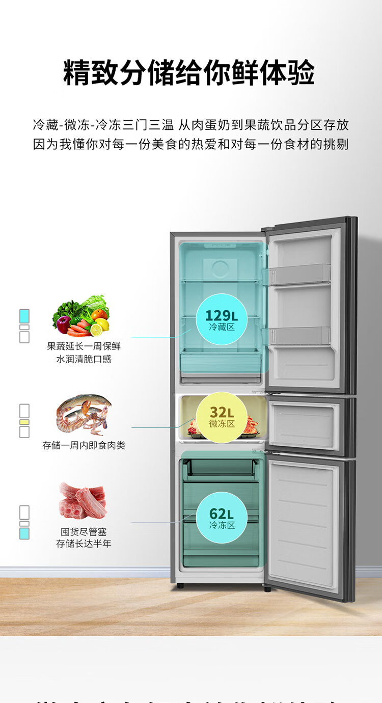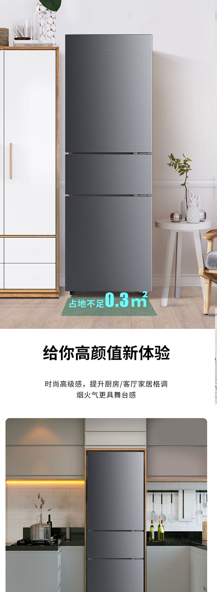 【家电焕新季】创维(Skyworth)223升 三门风冷冰箱 无界玻璃面板 三门三温区 变频风机BCD-223WTGY烟云灰