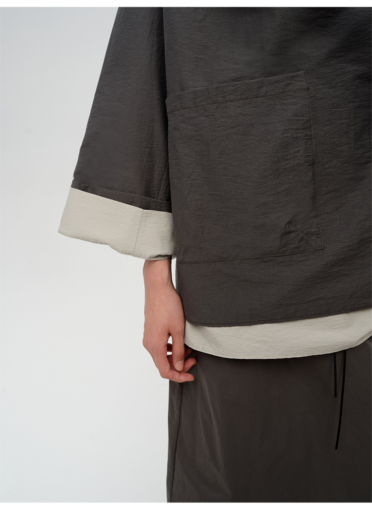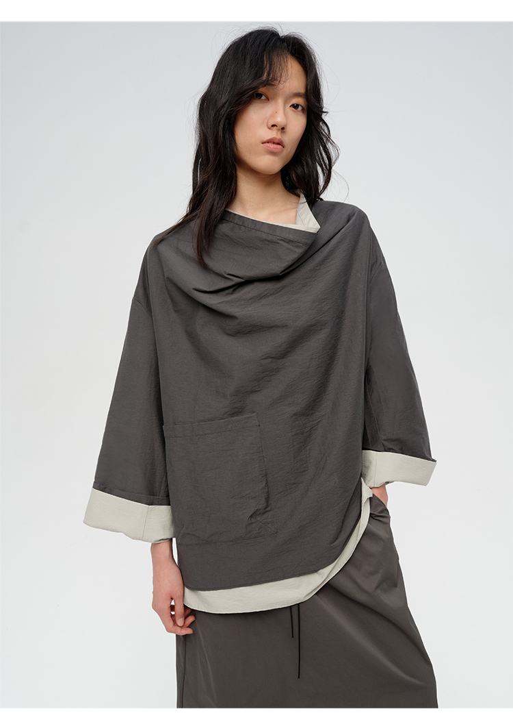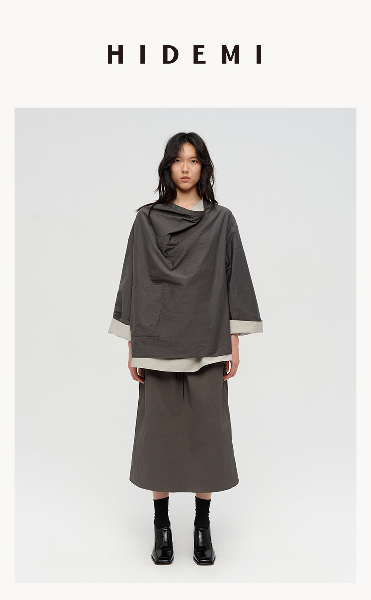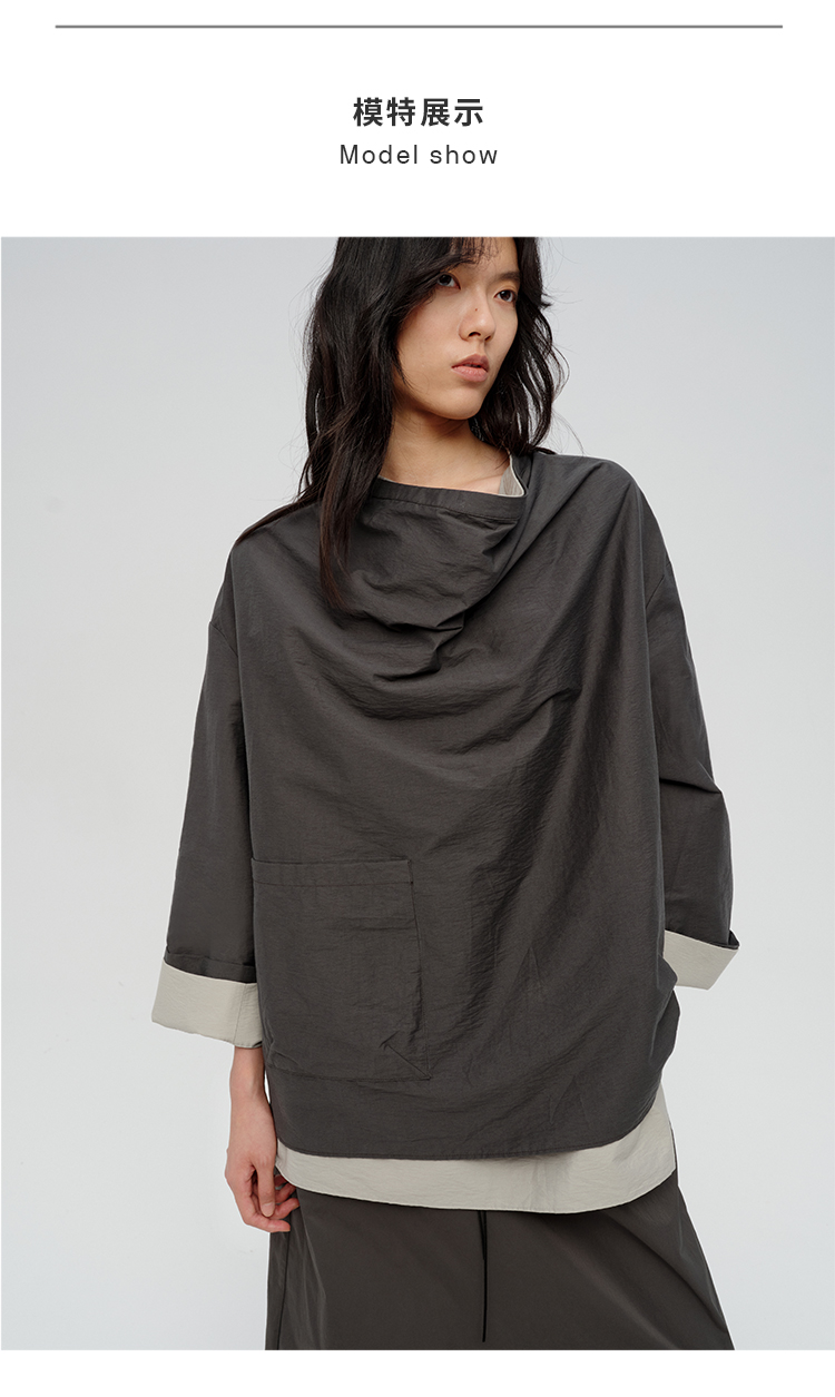 HIDEMI 极简做旧水洗棉堆堆领口袋廓形感衬衫 雾霾灰蓝/炭灰色