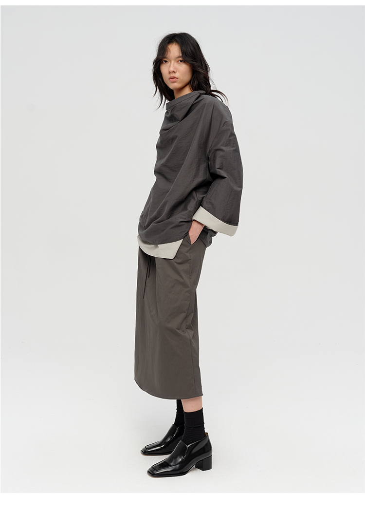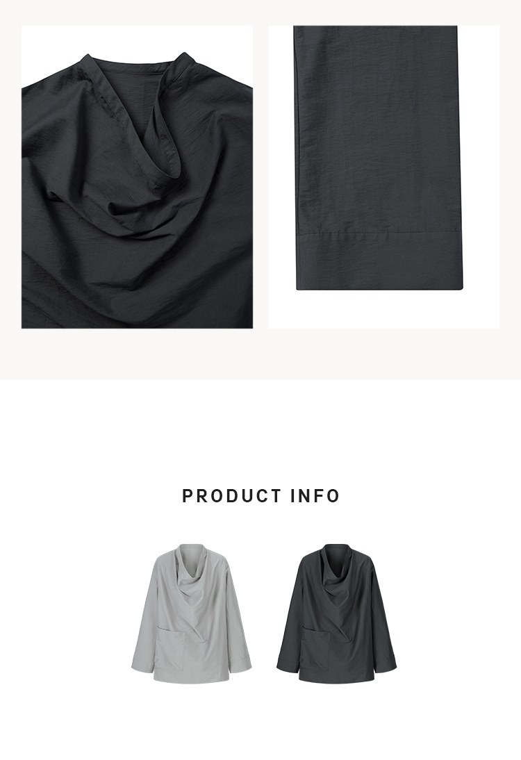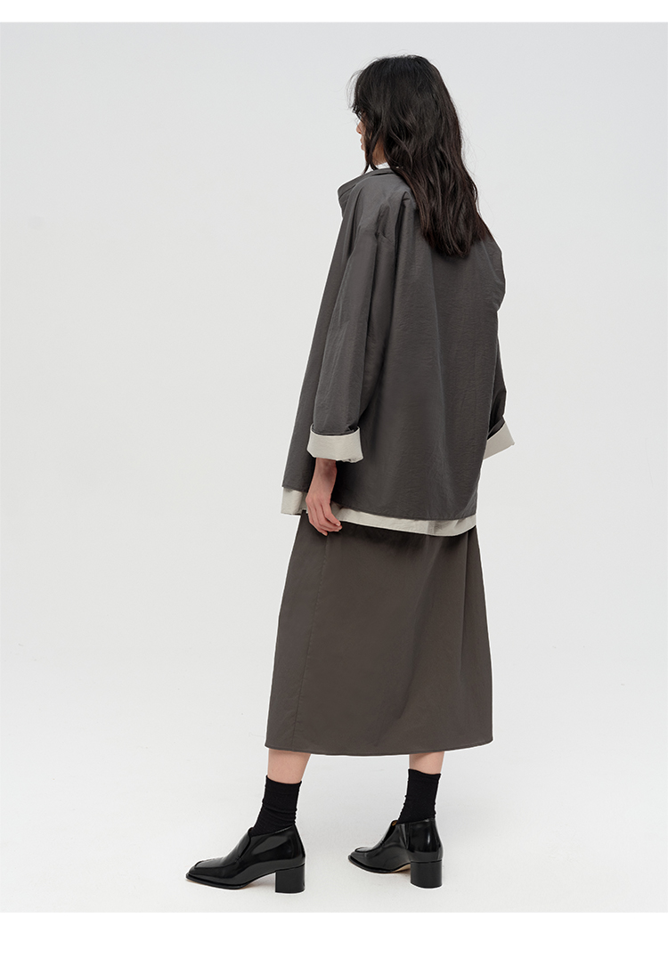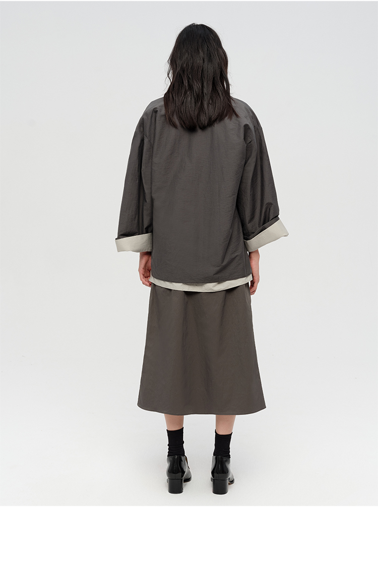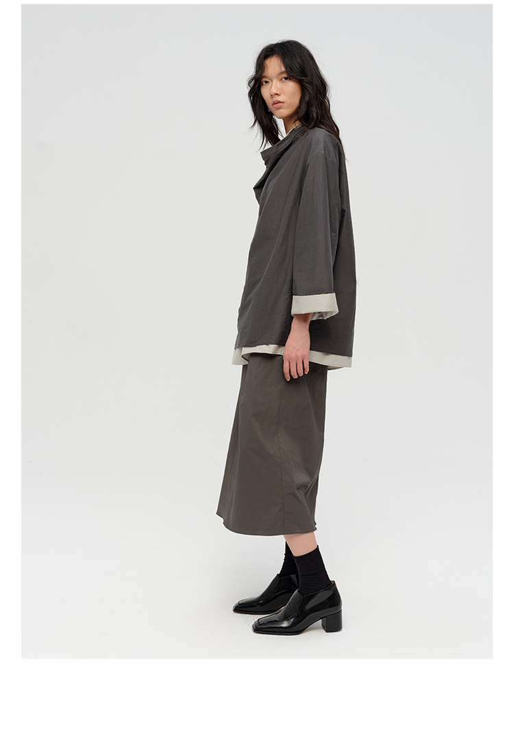 HIDEMI 极简做旧水洗棉堆堆领口袋廓形感衬衫 雾霾灰蓝/炭灰色