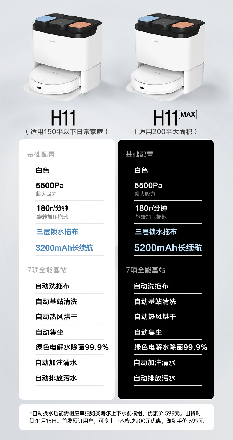 【特惠】海尔(Haier)小金刚扫地机器人扫拖一体自清洁自动集尘免洗拖布拖地擦地机吸尘器电解水杀菌热风烘干H11MAX