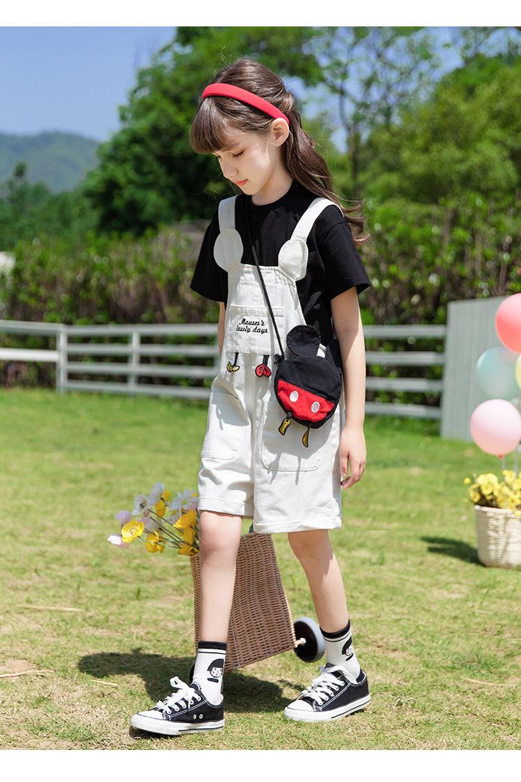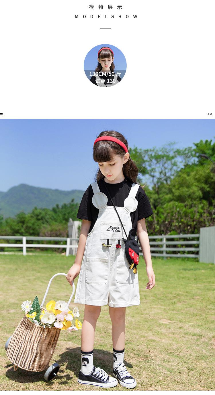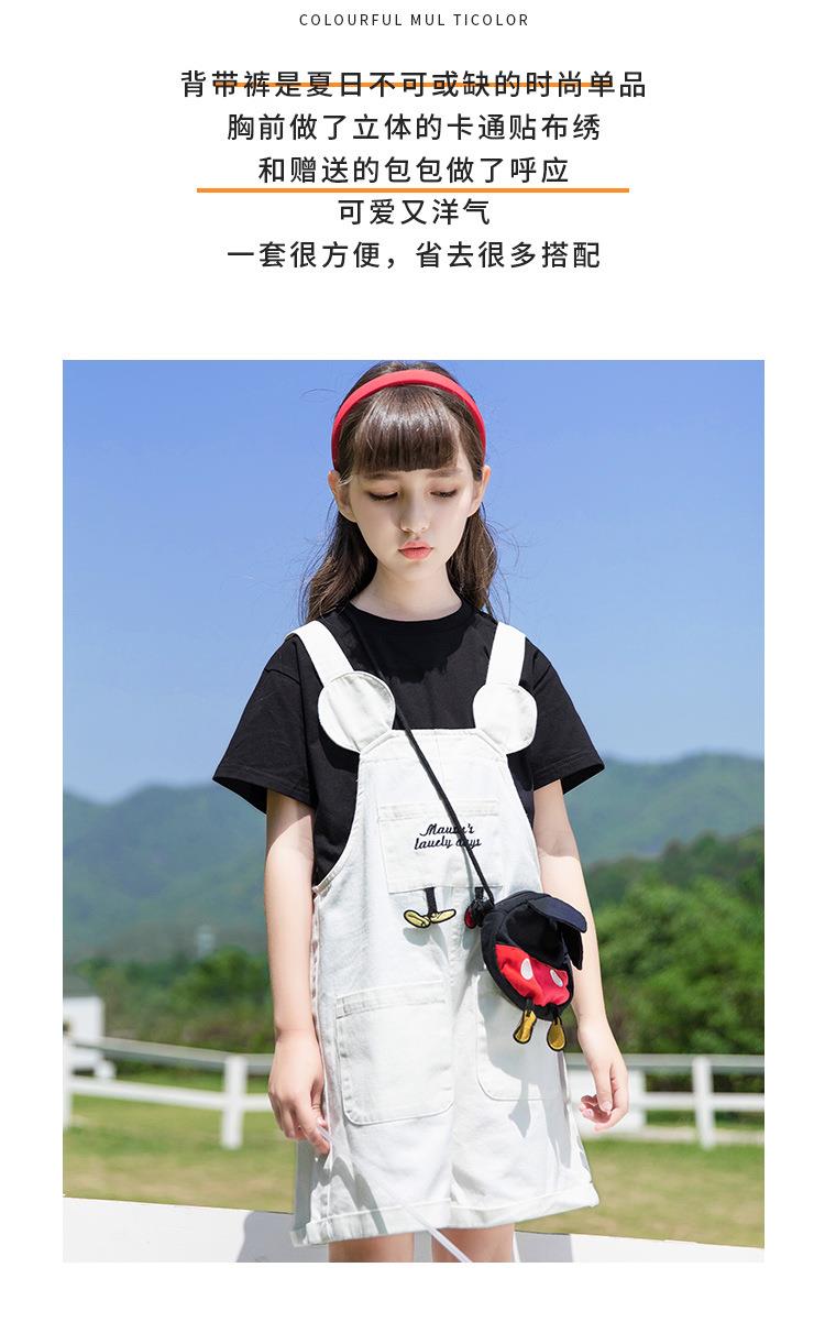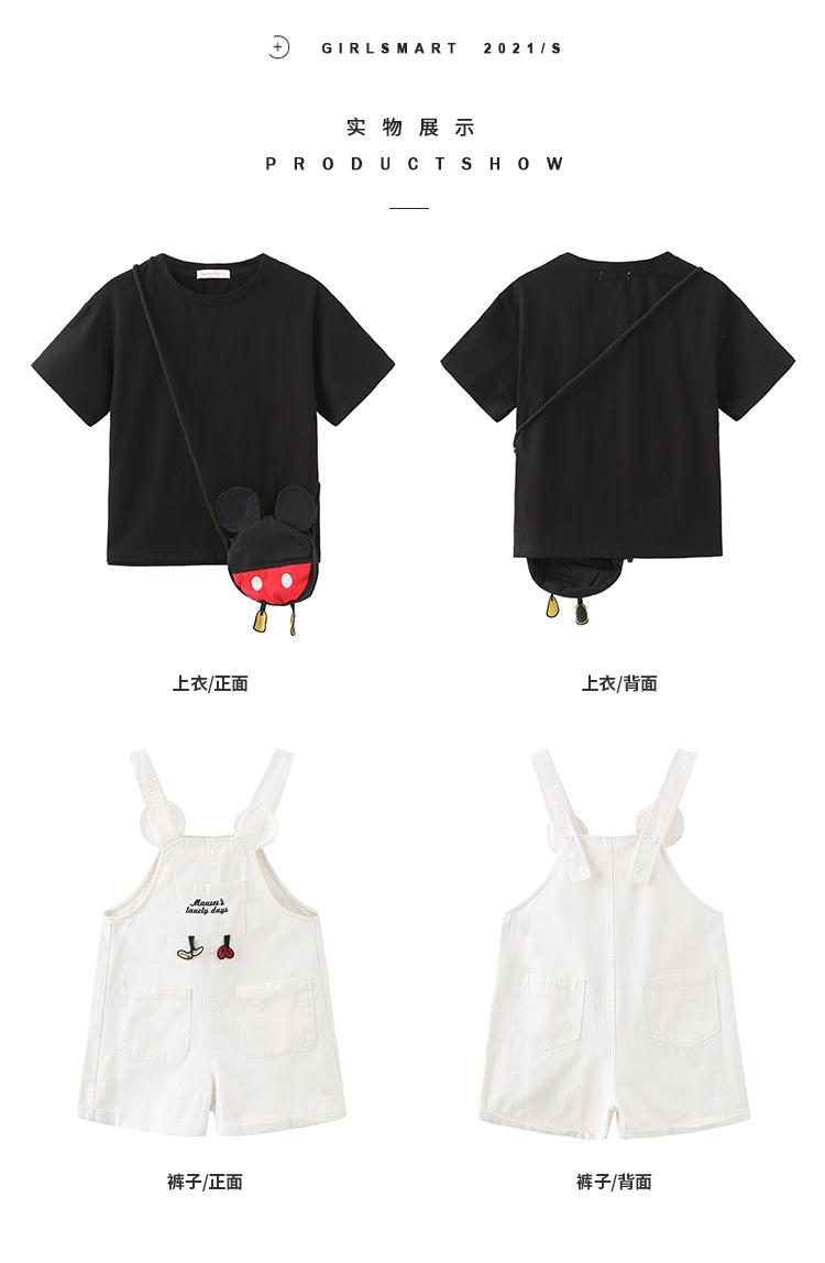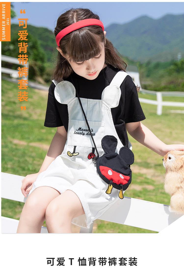 女童新款背带裤夏装套装中大童短袖背带裤2024新款时髦童装两件套