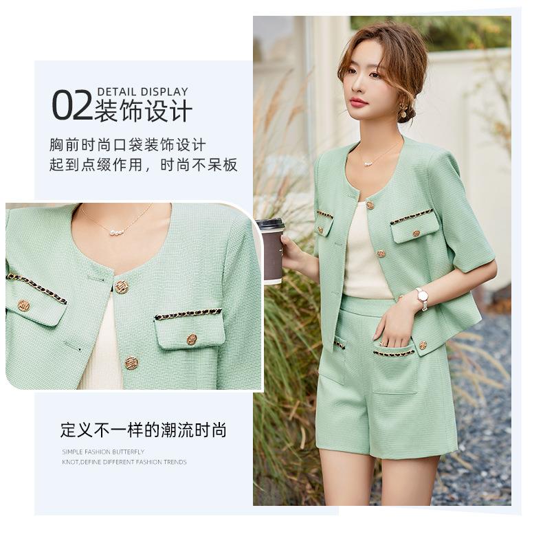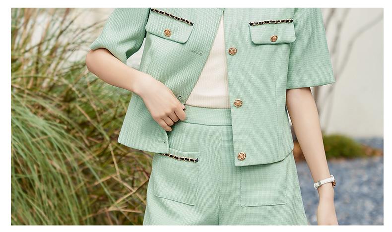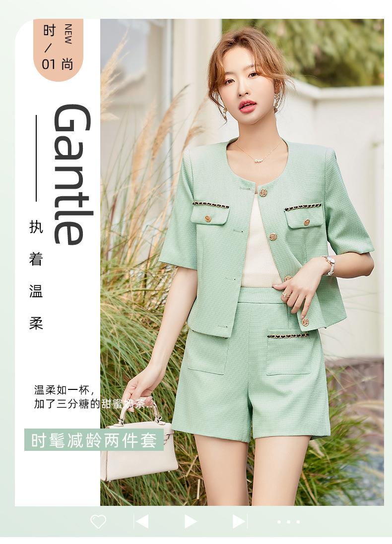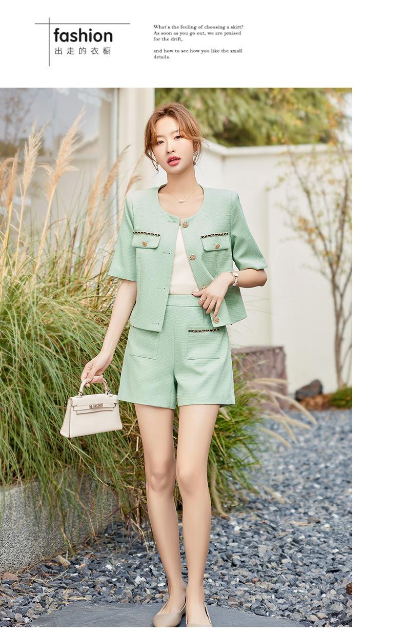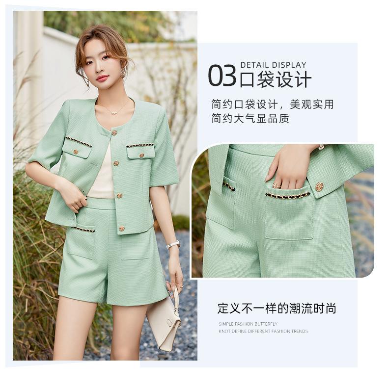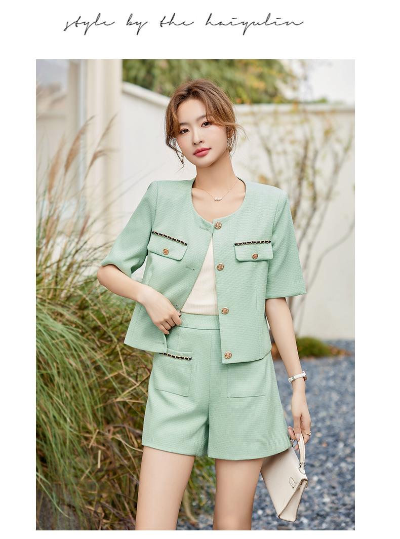绿色短款小香风外套女夏季薄款气质名媛西装短裤套装高级感两件套