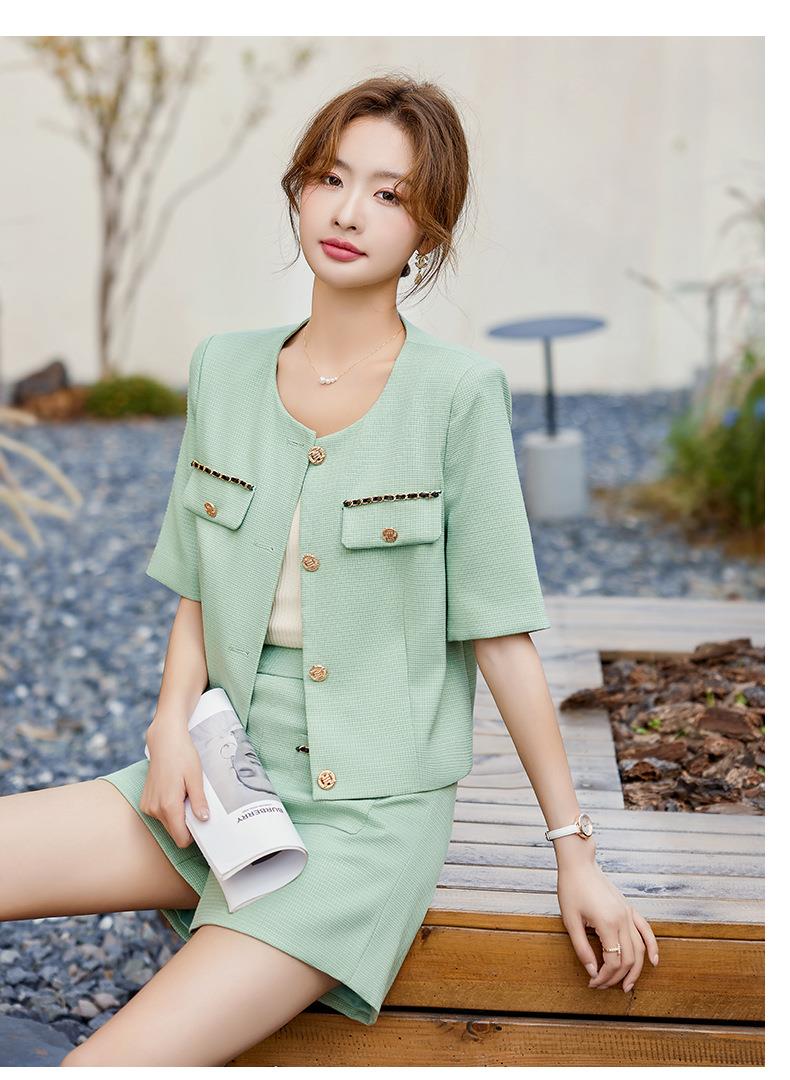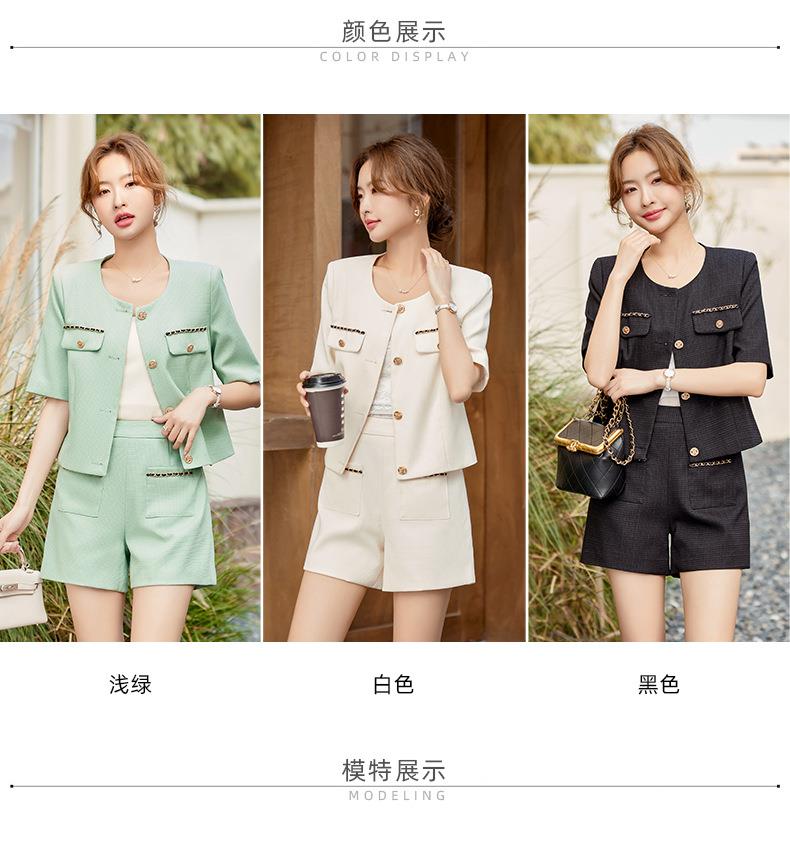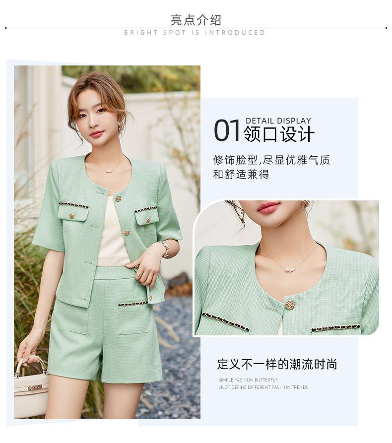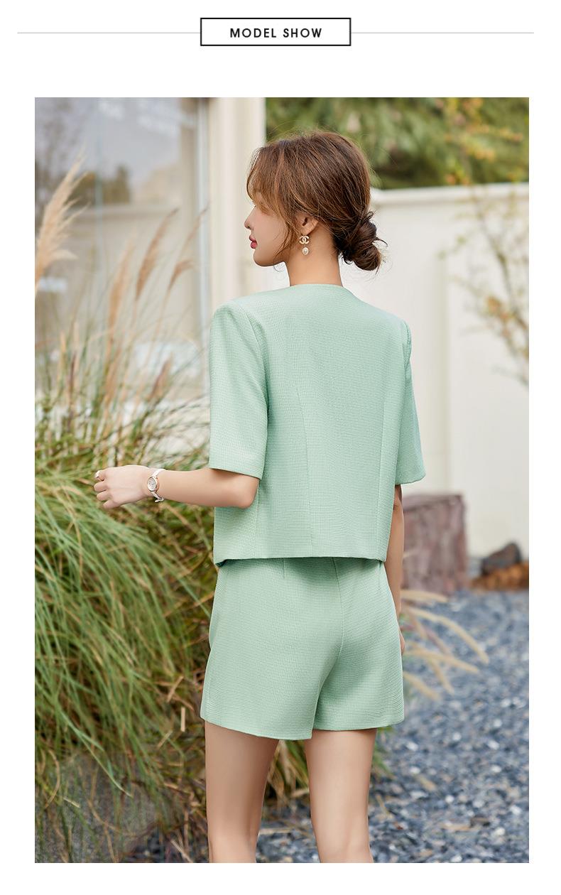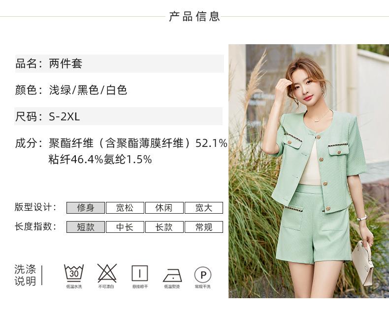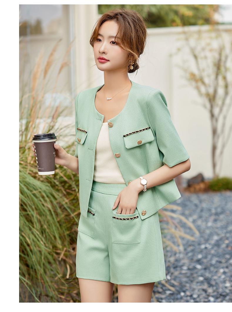 绿色短款小香风外套女夏季薄款气质名媛西装短裤套装高级感两件套