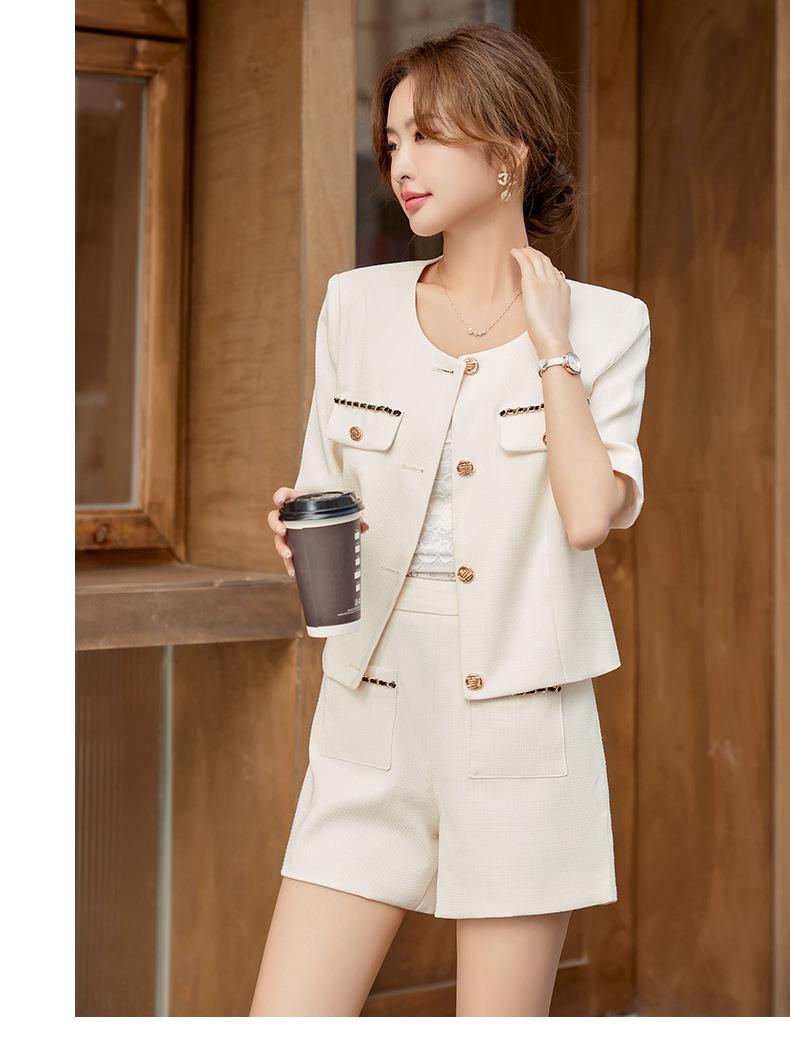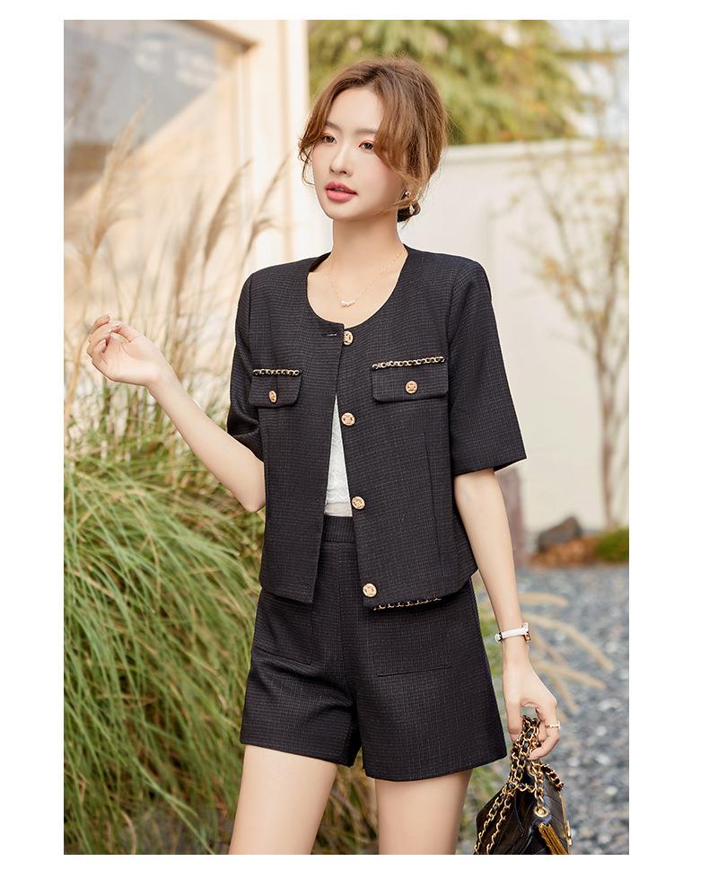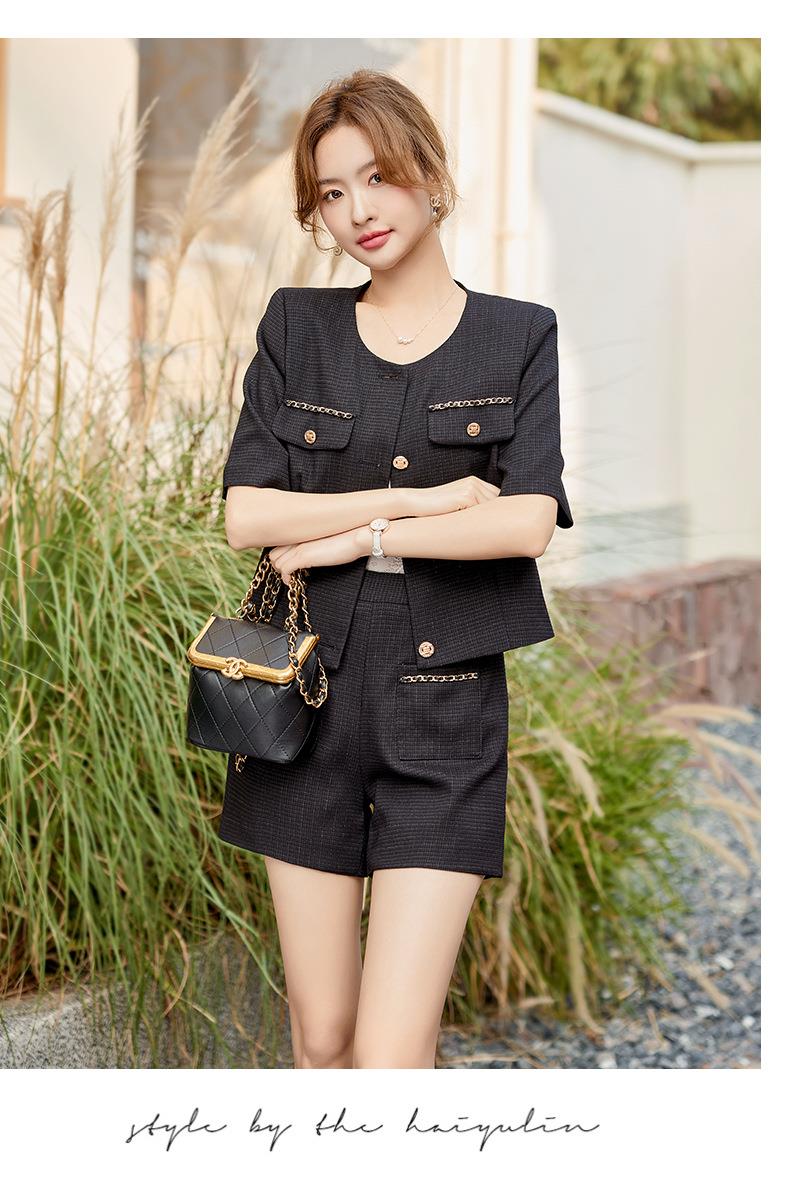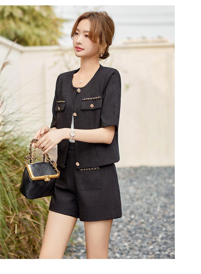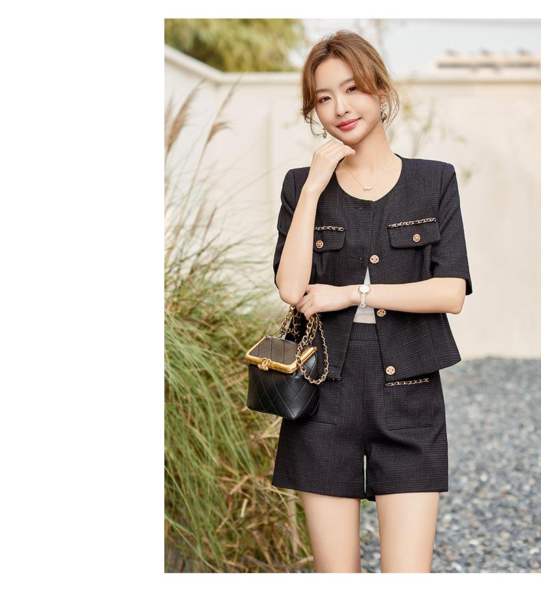 绿色短款小香风外套女夏季薄款气质名媛西装短裤套装高级感两件套