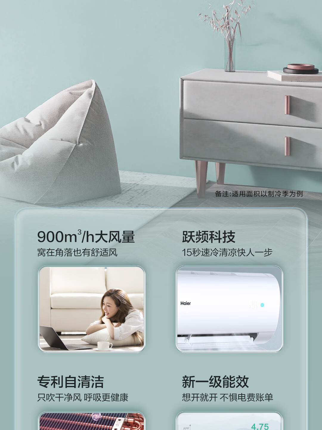 海尔空调挂机2匹一级能效 家用卧室客厅变频冷暖省电壁挂式自清洁KFR-48GW/24P1A181U1