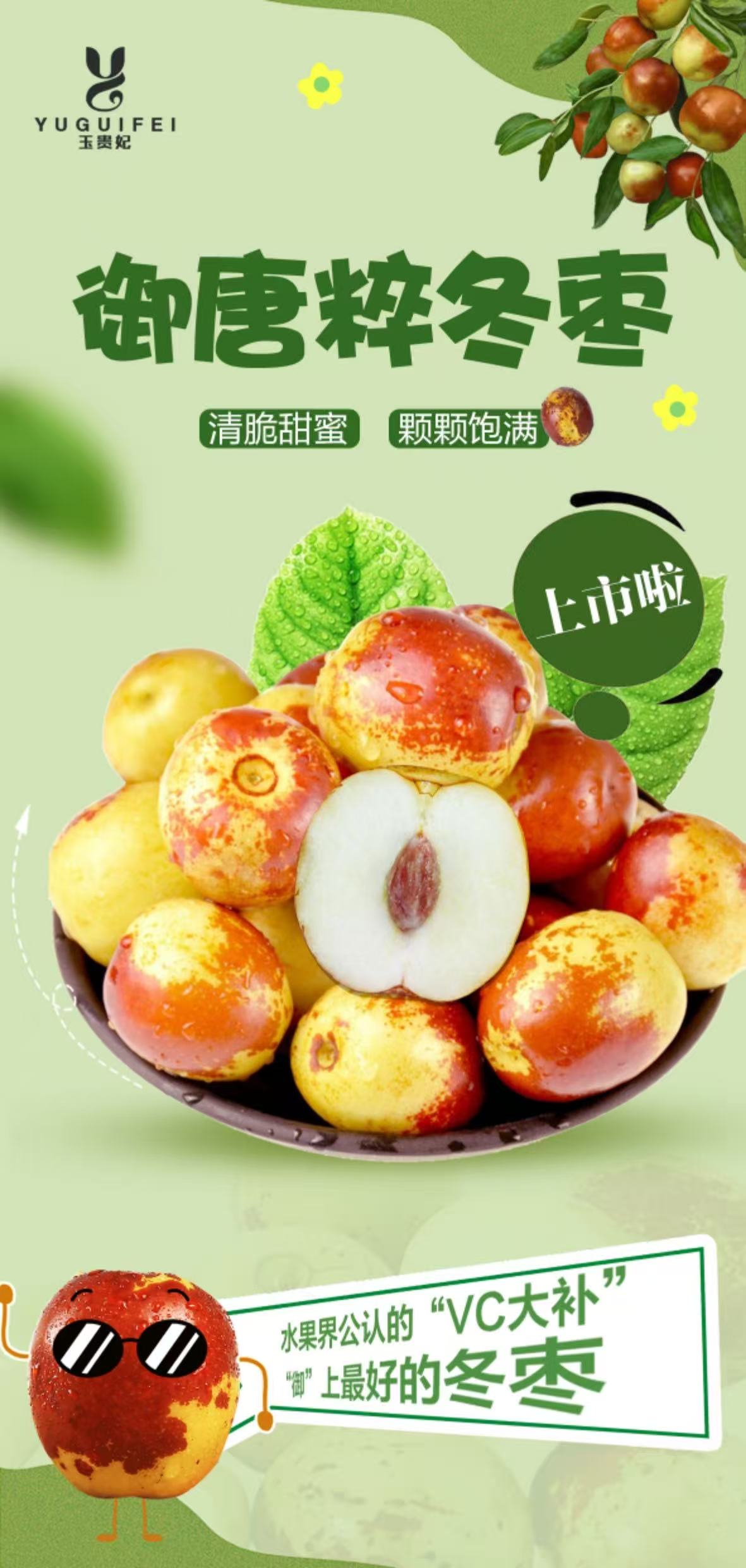 冬枣营养丰富,含有天门冬氨酸、苏氨酸、丝氨酸等19种人体必需的氨基酸,特别是其维生素C的含量为苹果的70倍、梨的140倍,被称为"活维生素丸"、"百果王"、"天下奇果"。此外,大荔冬枣中还含有较多的维生素A、维生素E以及钾、铁、铜等多种微量元素,有防癌功效,其营养价值为" 百果之冠"