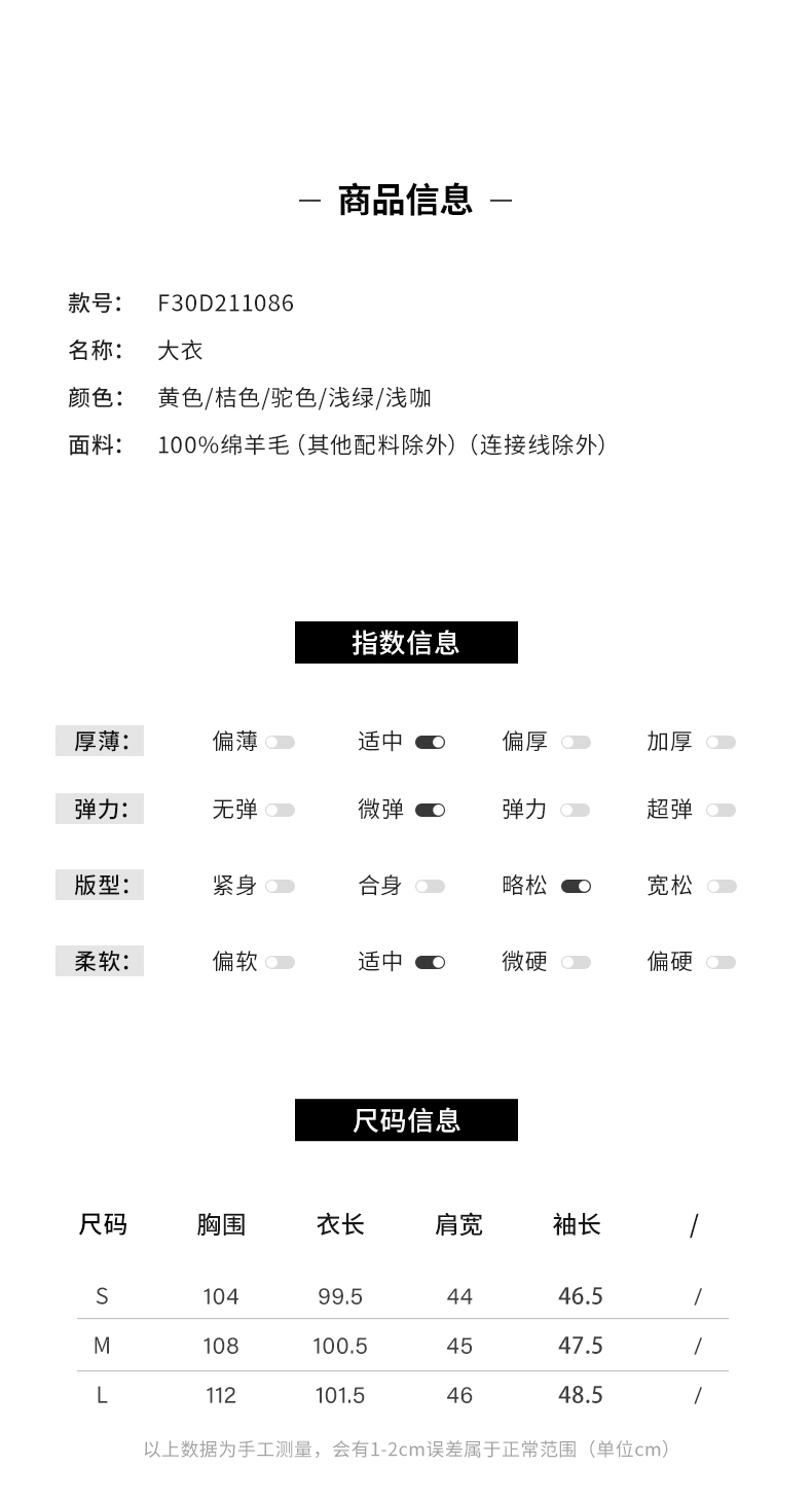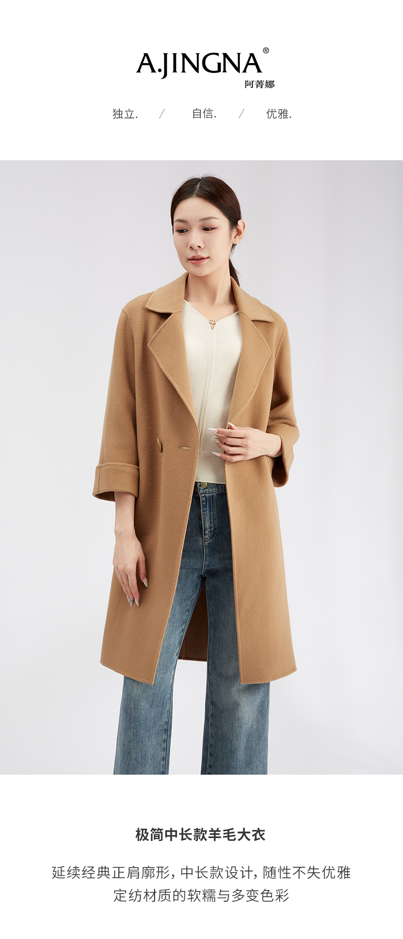 【商城同款】阿菁娜极简中长款羊毛大衣F30D211086
