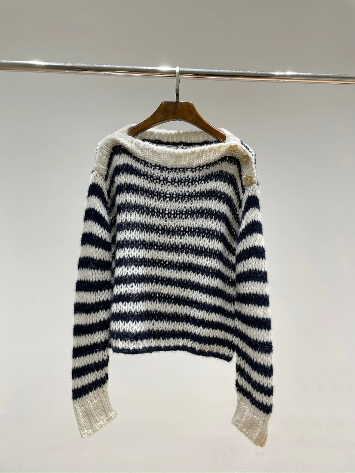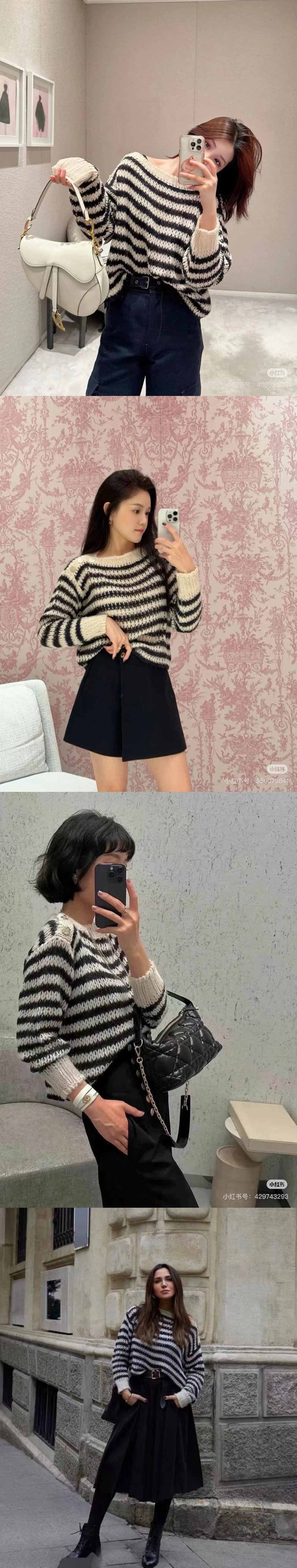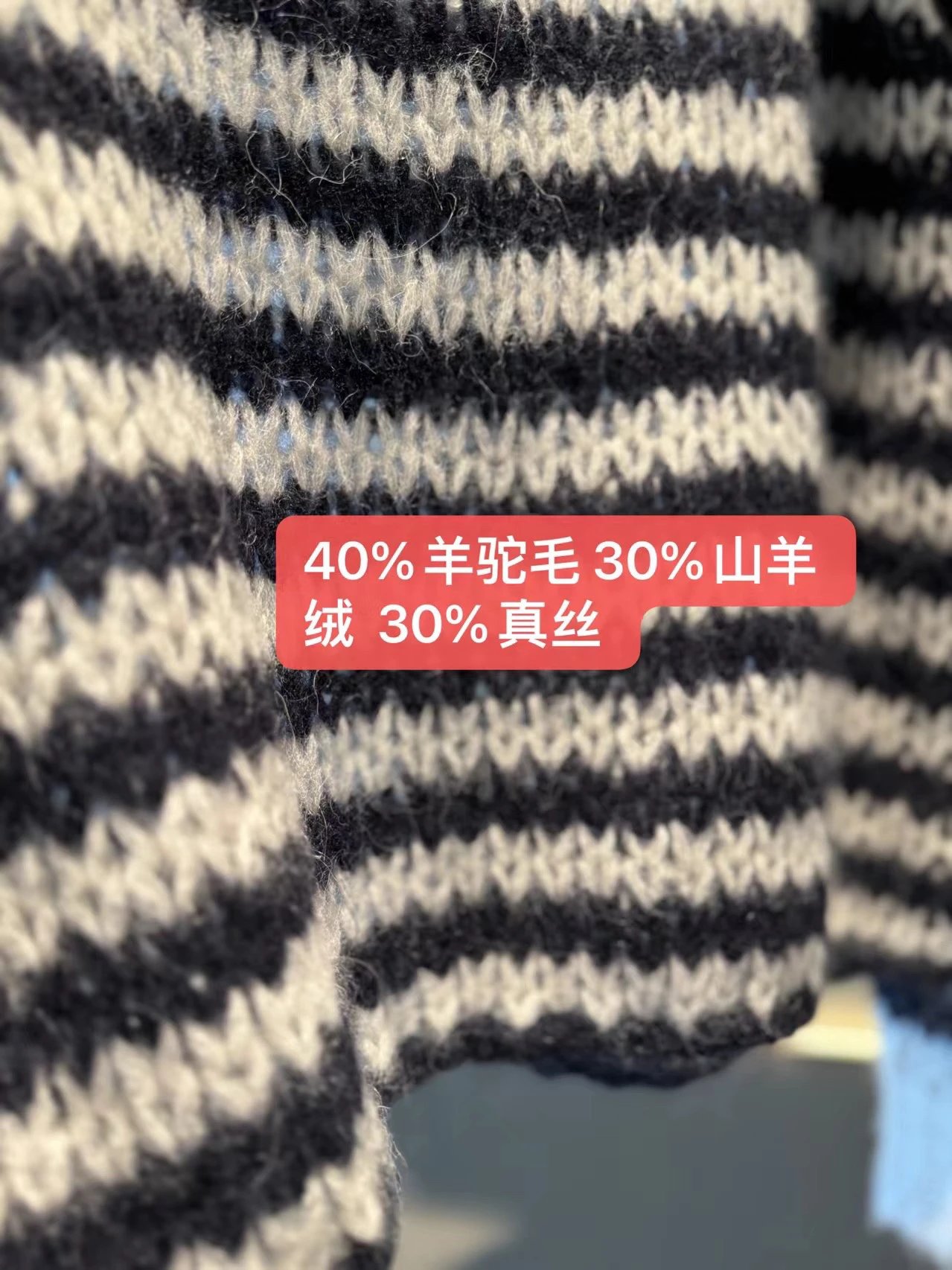 重磅渠道 CD一字领条纹毛衣 康赛尼 羊驼毛丝羊绒