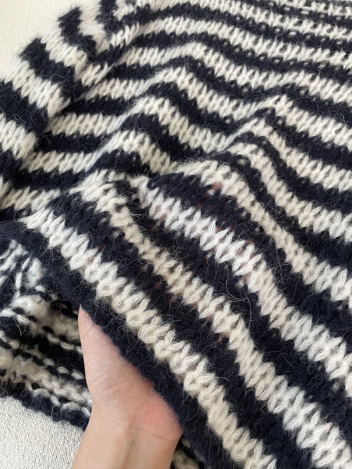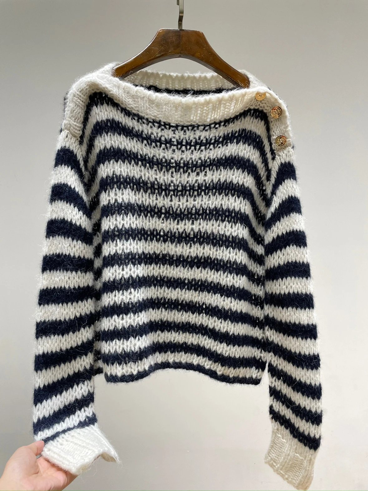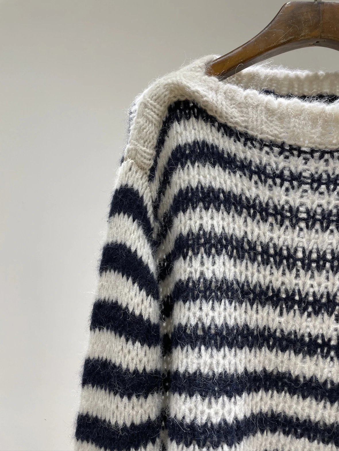 重磅渠道 CD一字领条纹毛衣 康赛尼 羊驼毛丝羊绒