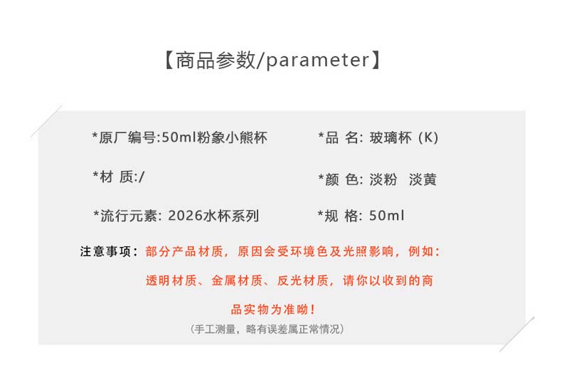 50ml粉象小熊杯玻璃杯-纪念日百货门店同款169648515
