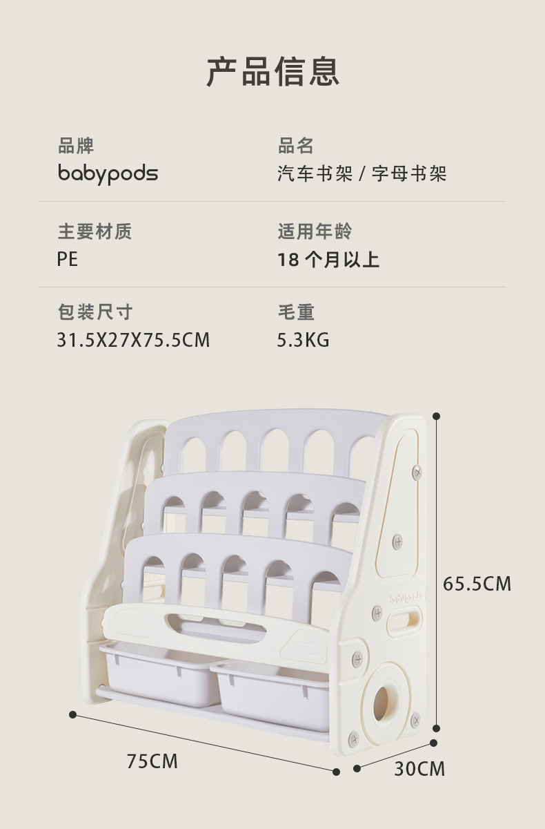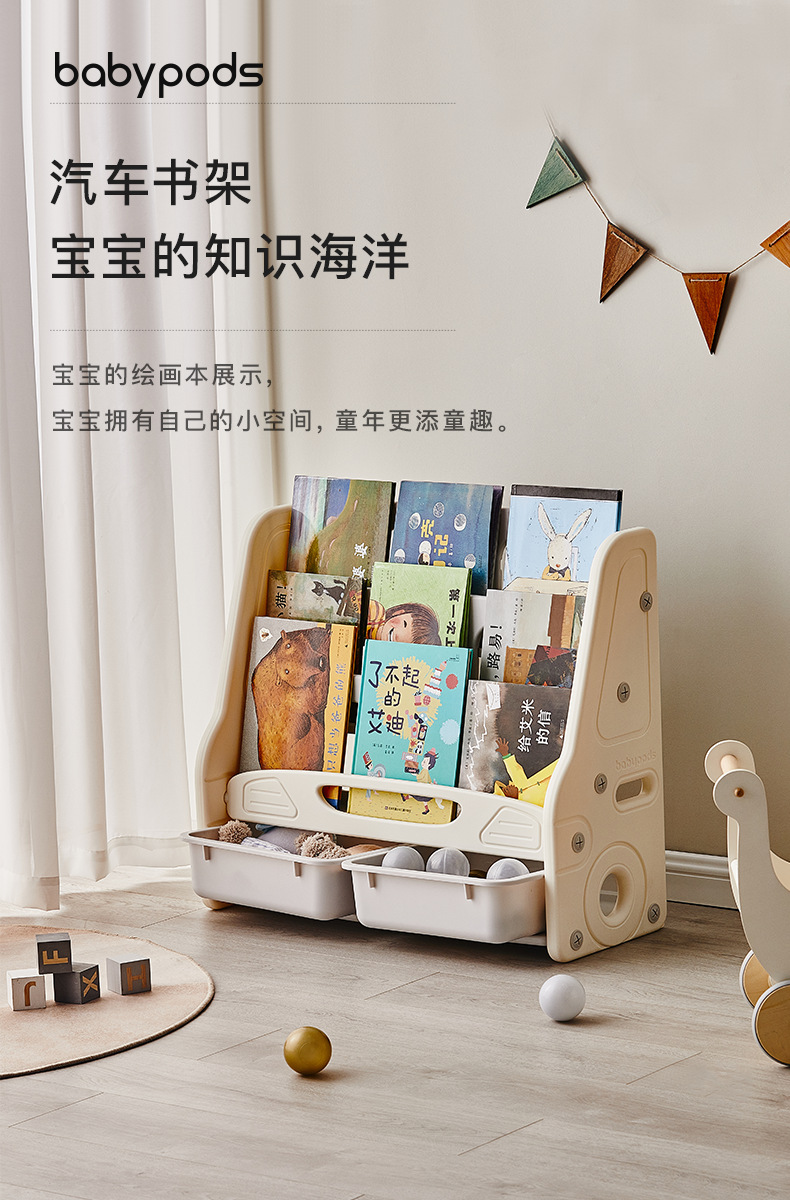 【汽车绘本架 宝宝的知识海洋展示架】 儿童收纳书架 宝宝绘本架 一体落地置物架 让宝宝拥有自己的空间