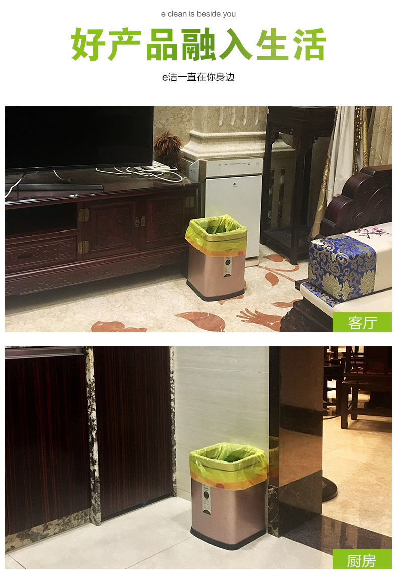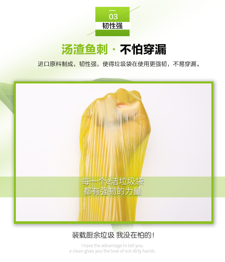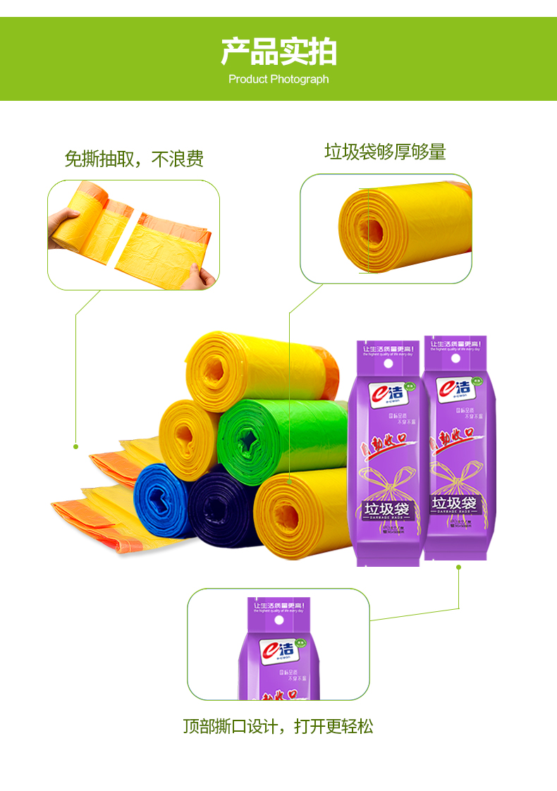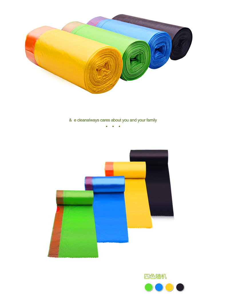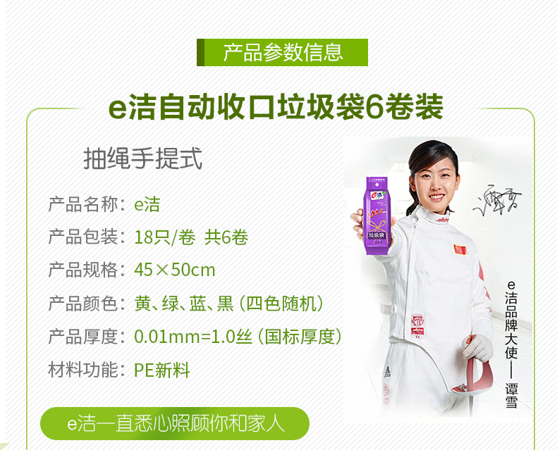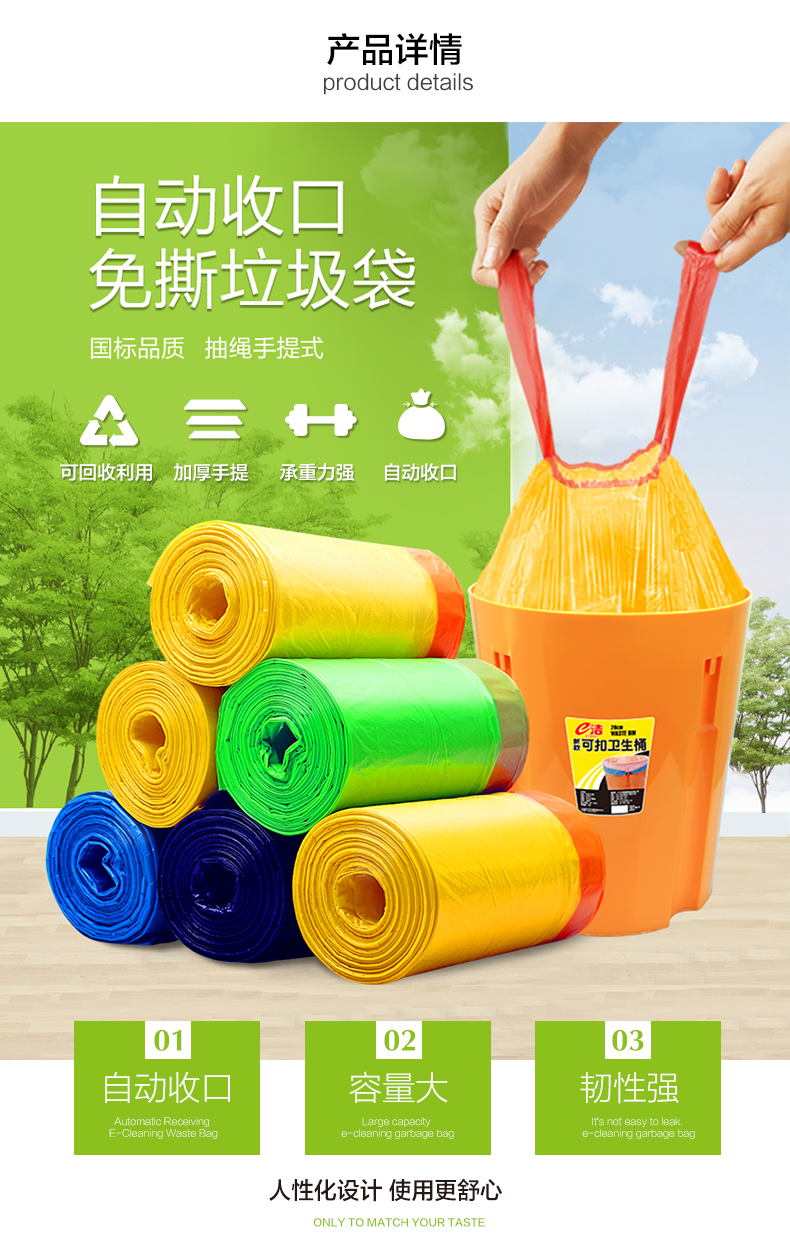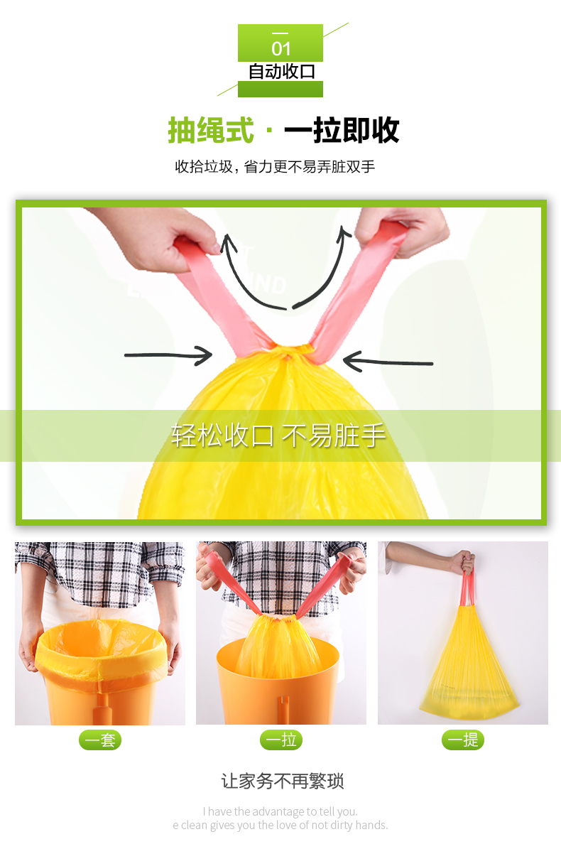 e洁 自动收口垃圾袋加厚手提式抽绳穿绳免撕式 45cm*50cm*6卷
