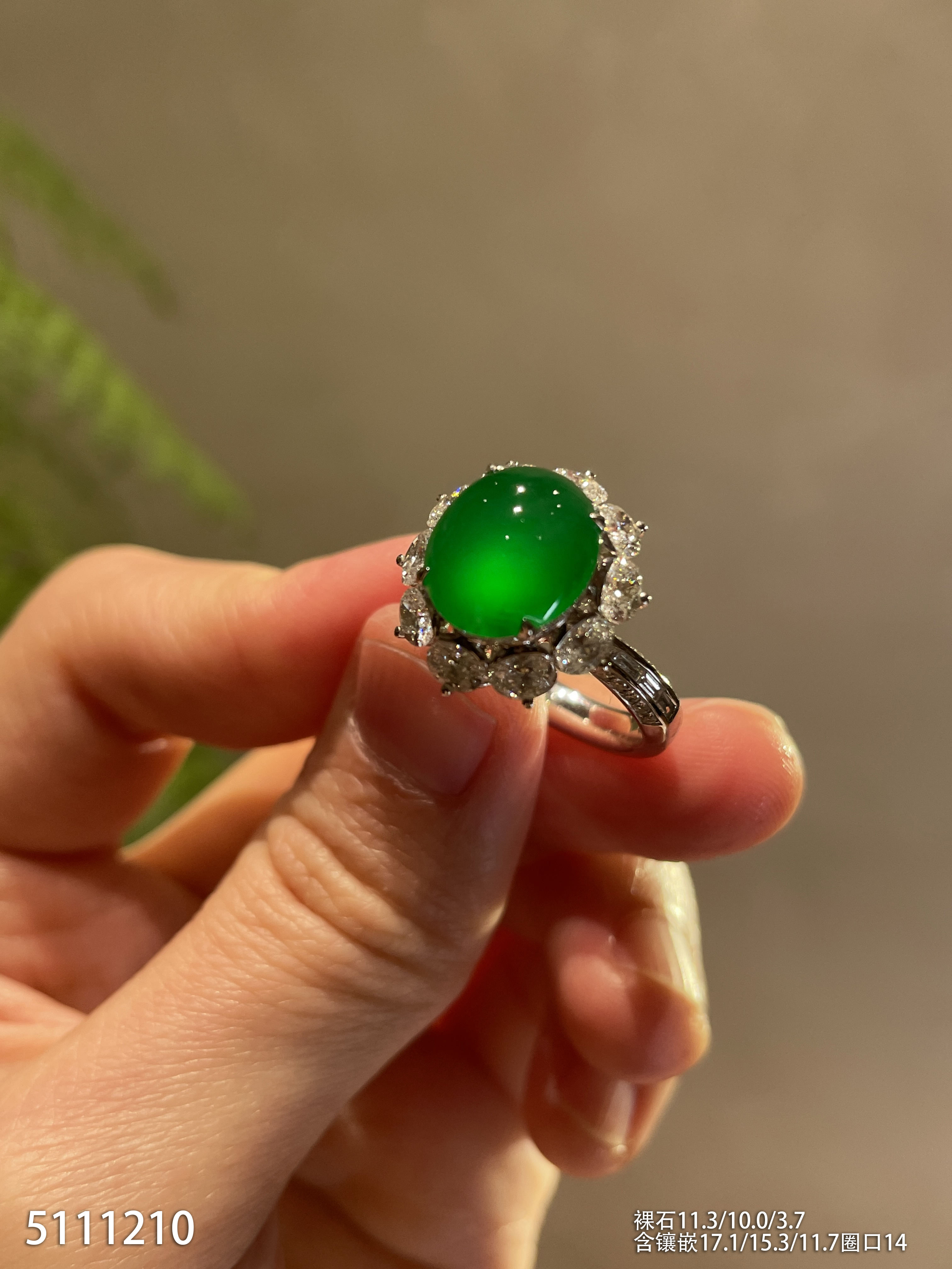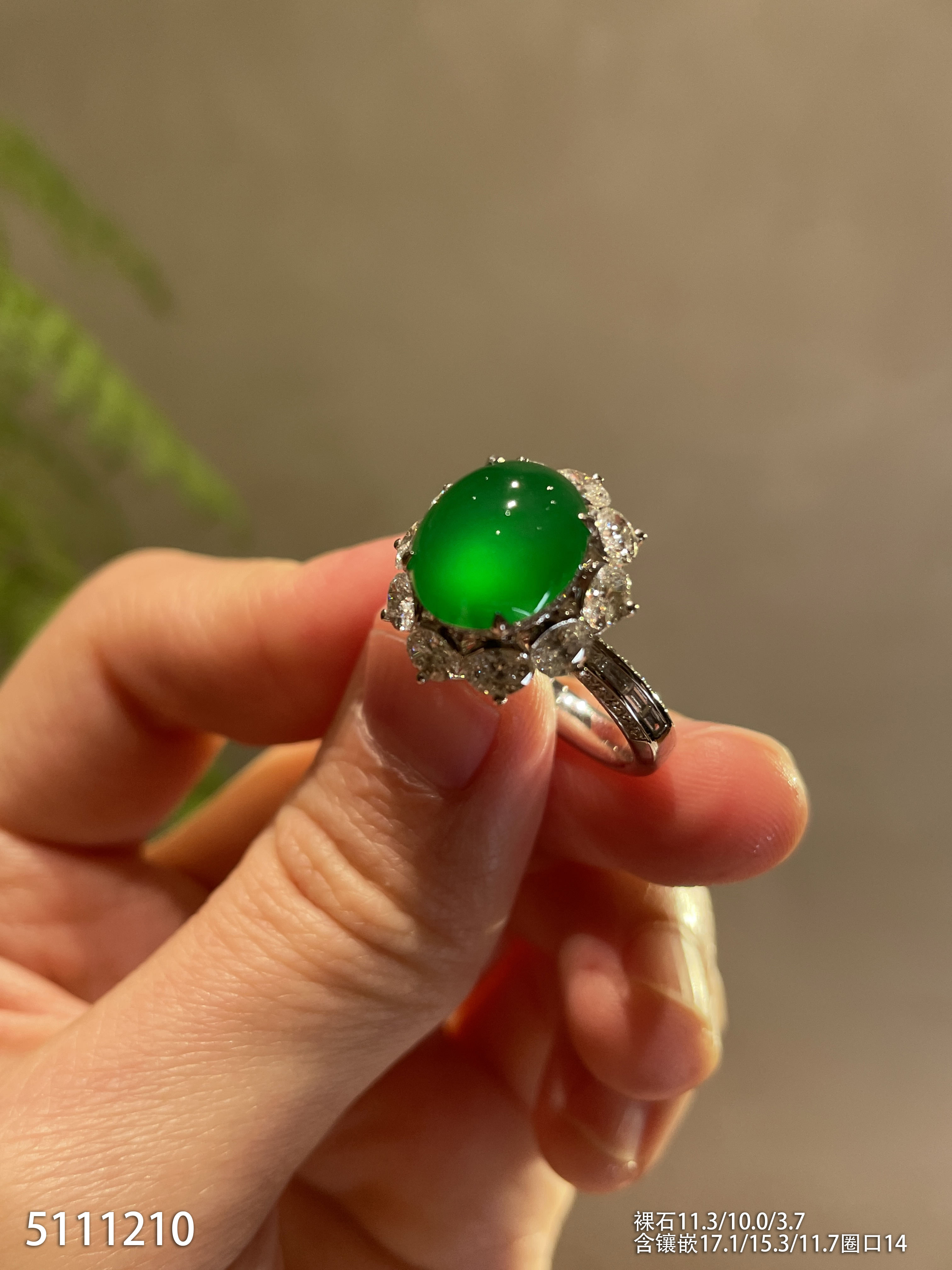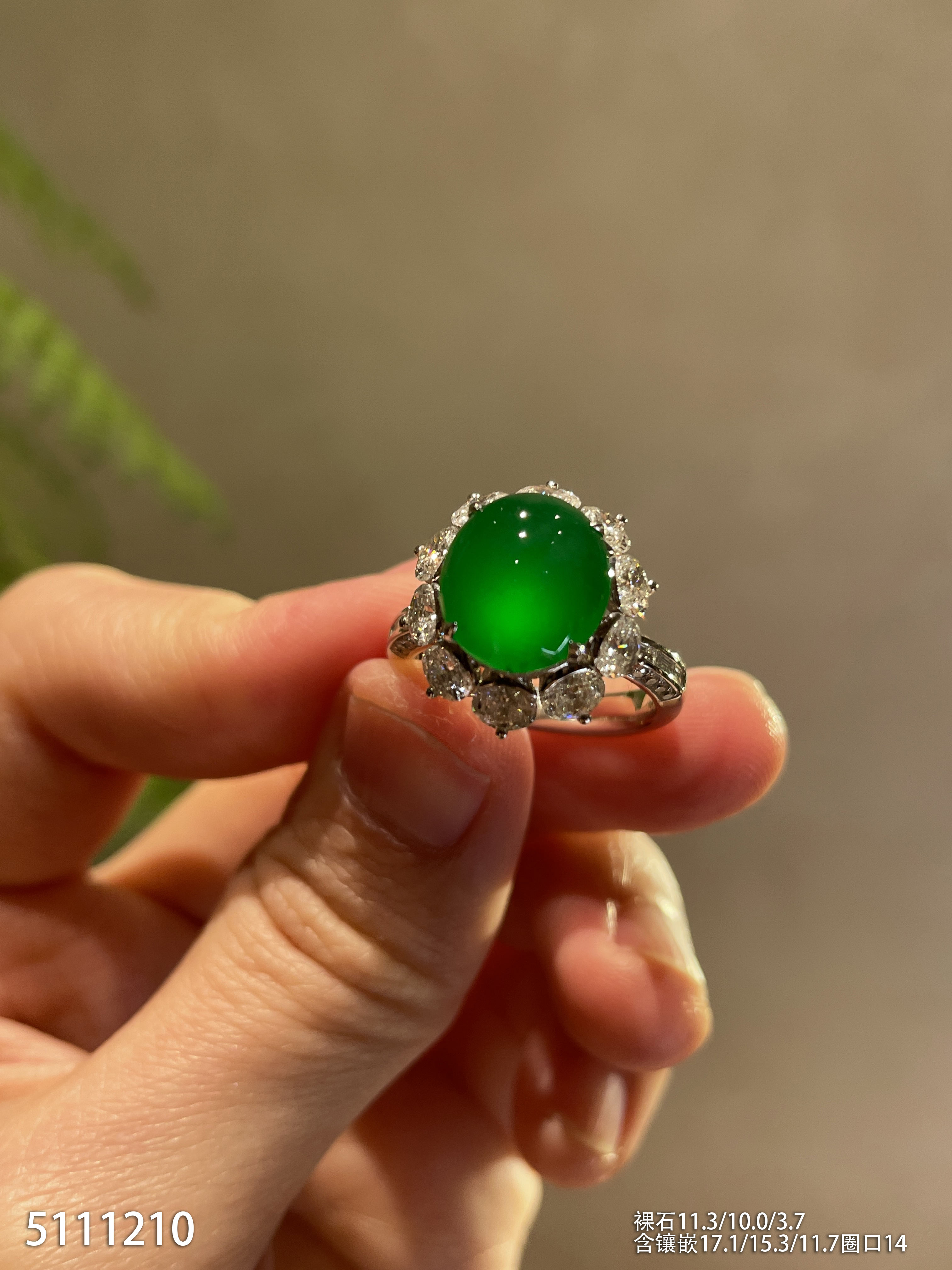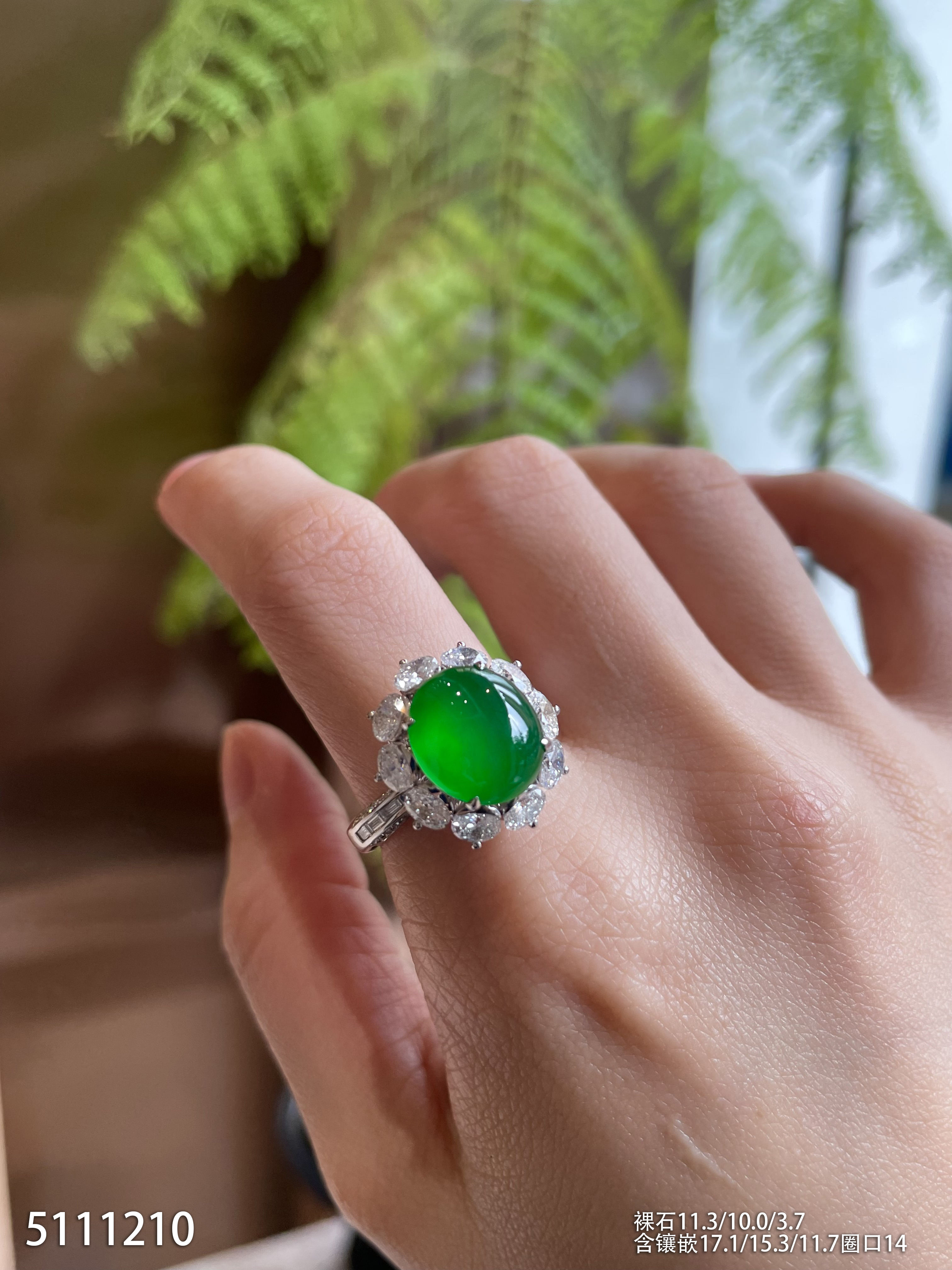 132-2123701,老坑高冰艳绿蛋面戒指,6599