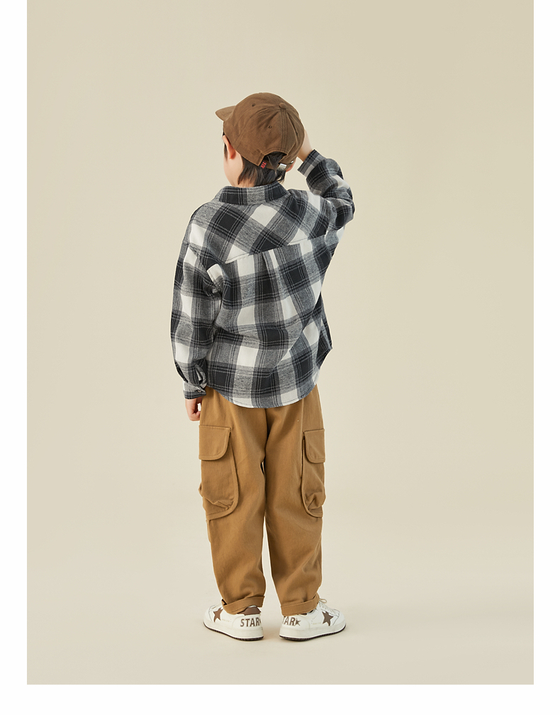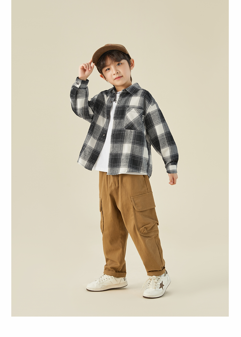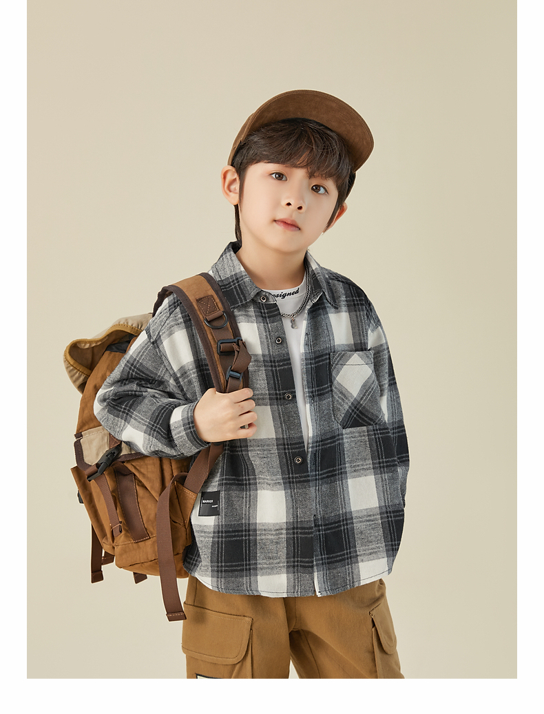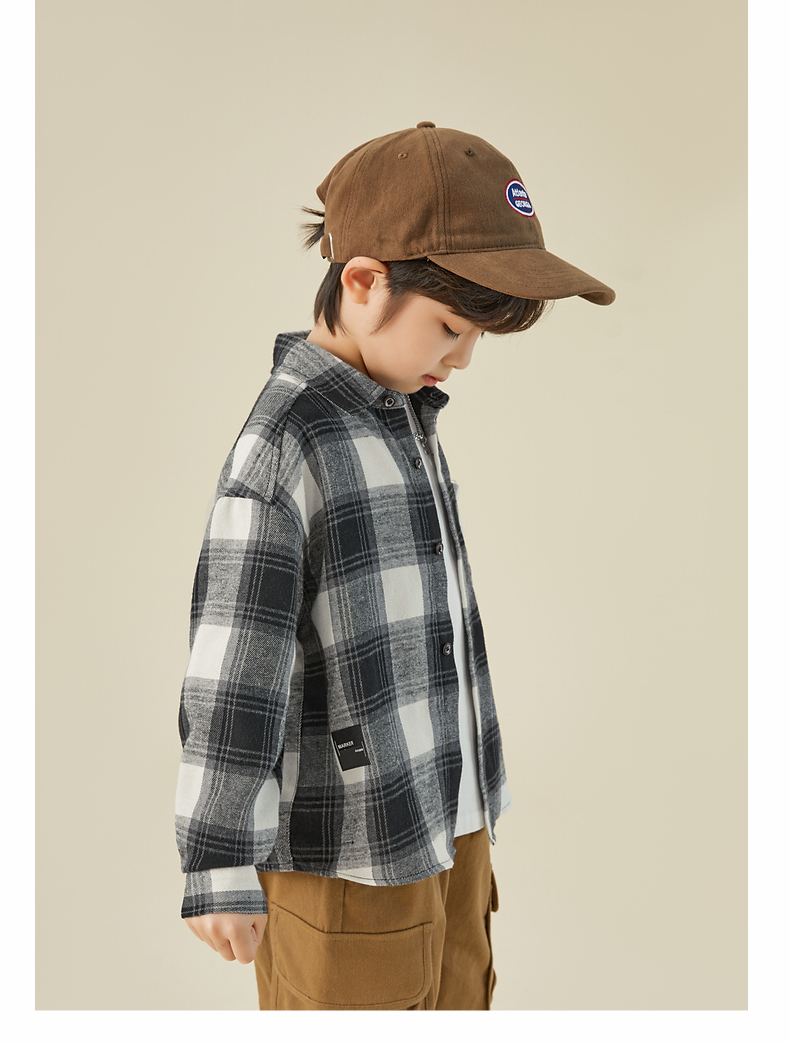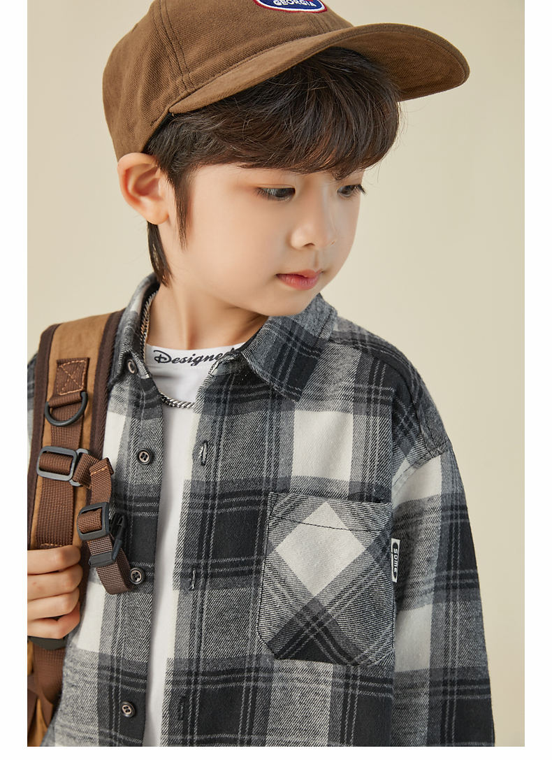 【团购价69.9】多多家男童格纹衬衫春秋季纯棉休闲儿童衬衣2024新款翻领男孩上衣9078