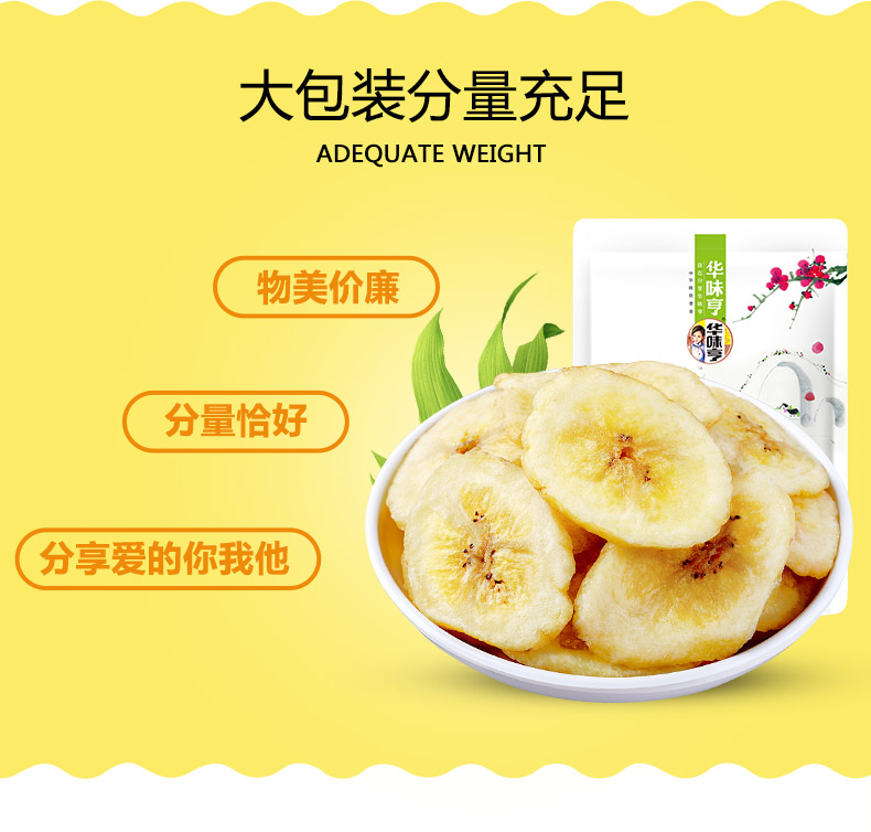 华味亨香蕉片158g香蕉干香蕉脆片水果干休闲蜜饯零食品小吃芭蕉干 蕉香浓郁 酥脆可口