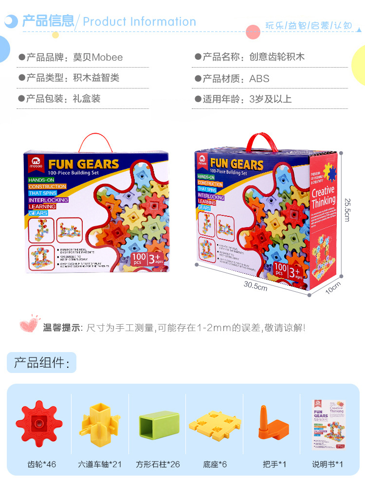 【开启天马行空的拼搭之旅】mobee齿轮积木/蘑菇钉组合 宝宝拼插颗粒散件套装 大颗粒可转动 易抓握 共同搭建大未来!