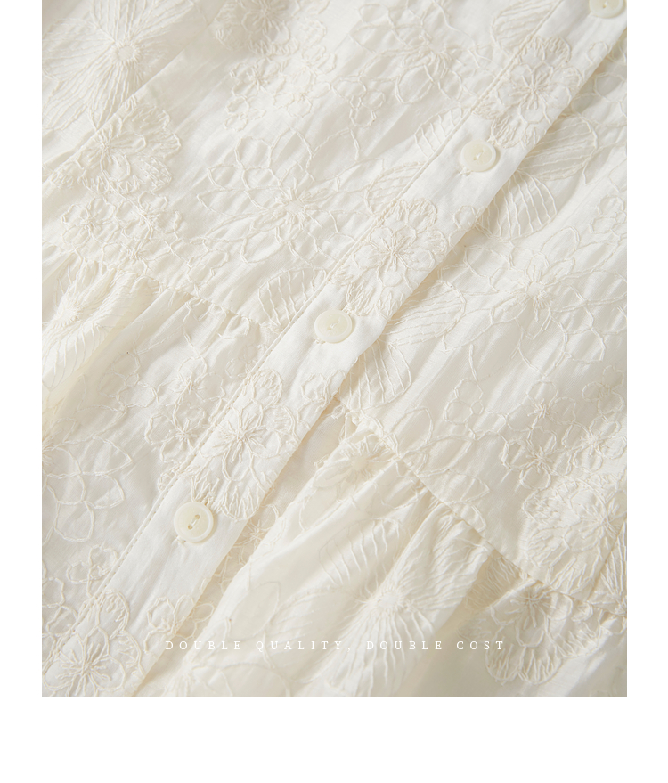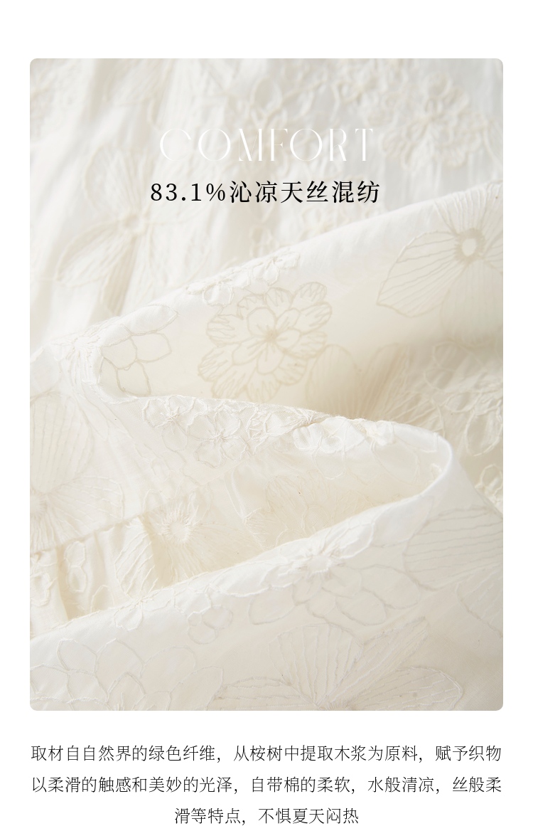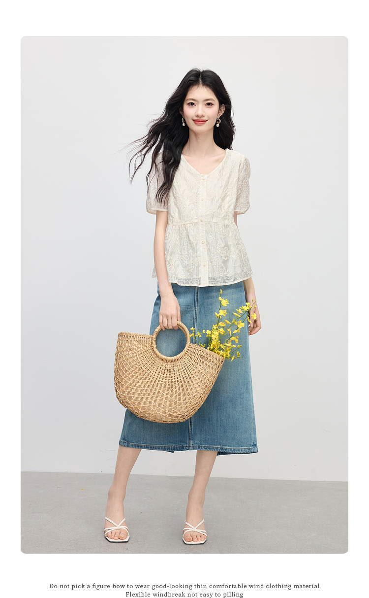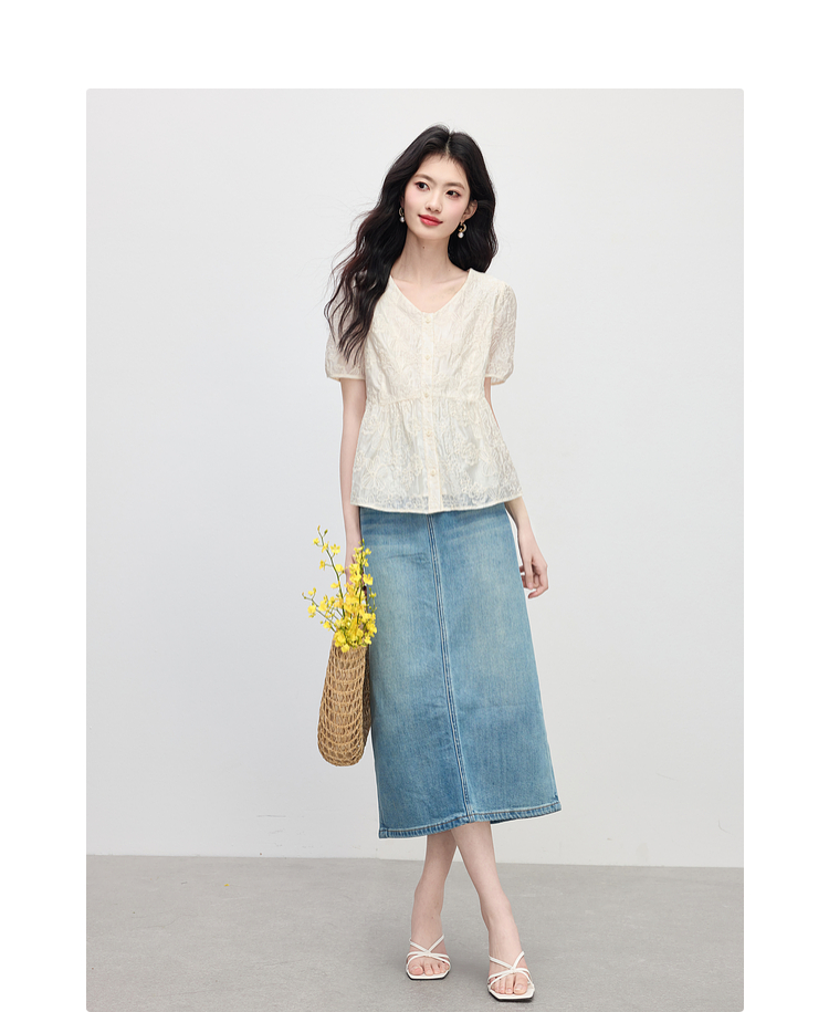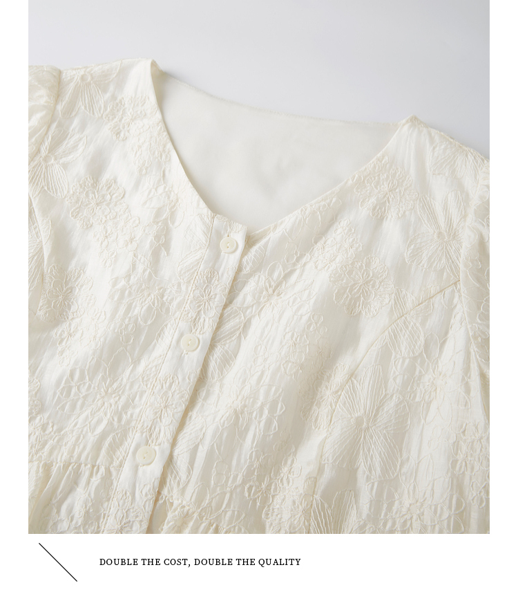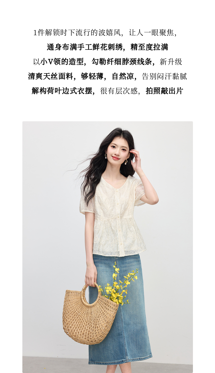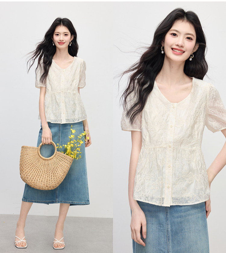 【夏日新品】熙世界莱赛尔绣花V领衬衫女夏日法式精致淡人穿搭气质泡泡袖上衣
