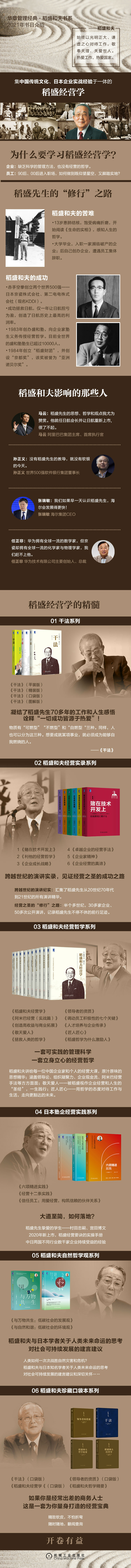 让稻盛先生成为传奇人物的稻盛哲学没有任何神秘的色彩,恰恰相反,这种哲学十分朴实,用稻盛先生自己的话来说甚至有点"幼稚"。这种哲学,每位企业家,甚至每个人都能掌握,都能实践。当你读完本书后,我相信你自己就能得出上述结论。