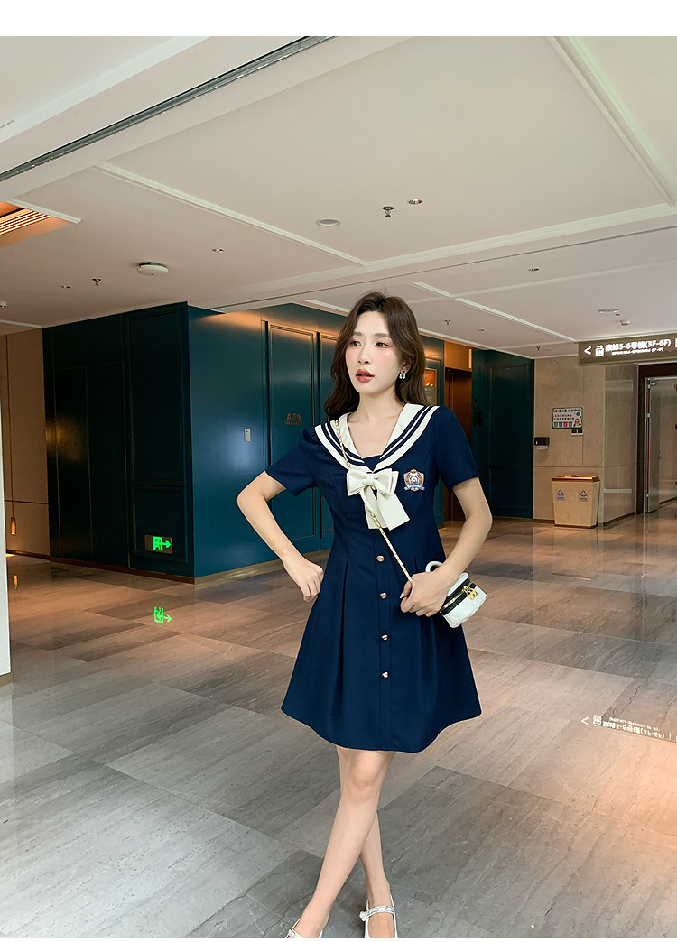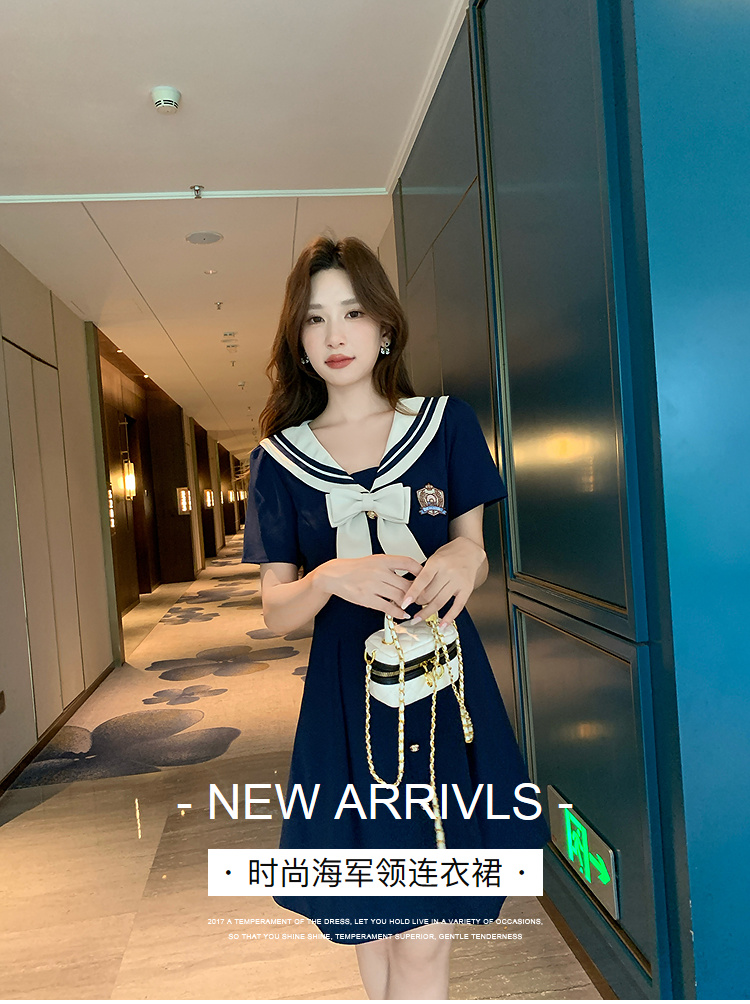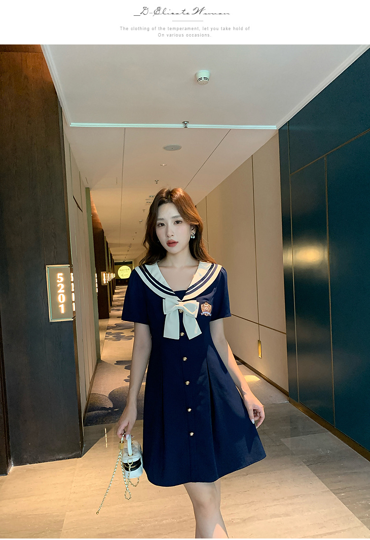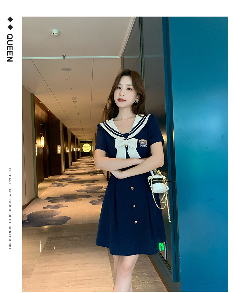 奢姿大码女装2025夏季学院风海军领连衣裙胖妹妹蝴蝶结时尚裙子9952835117