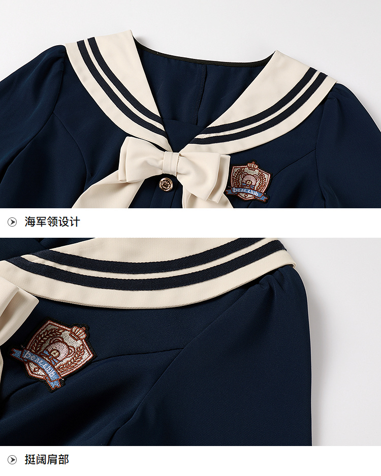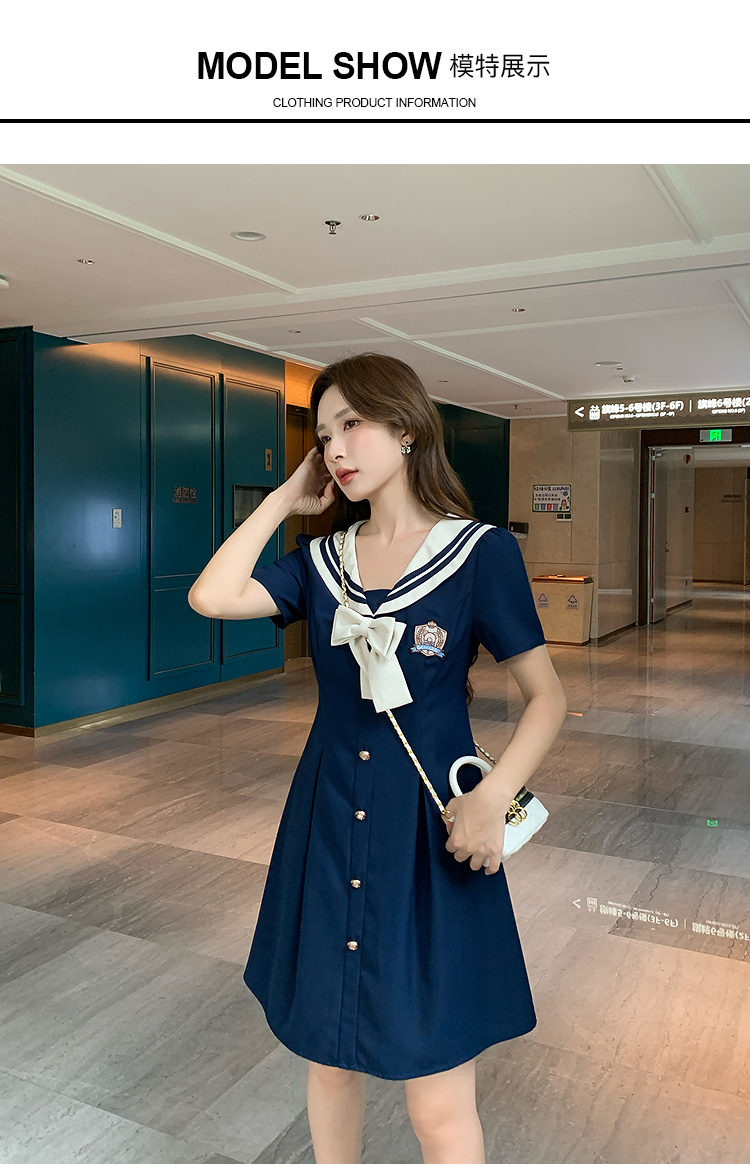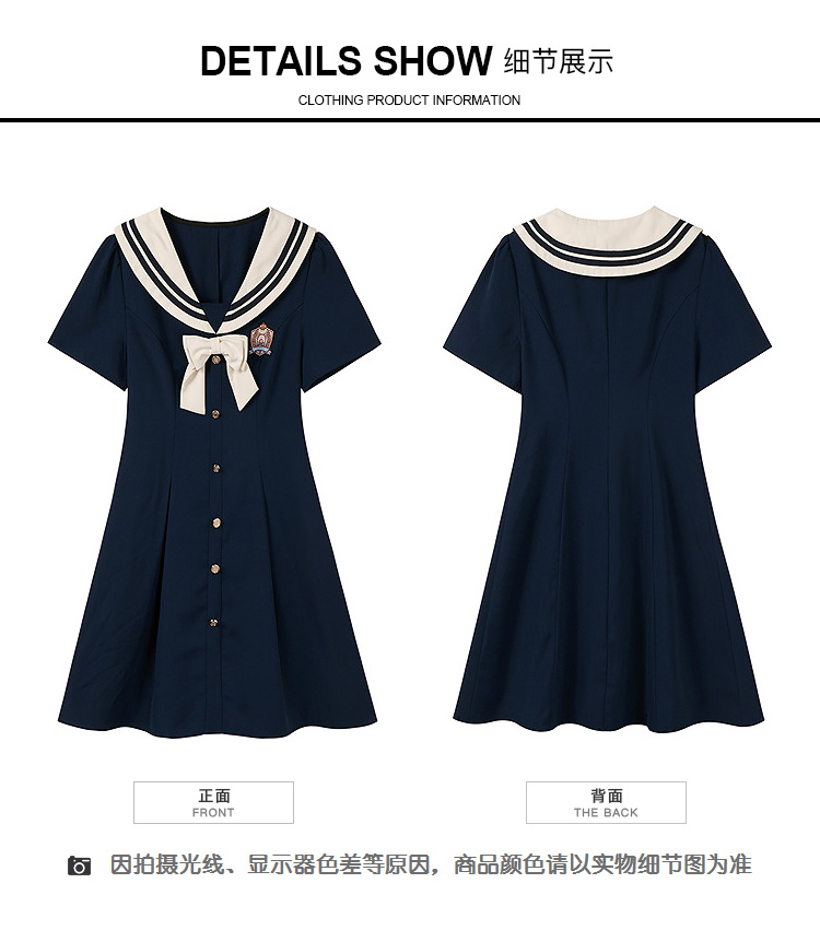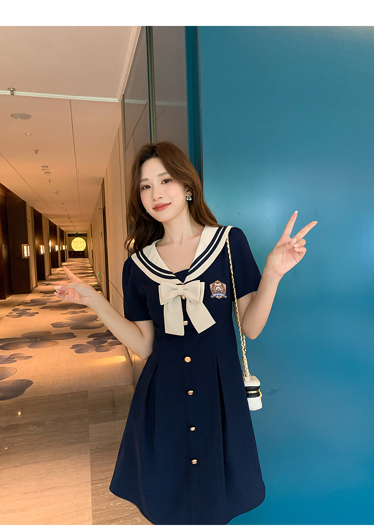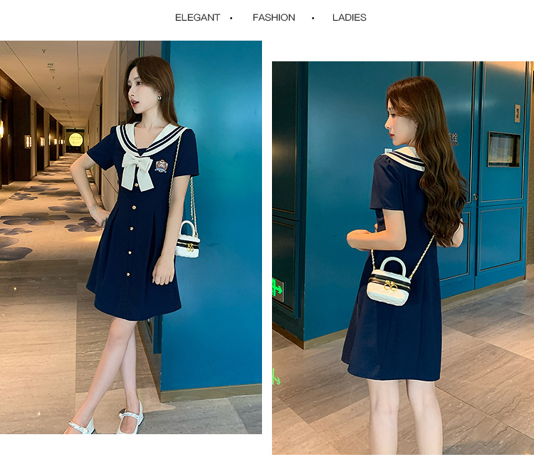 奢姿大码女装2025夏季学院风海军领连衣裙胖妹妹蝴蝶结时尚裙子9952835117