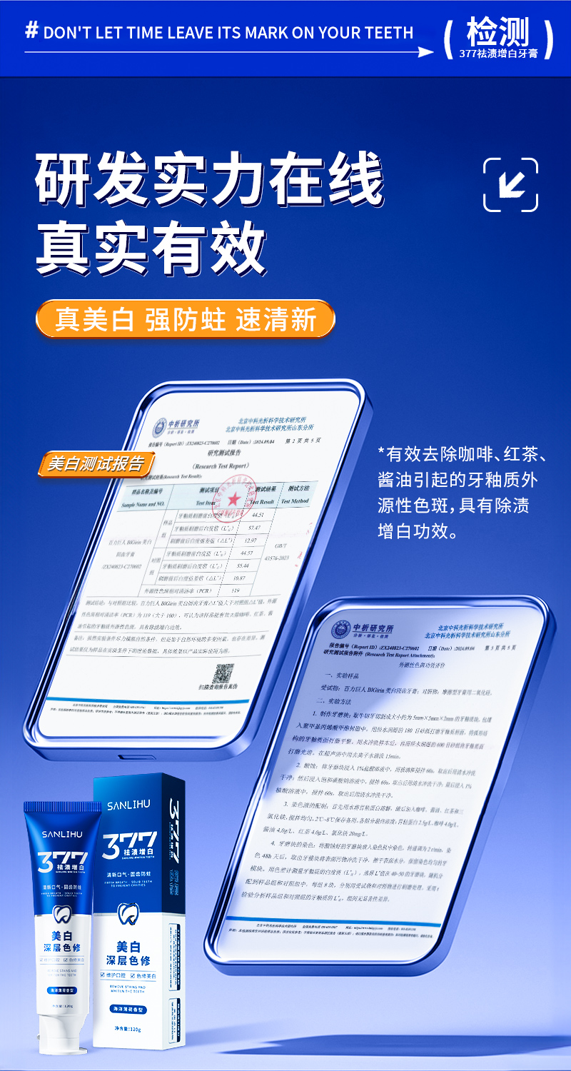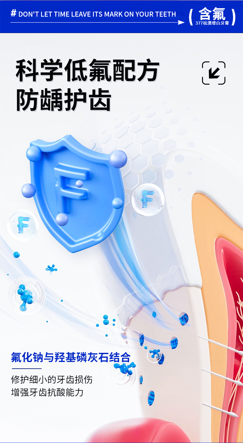【3支】377祛渍增白牙膏、清新口气、微粒渗透、5种口味可选、120g/支、粤国牙膏网备字2024703552-2