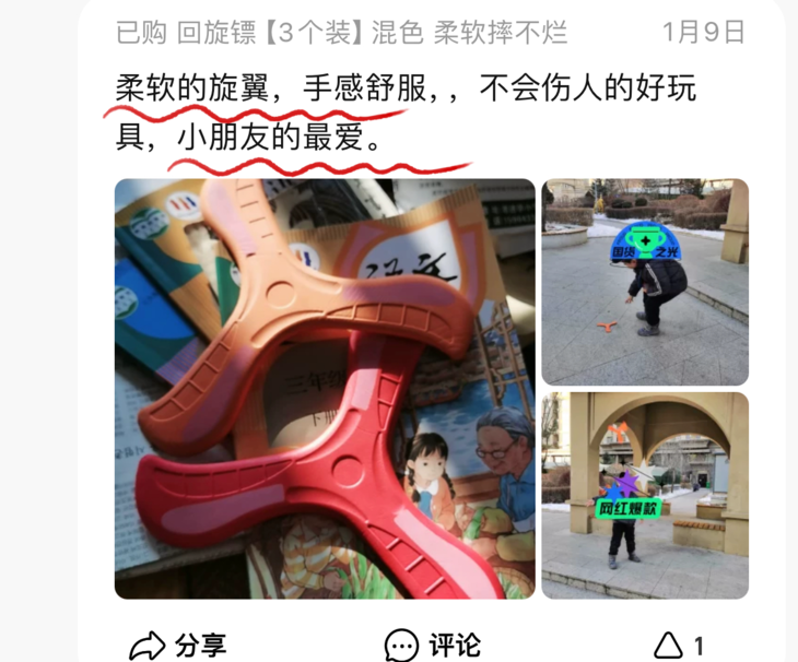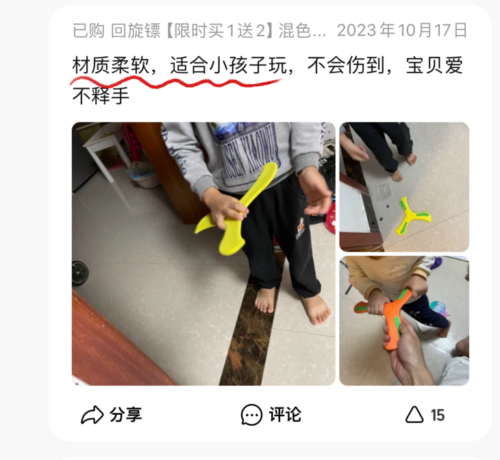 真是必入的好物!!这次帮你们挑好了亲子炸街款 三叶回旋镖! 简单好上手!还是大人想玩,都可以无脑入屯几个送朋友家孩子也很合适~ 一起去公园玩玩,简直是增进感情的神器啊!