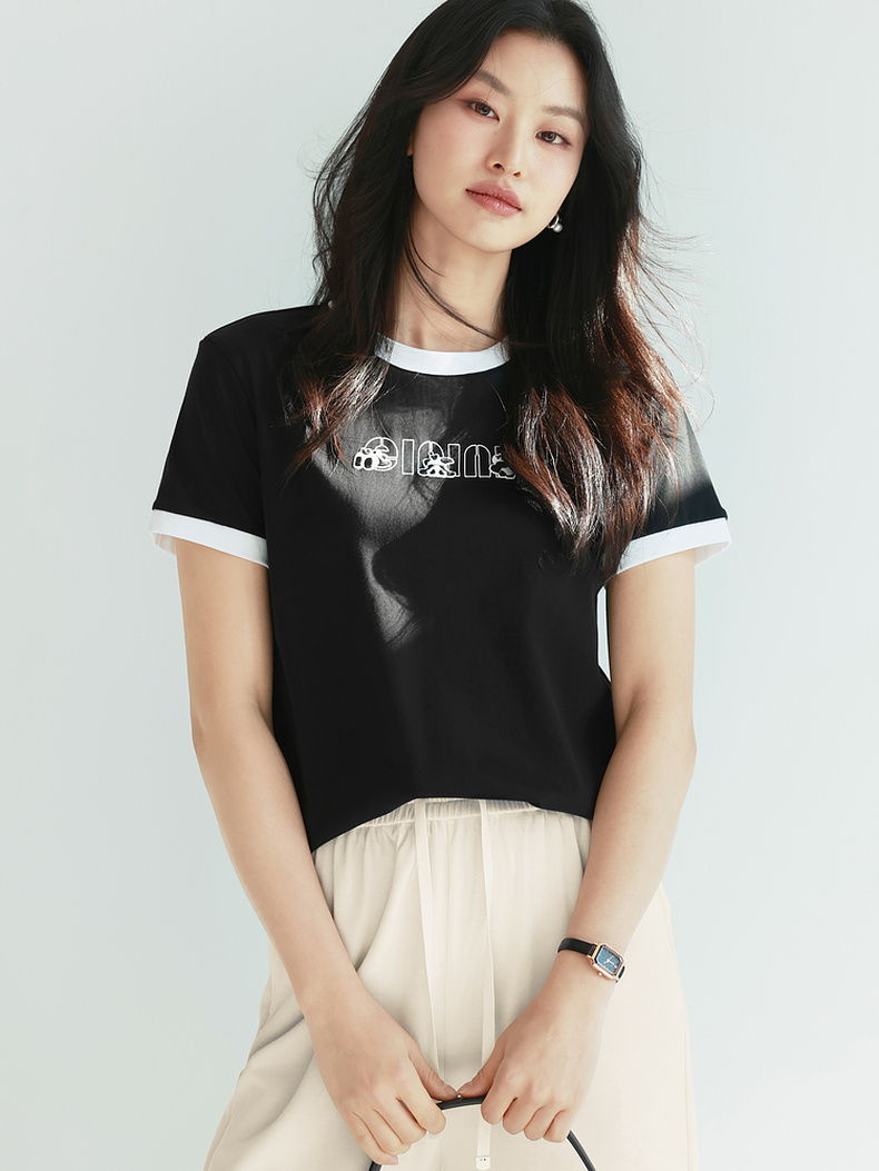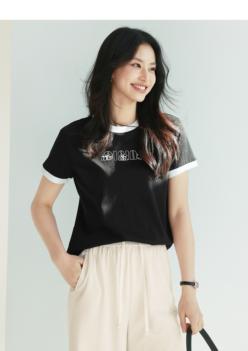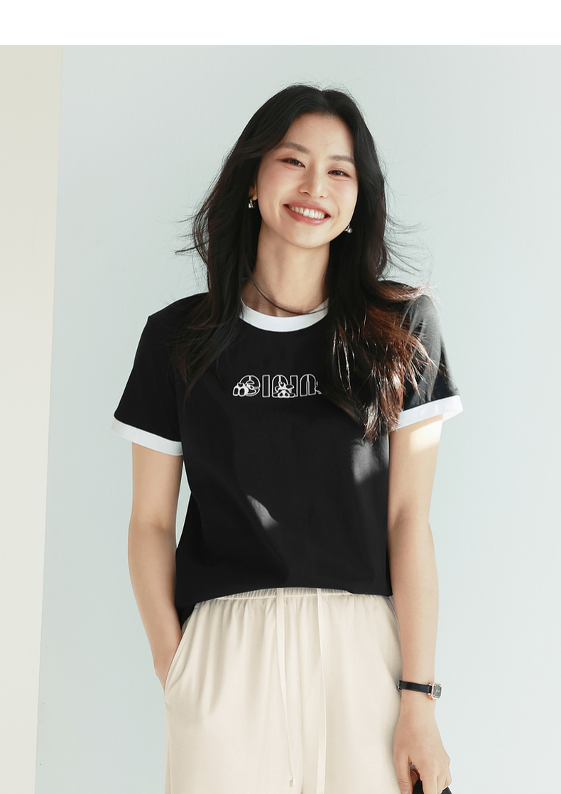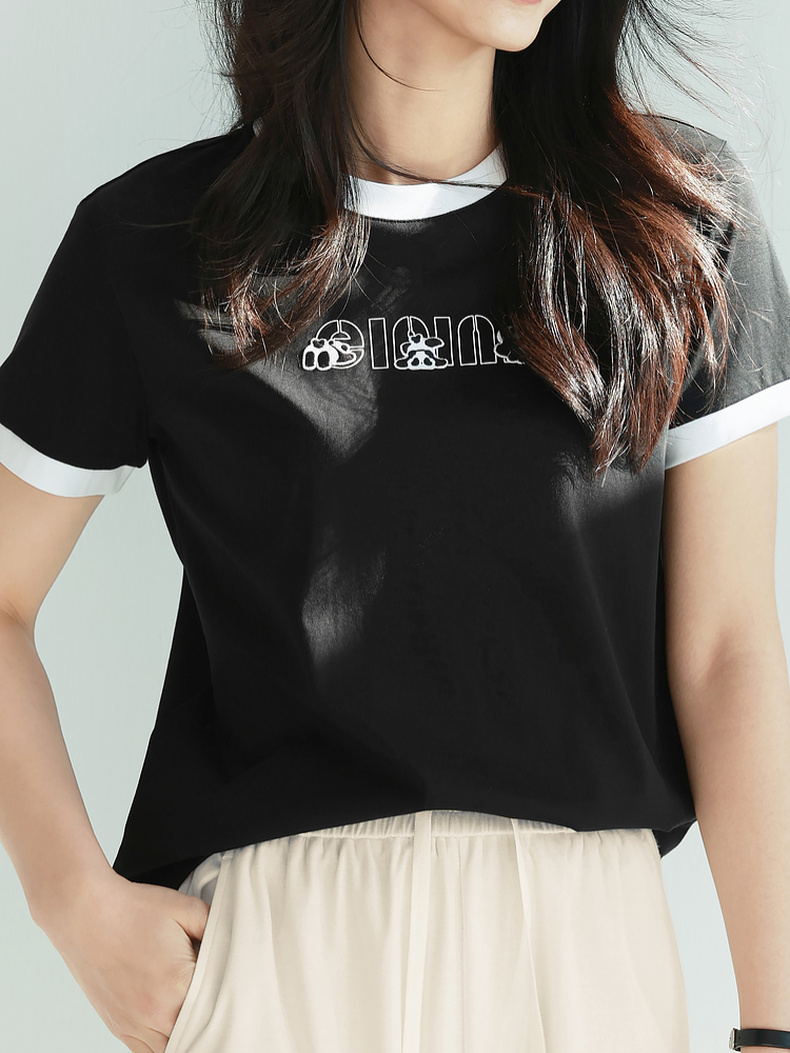 【积分换购不退货】【特惠不退货】伊芙丽简约可爱熊猫字母T恤1F7100611