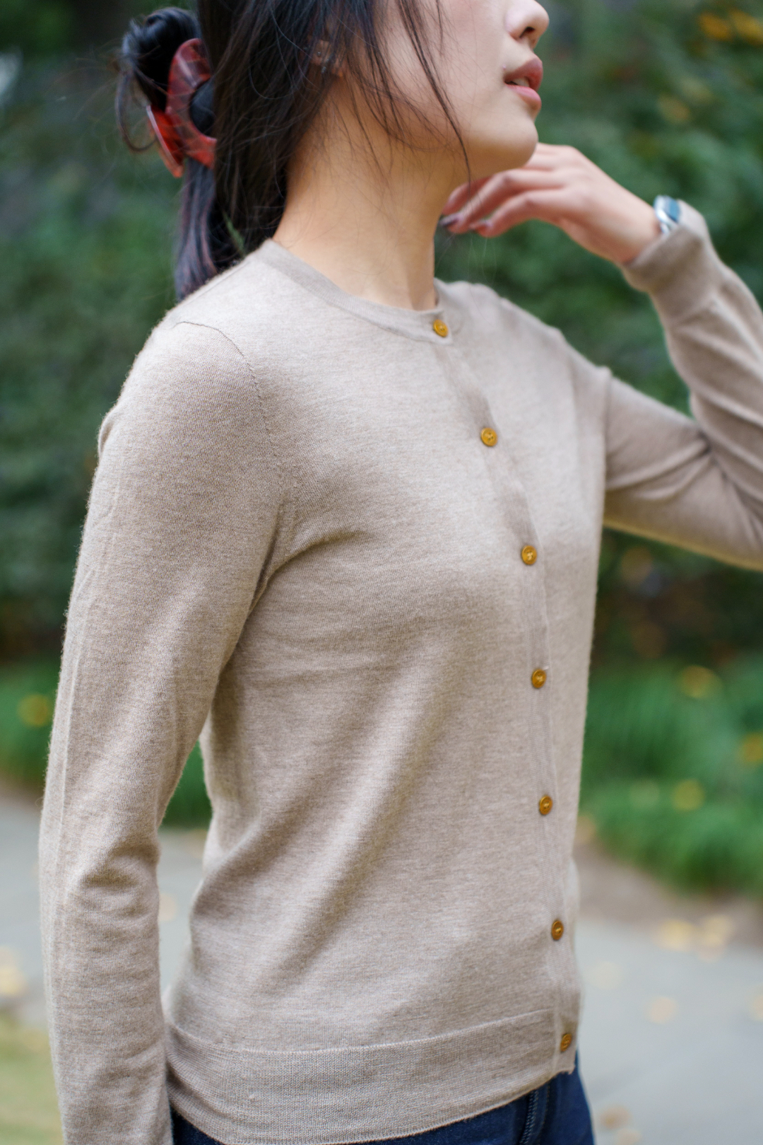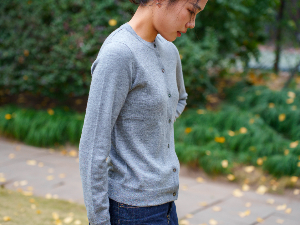 “精纺属于羊毛和羊绒加工时的特殊工艺。精纺后衣服表面会更加平整光洁,编织纹路也会细密清晰。”侯丽萍介绍,精纺羊绒可以机洗,但不建议。特别是有纽扣的,机洗过程中羊绒与羊绒摩擦,会磨损,最好还是多晒、少洗。