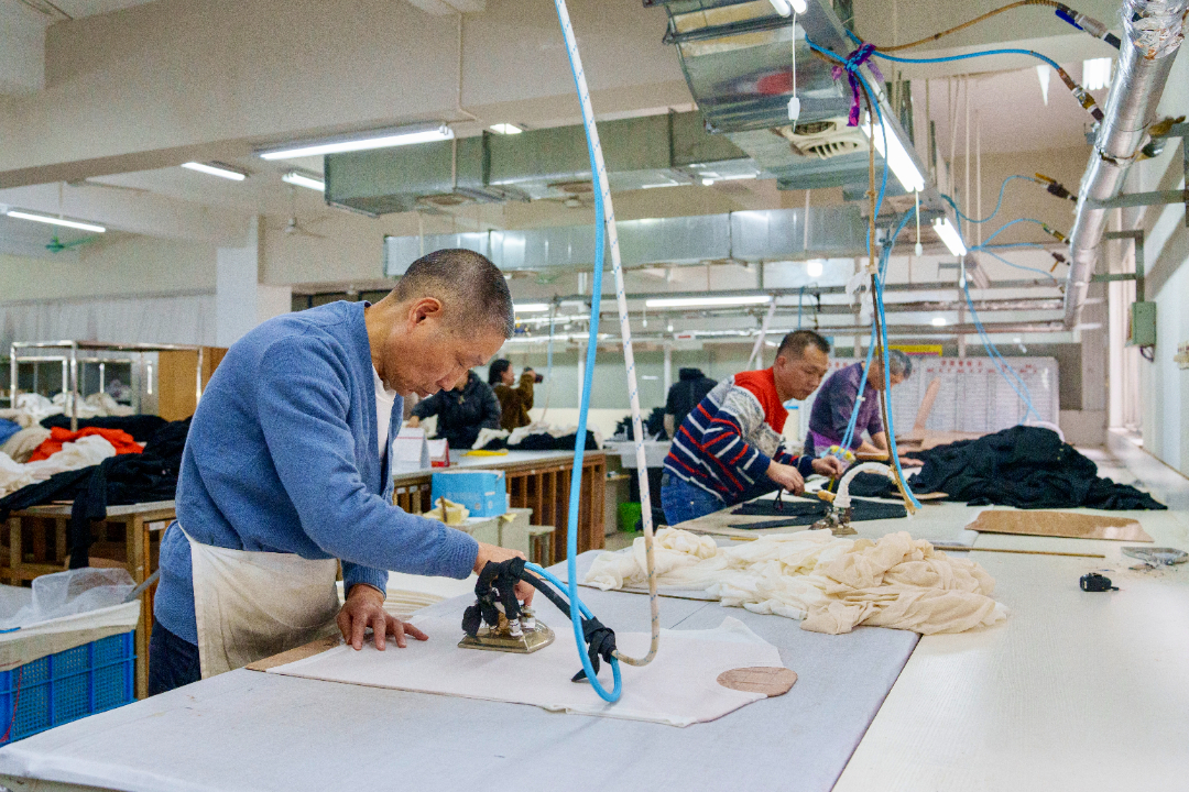 就连水洗,吴华也坚持放在自己的工厂进行。“其实桐乡有很多专门的水洗工厂,只要付了钱就能洗。但我宁愿买机器、建污水处理系统,也不想把这么重要的工序放到别的地方去做。”