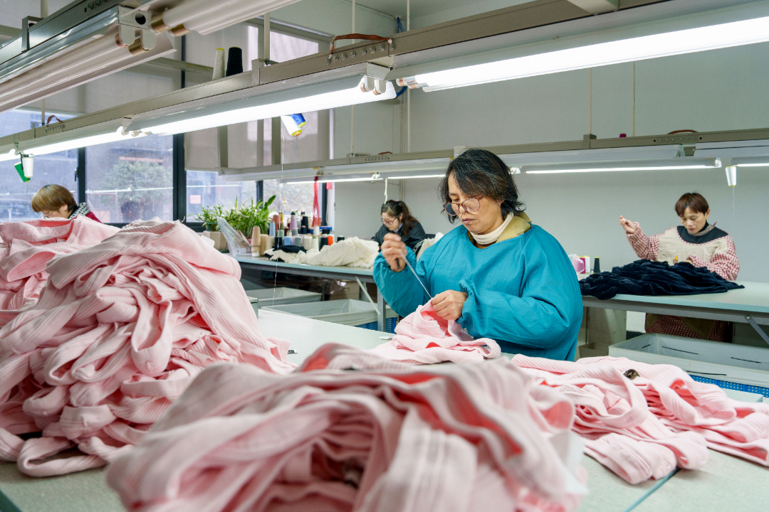 聊起外贸,吴华总结了三个词:美学、精致和舒服。“外国人讲究时髦,款式不断更新,对于舒适度要求一般。成品要精致,不能有漏针、线头等瑕疵。只要第一次合作顺利了,接下来很长一段时间都有订单做,对接比较舒服。”