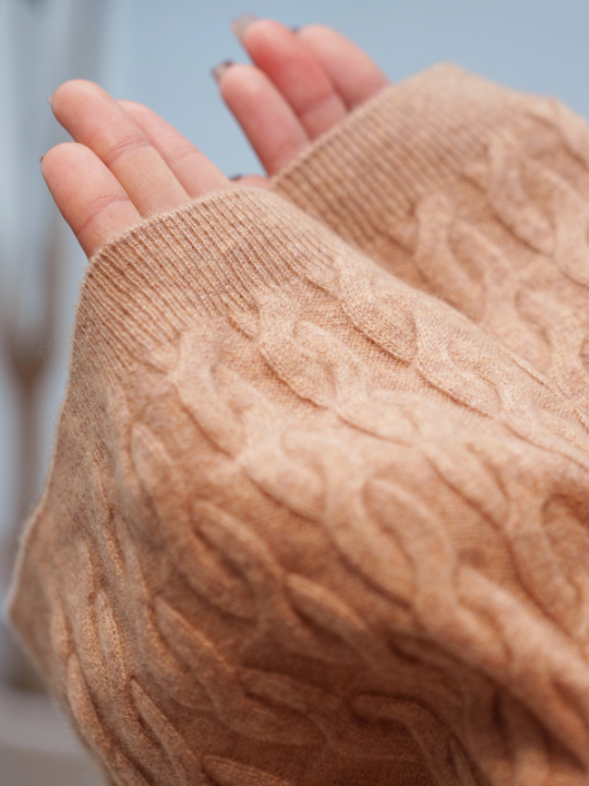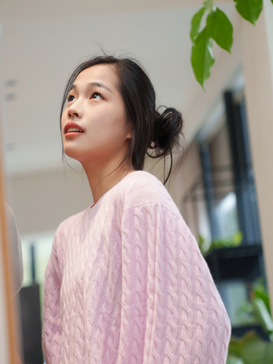 说着,侯丽萍又挑出了一件蝙蝠袖款羊绒衫,她说:“这件衣服采用的是纯山羊绒,克重达到400g以上,光纱线成本就要400元以上了。表面是绞花纹路,设计感很强,虽然是宽松的,但是也非常保暖。”这款蝙蝠袖羊绒衫有三个颜色,驼色、玫红和浅粉,颜色鲜亮,很适合开春穿。