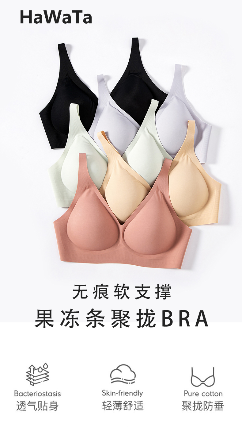哈瓦塔无痕软支撑果冻条胸罩聚拢背心文胸