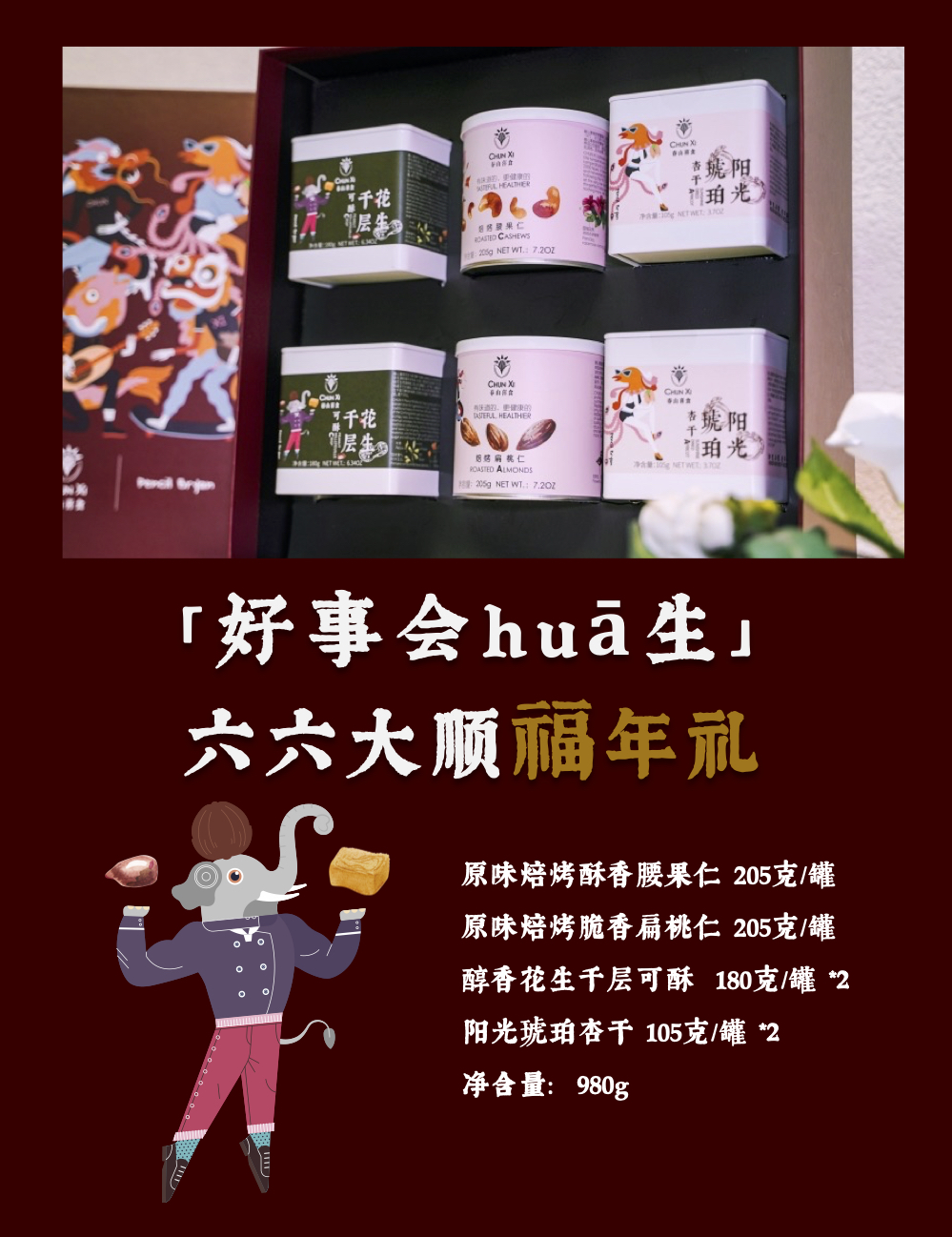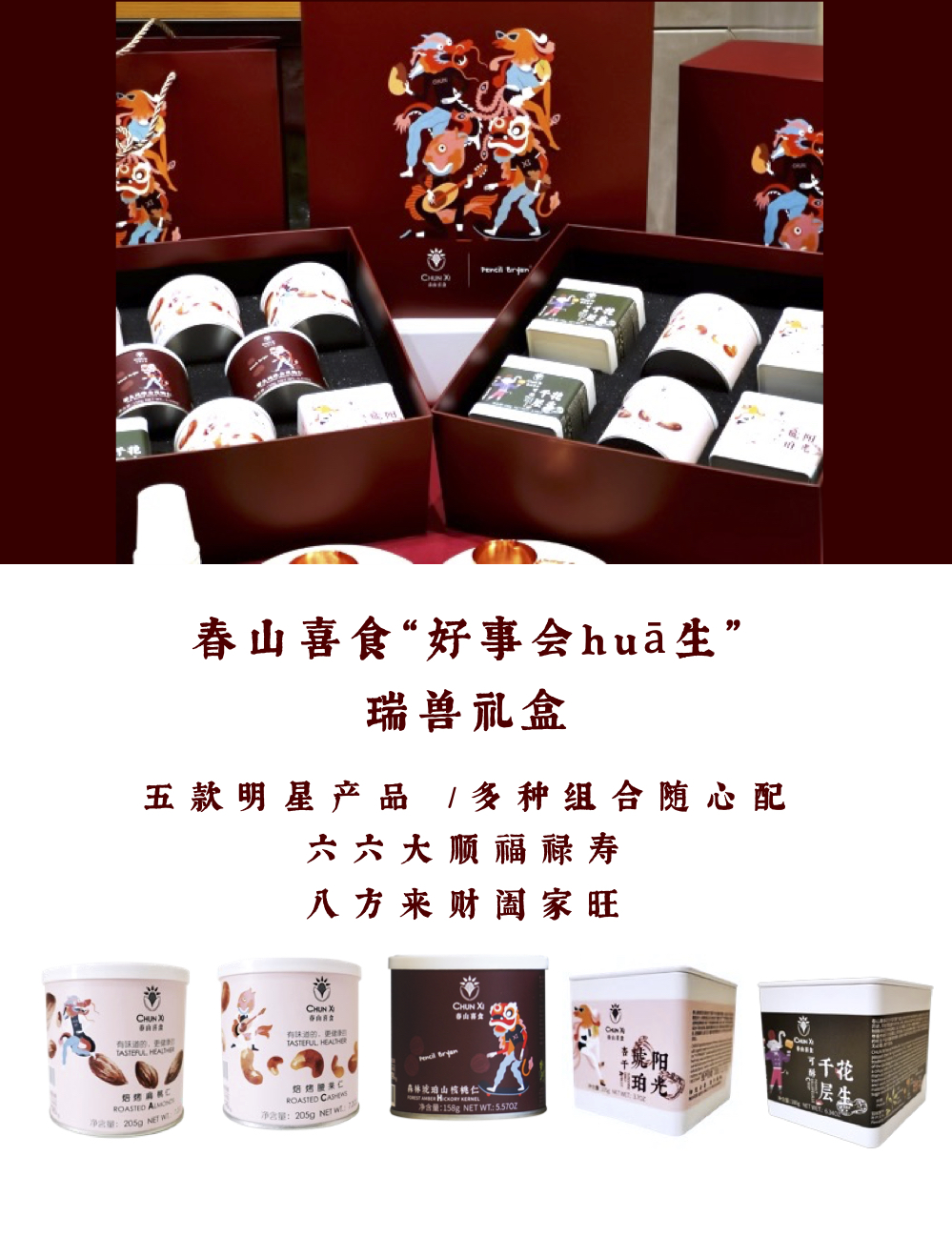 “好事会huā生”瑞兽礼盒 坚果 / 腰果 / 扁桃仁 / 杏干 / 花生酥五款明星果干 多种组合随心配