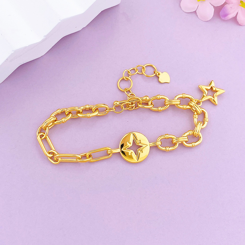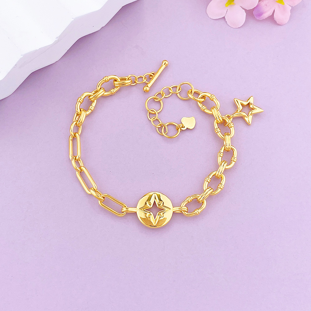 【限时克减150元】足金 【精品】无氰5D硬金调节星芒手链镂空环环相扣手链星星手链(AU5DSL00010)(预售产品下单后不退款不退货不换货不补差价)