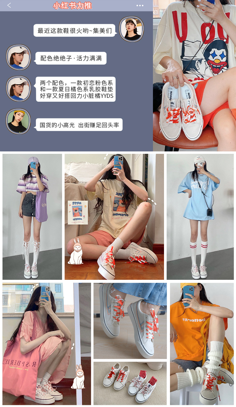 回力小脏橘帆布鞋春夏款复古小白鞋板鞋低帮休闲百搭单鞋女B599Q