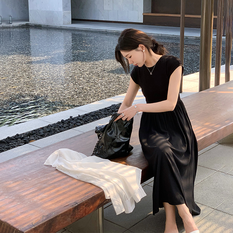 金蘑菇菇 /裸感零负担 轻奢风纯棉醋酸赫本显瘦连衣裙