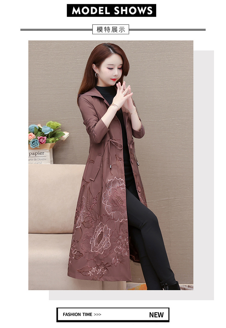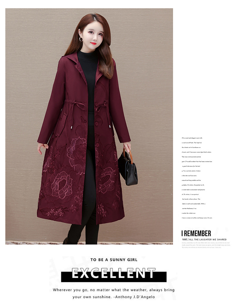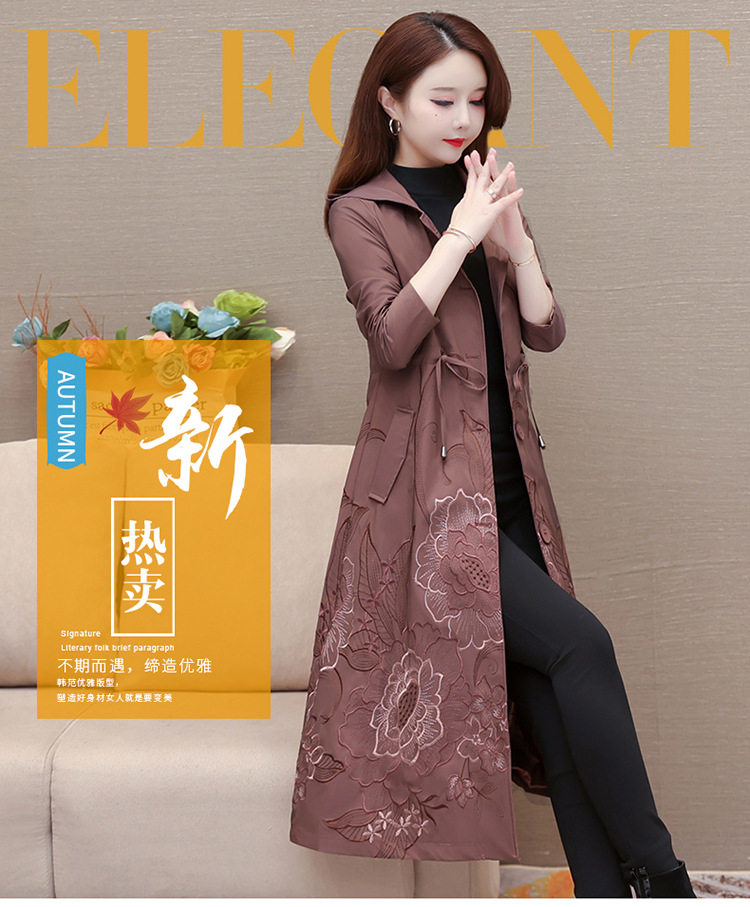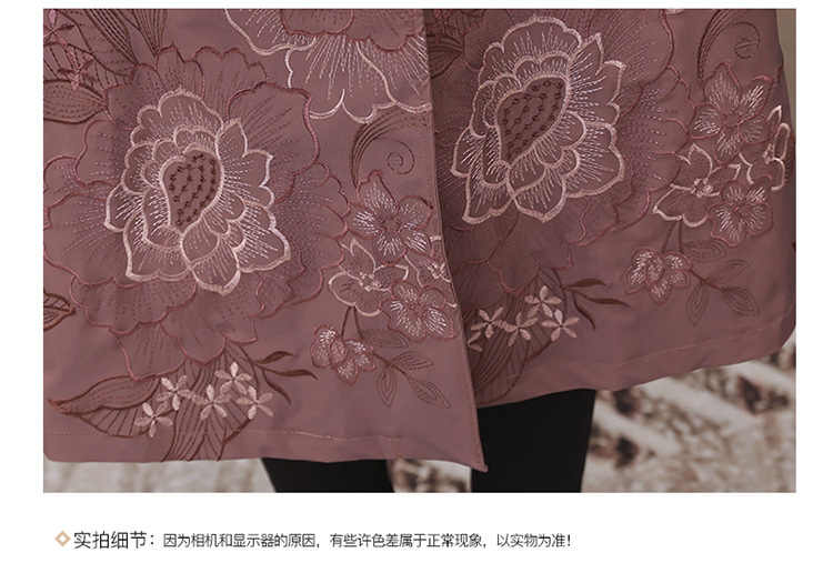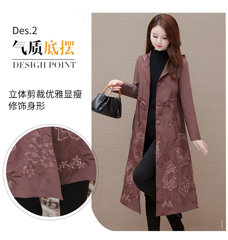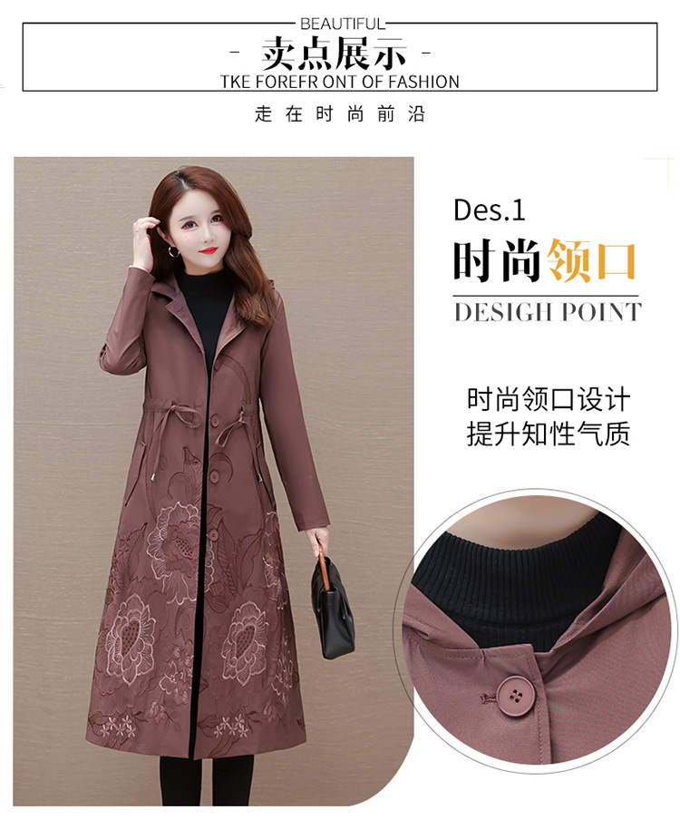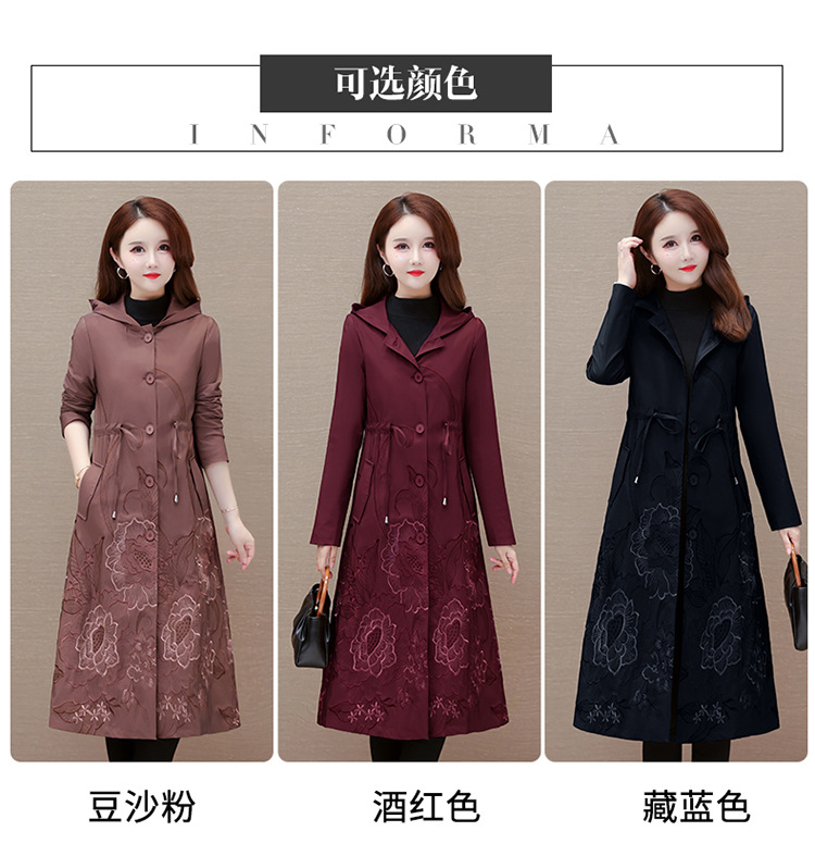 秋季新款,长袖风衣中年女装妈妈装时尚中长款大码刺锈休闲外套QYM-XY-23HDB19-Y