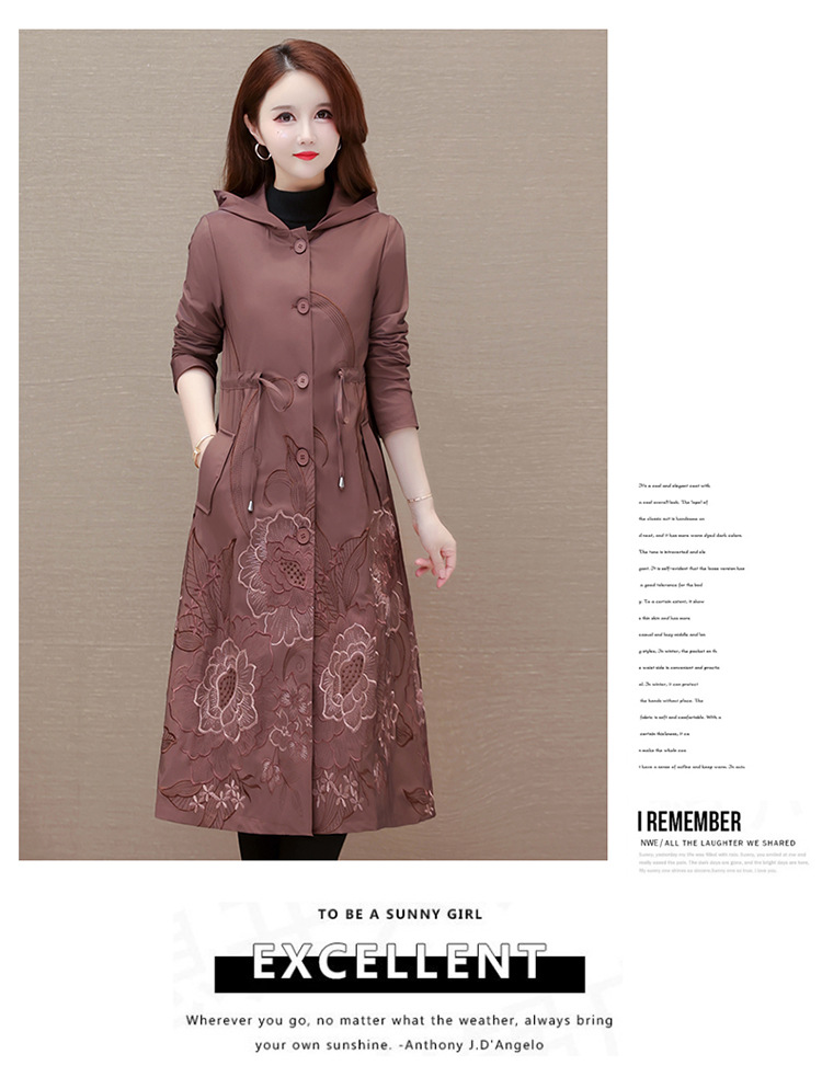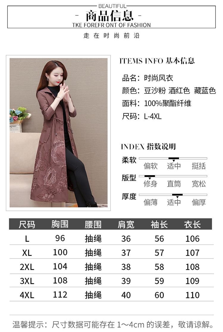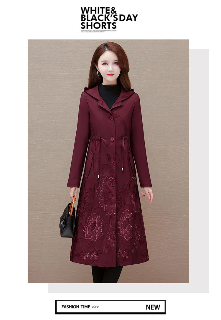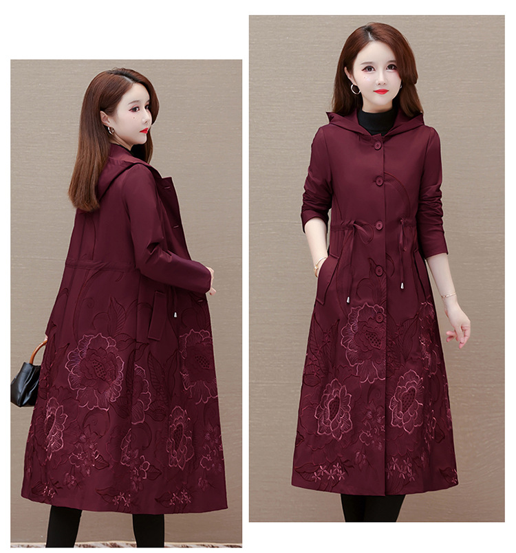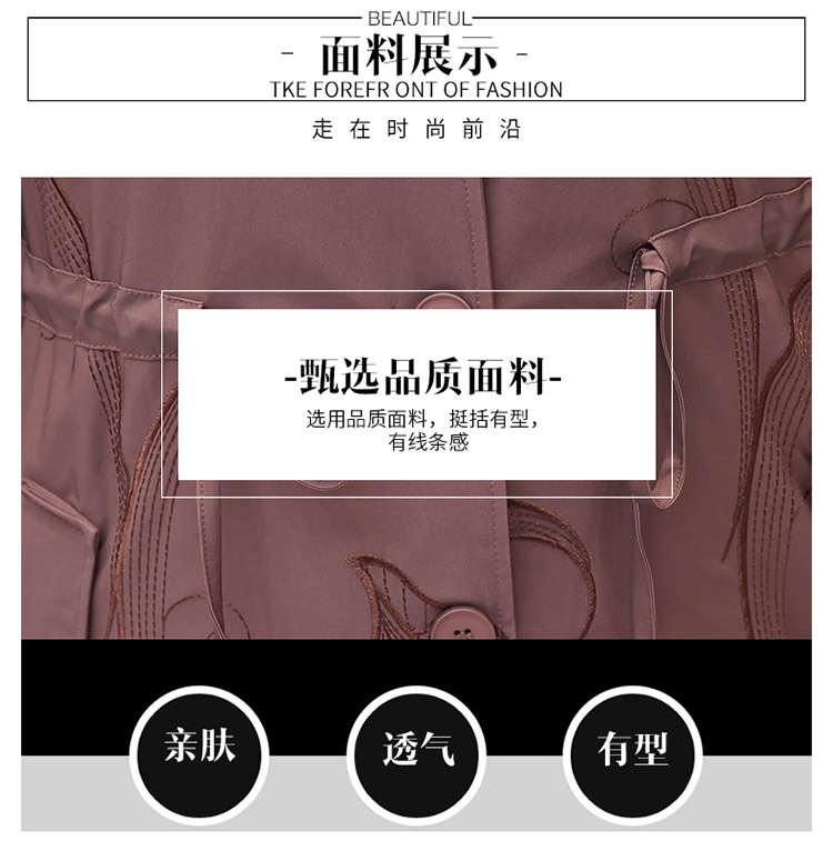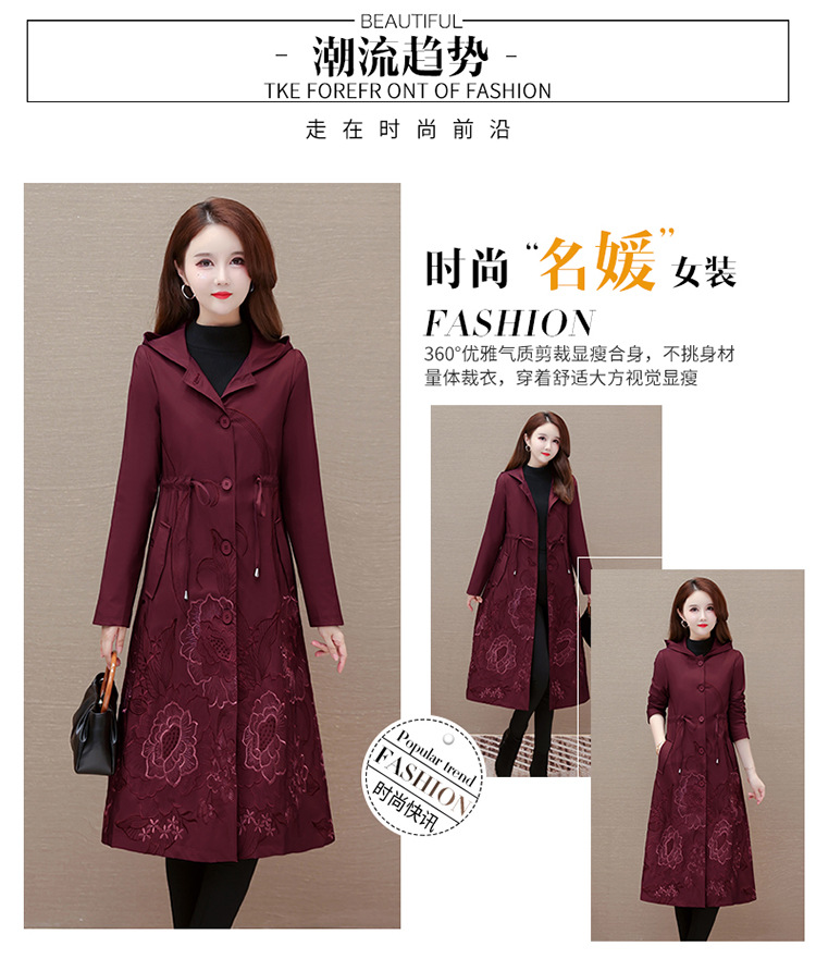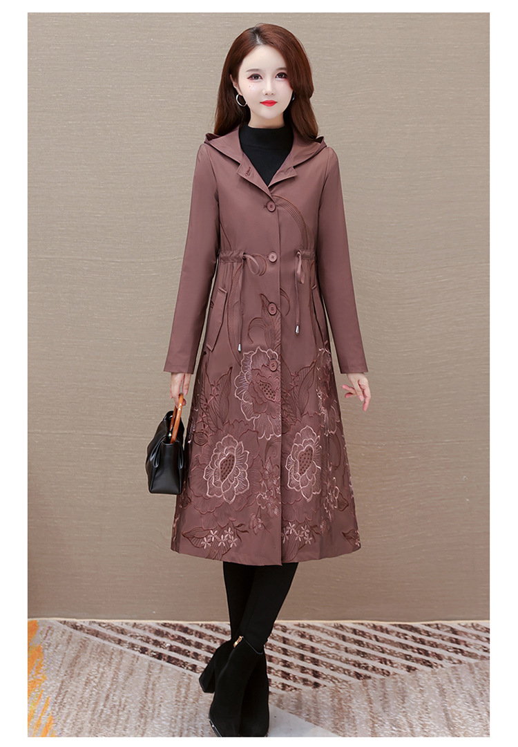 秋季新款,长袖风衣中年女装妈妈装时尚中长款大码刺锈休闲外套QYM-XY-23HDB19-Y
