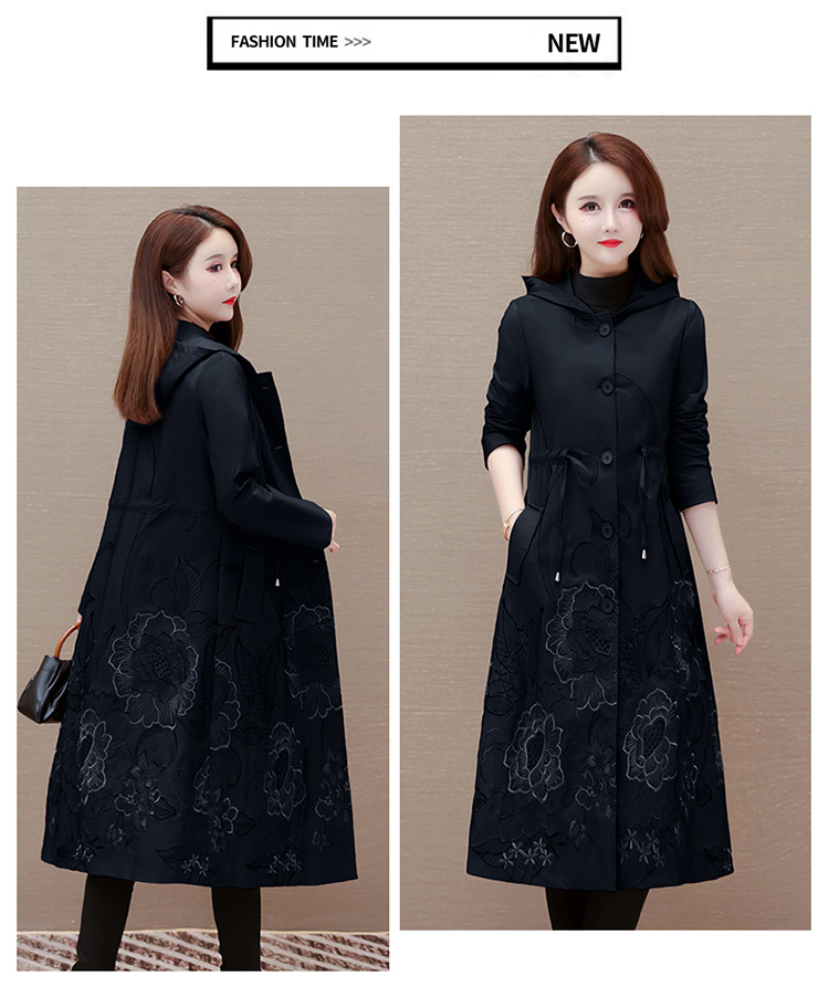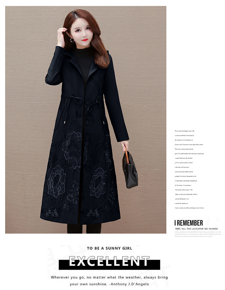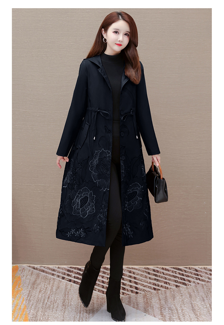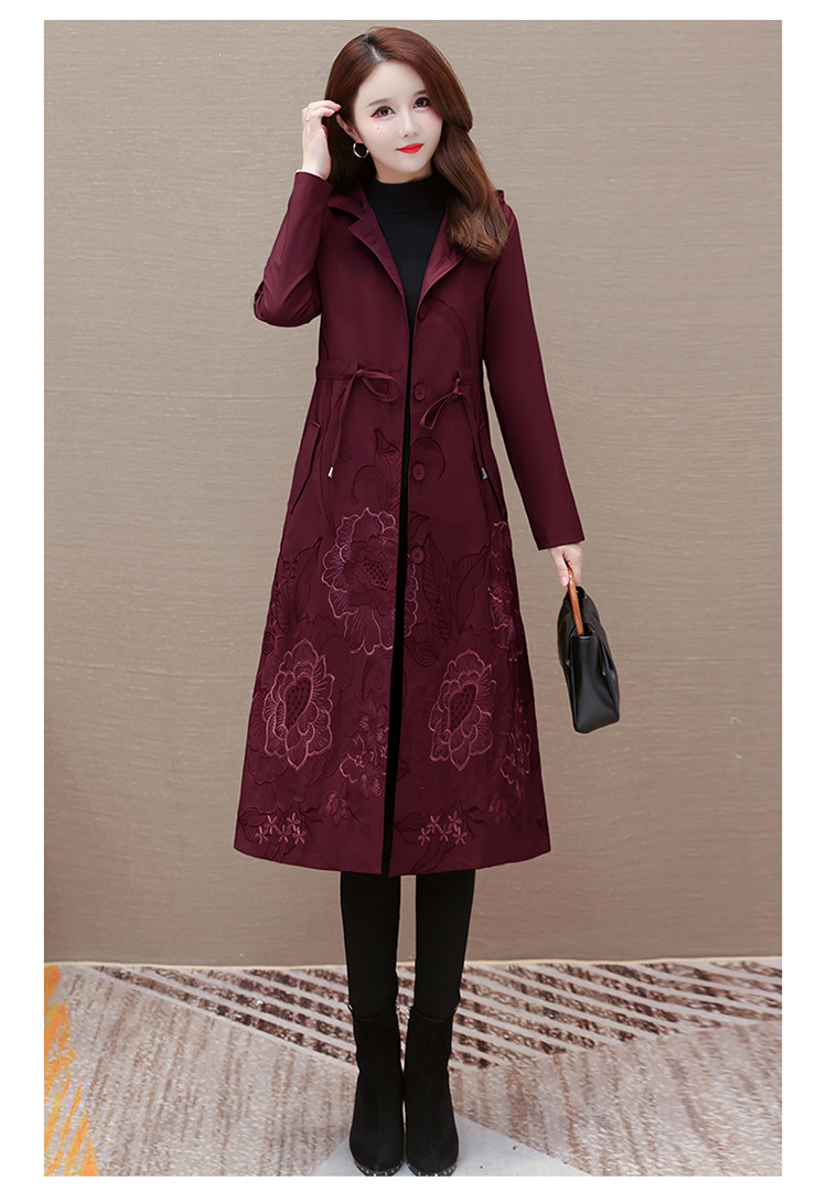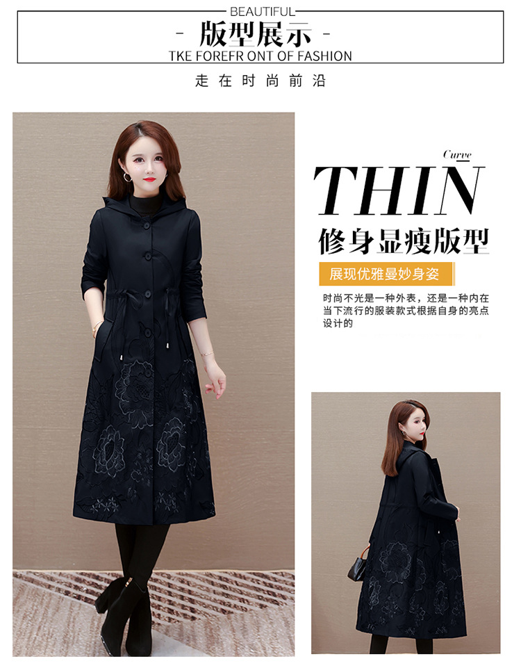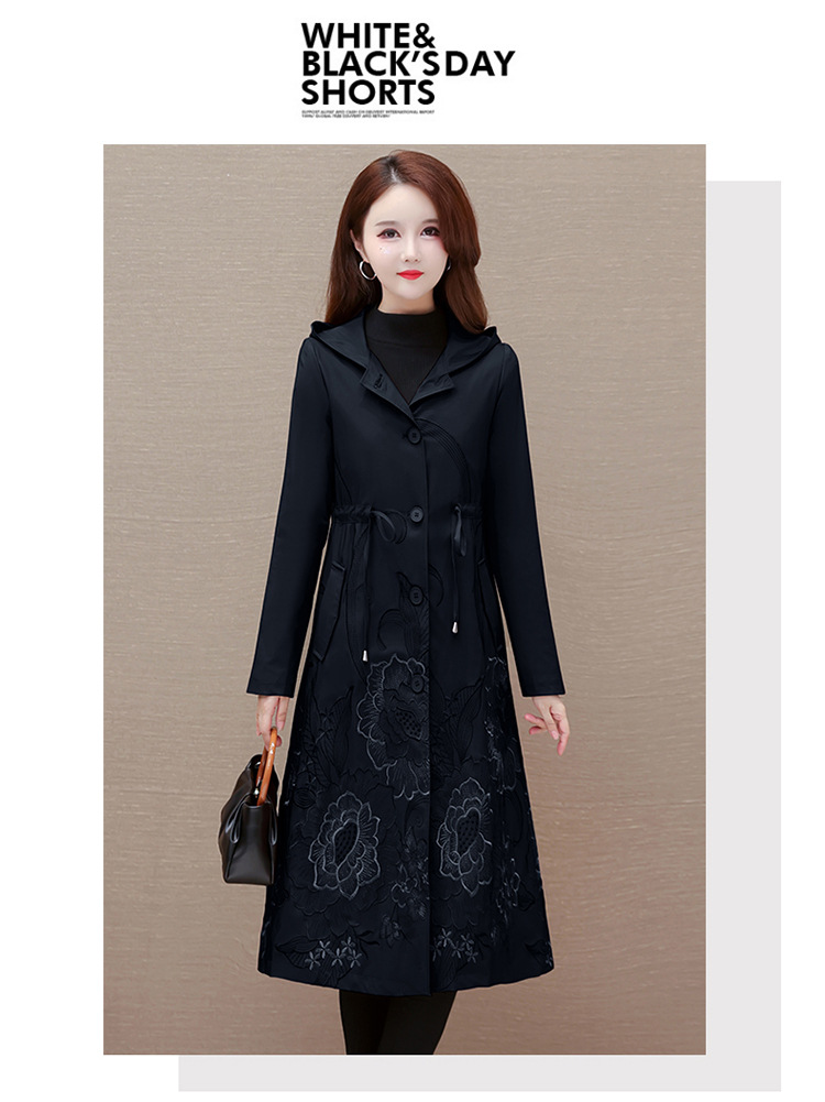 秋季新款,长袖风衣中年女装妈妈装时尚中长款大码刺锈休闲外套QYM-XY-23HDB19-Y