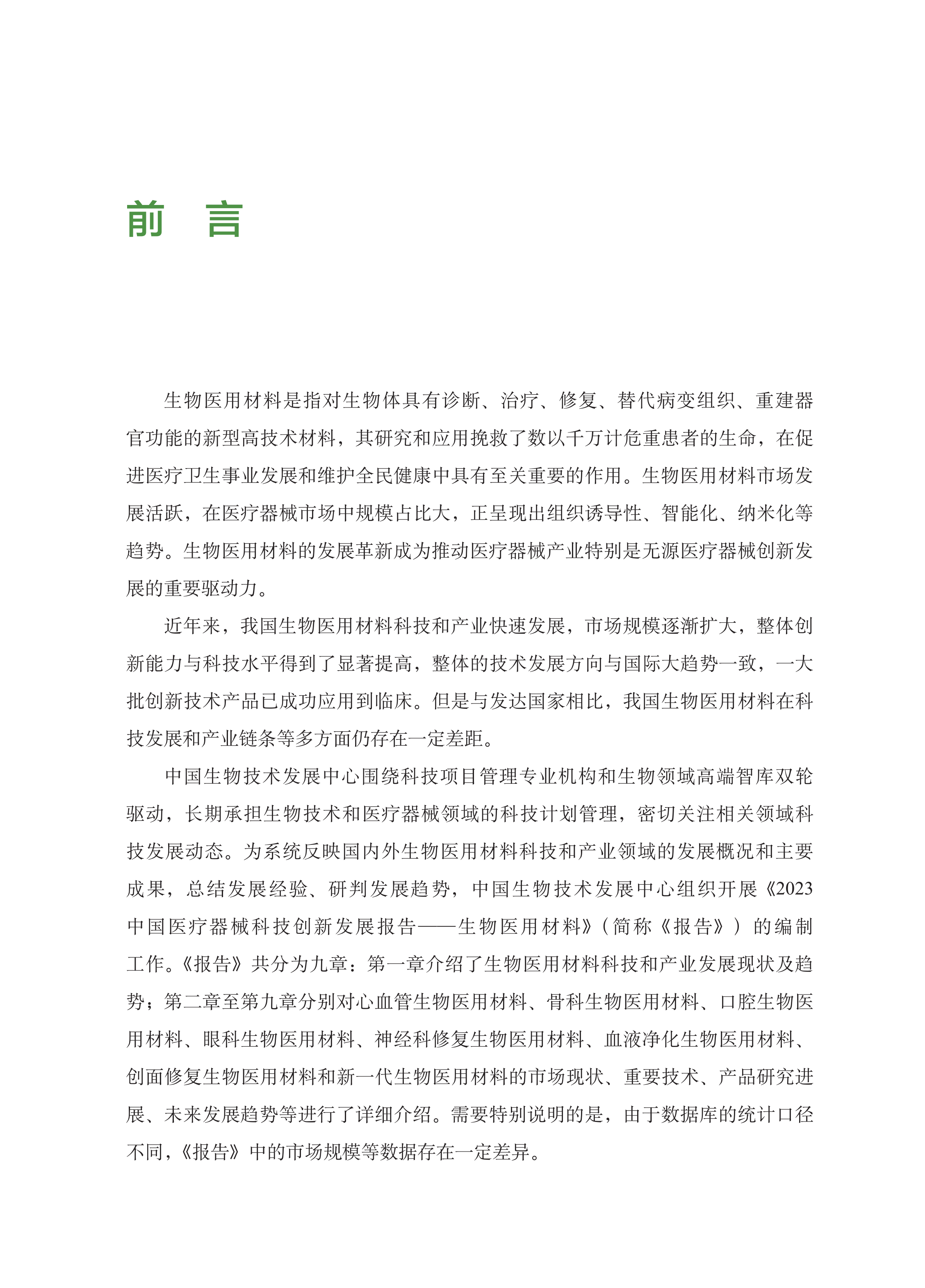 正版现货 2023中国医LIAO器械科技创新发展报告——生物医用材料 中国生物技术发展中心编著