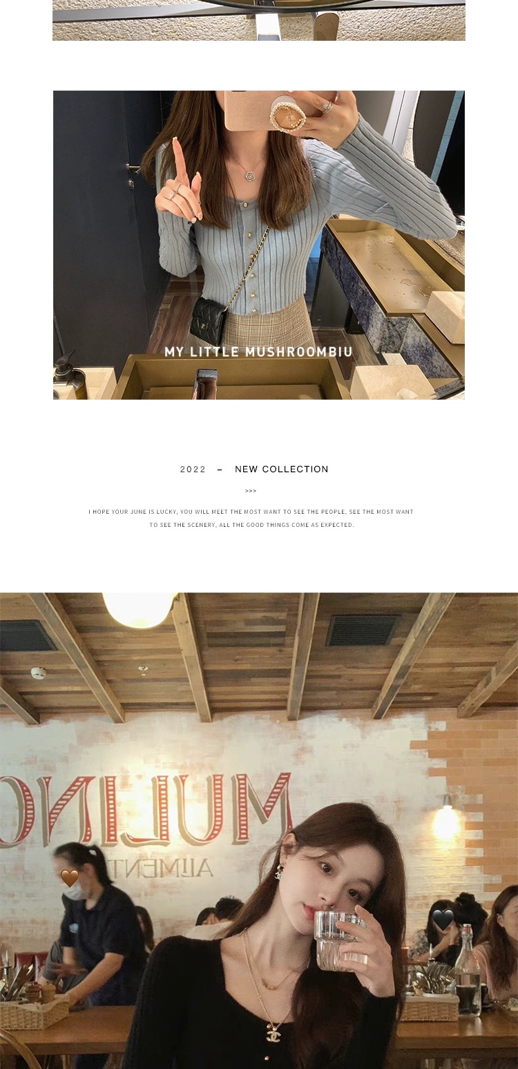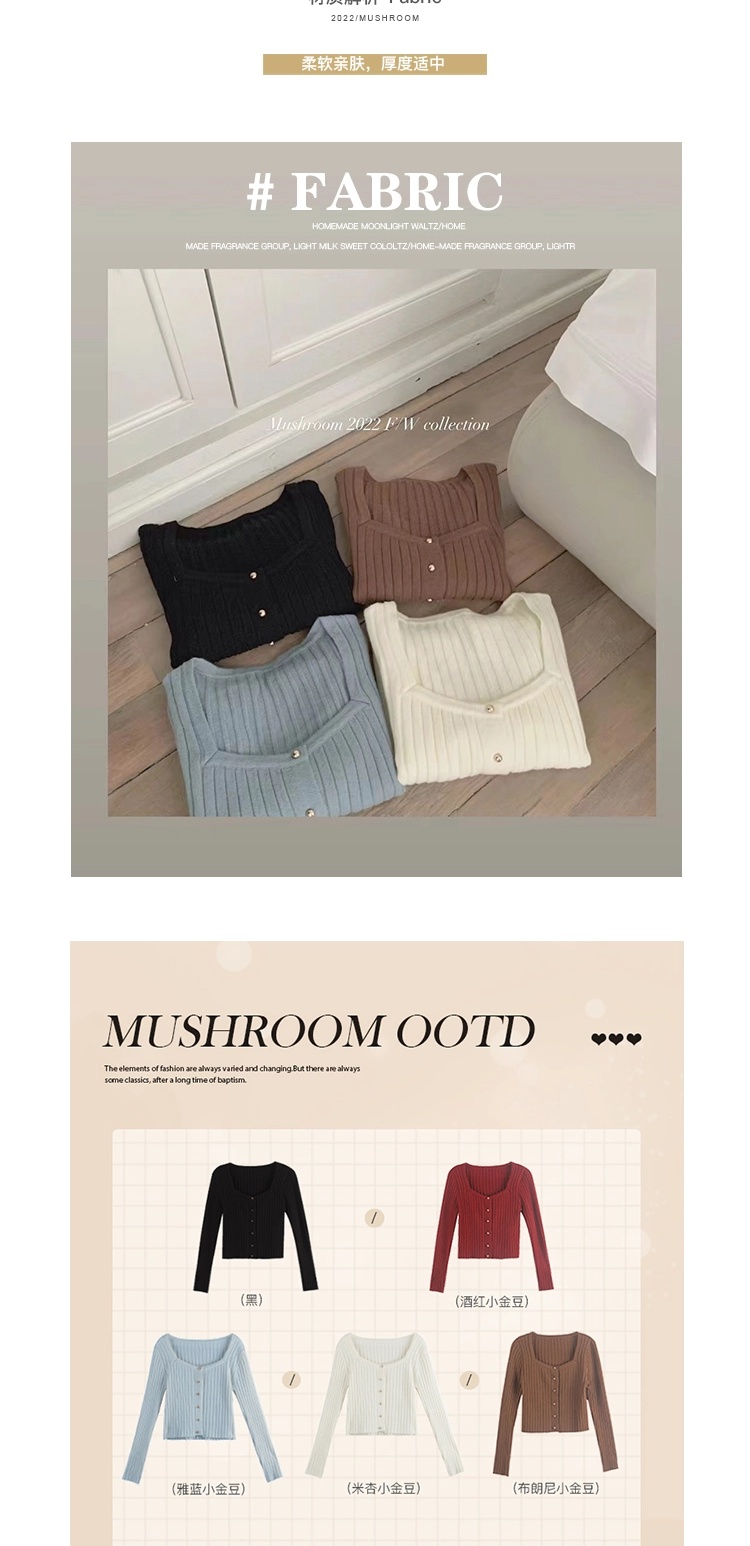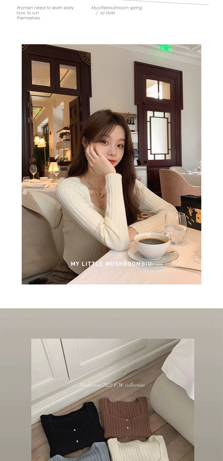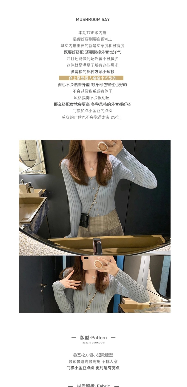 金蘑菇菇 小金豆 锁骨内搭组 / 质感细腻锁骨针织 修身方领毛衣
