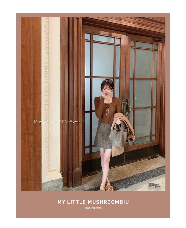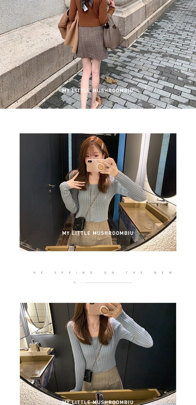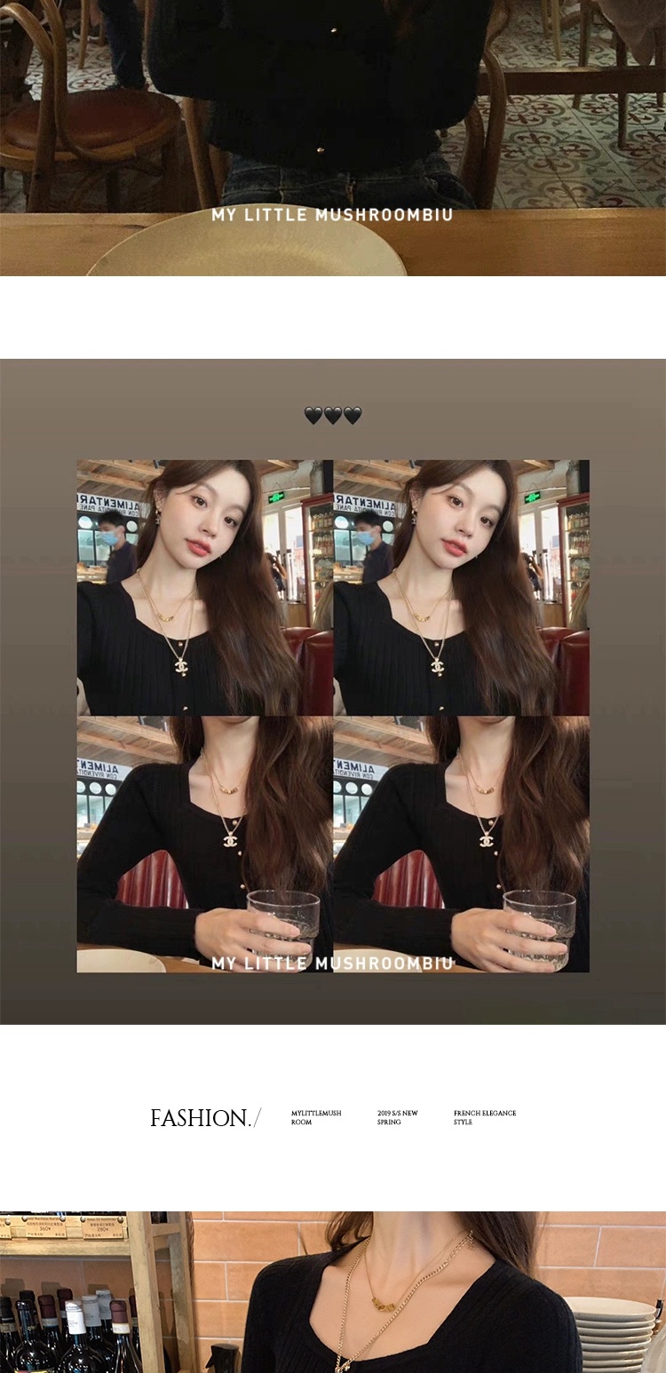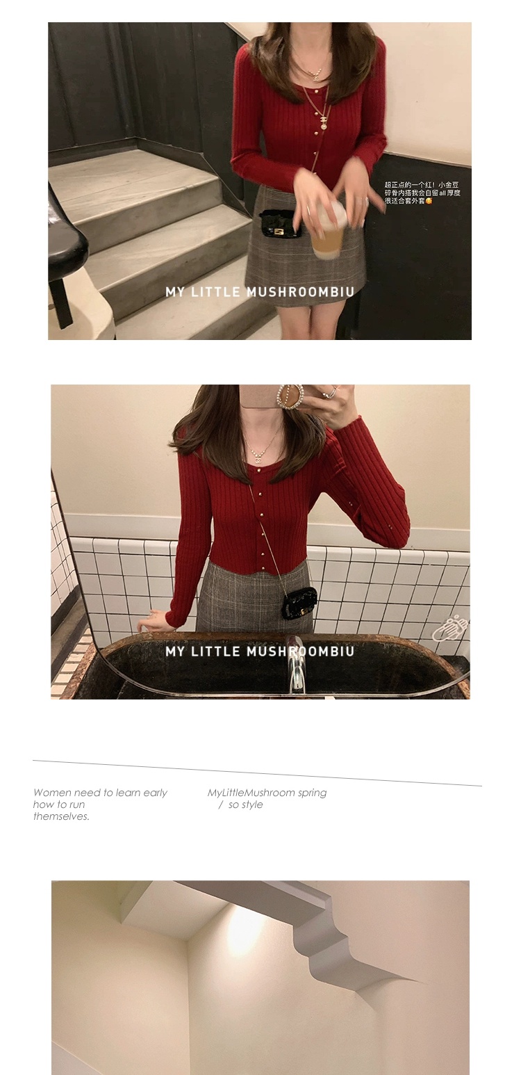 金蘑菇菇 小金豆 锁骨内搭组 / 质感细腻锁骨针织 修身方领毛衣
